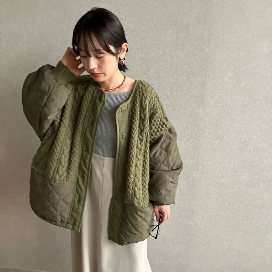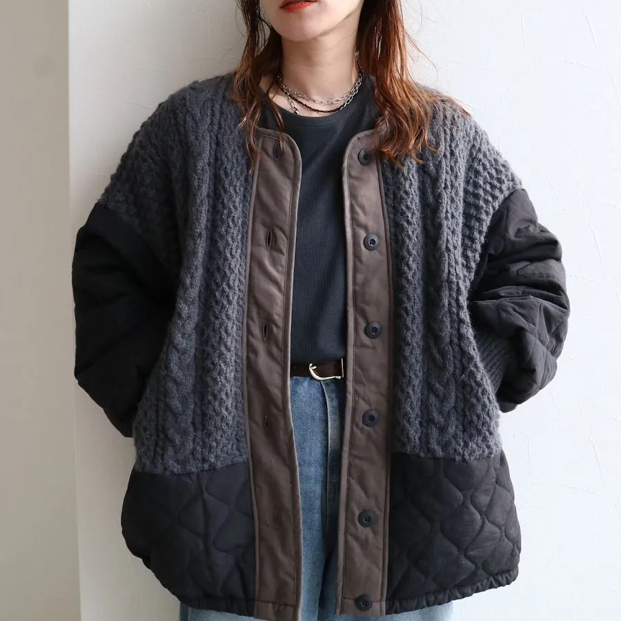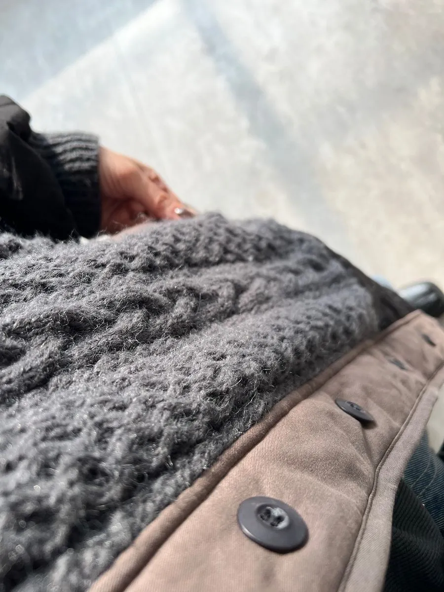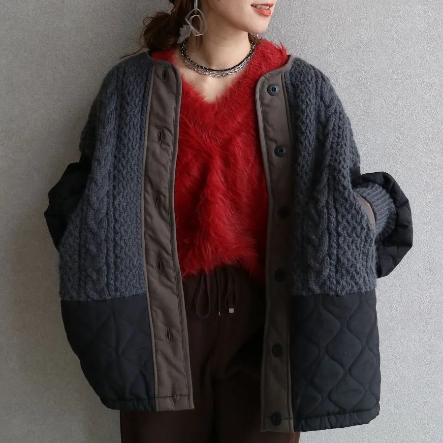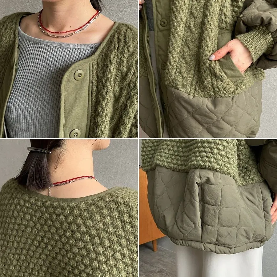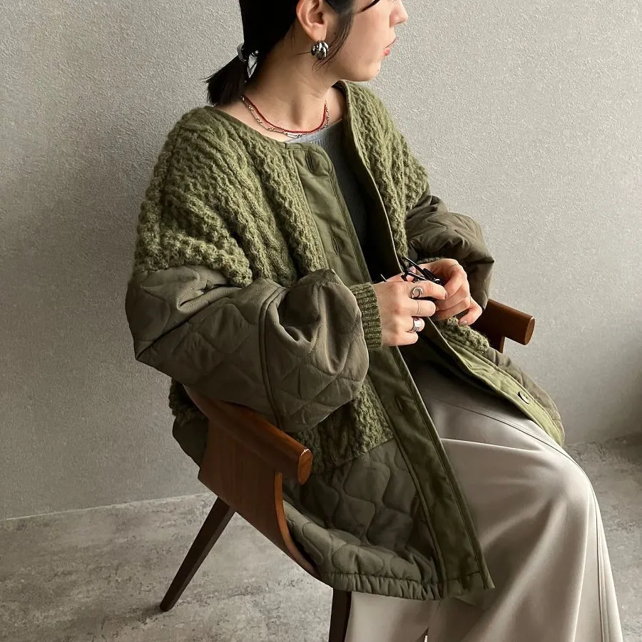 厚實手勾麻花針織拼接立體立體絎縫大衣