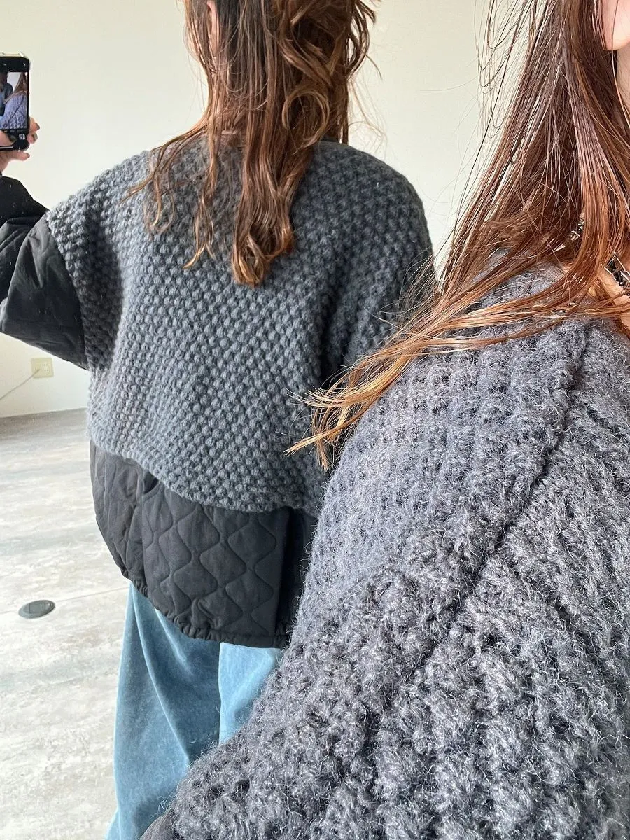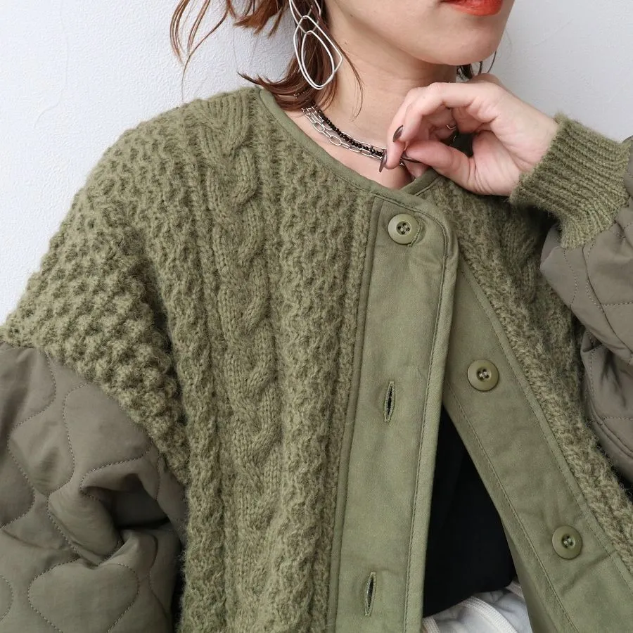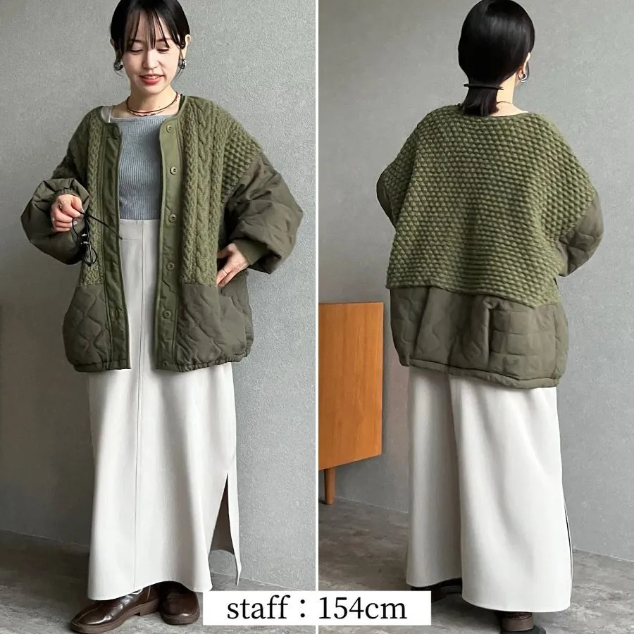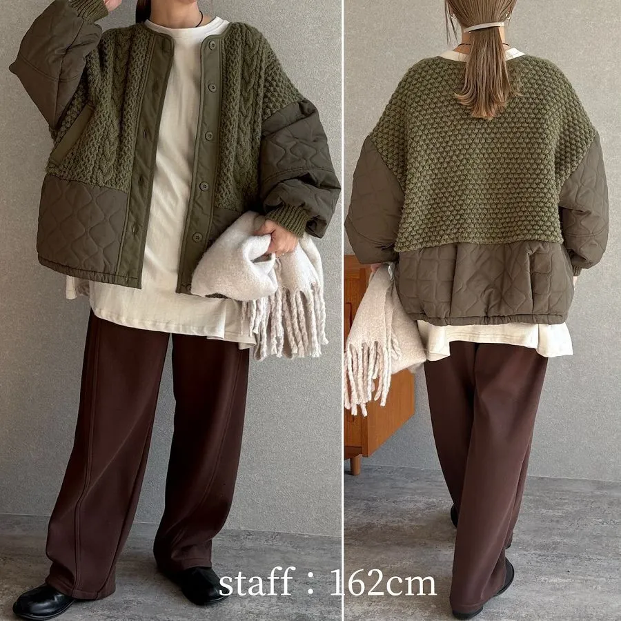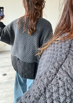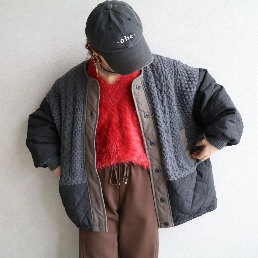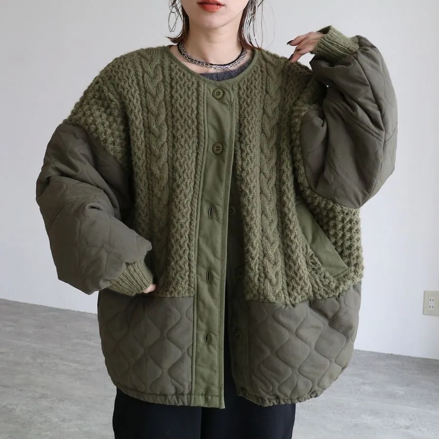 厚實手勾麻花針織拼接立體立體絎縫大衣