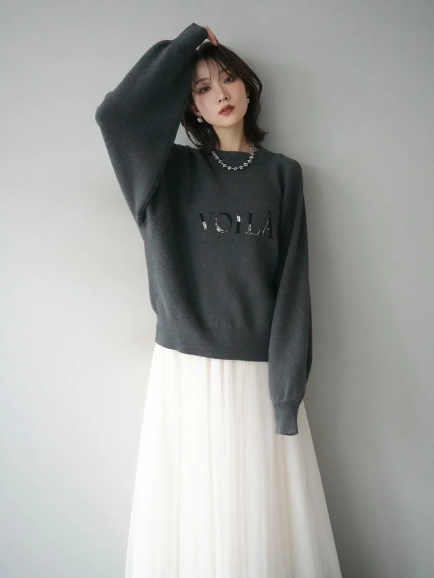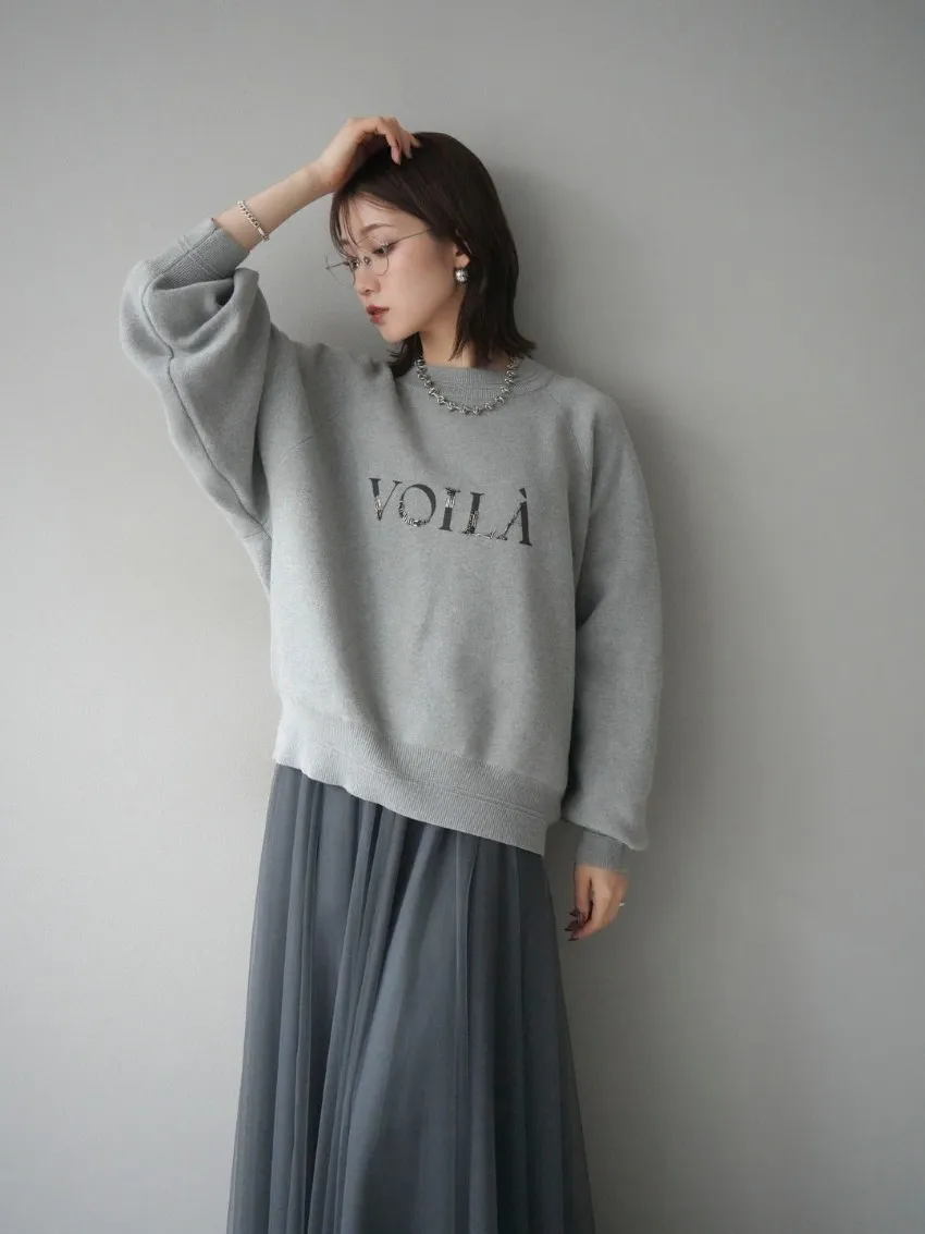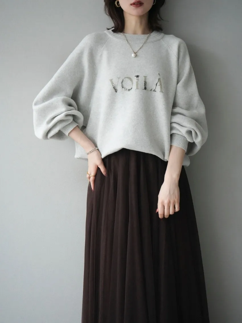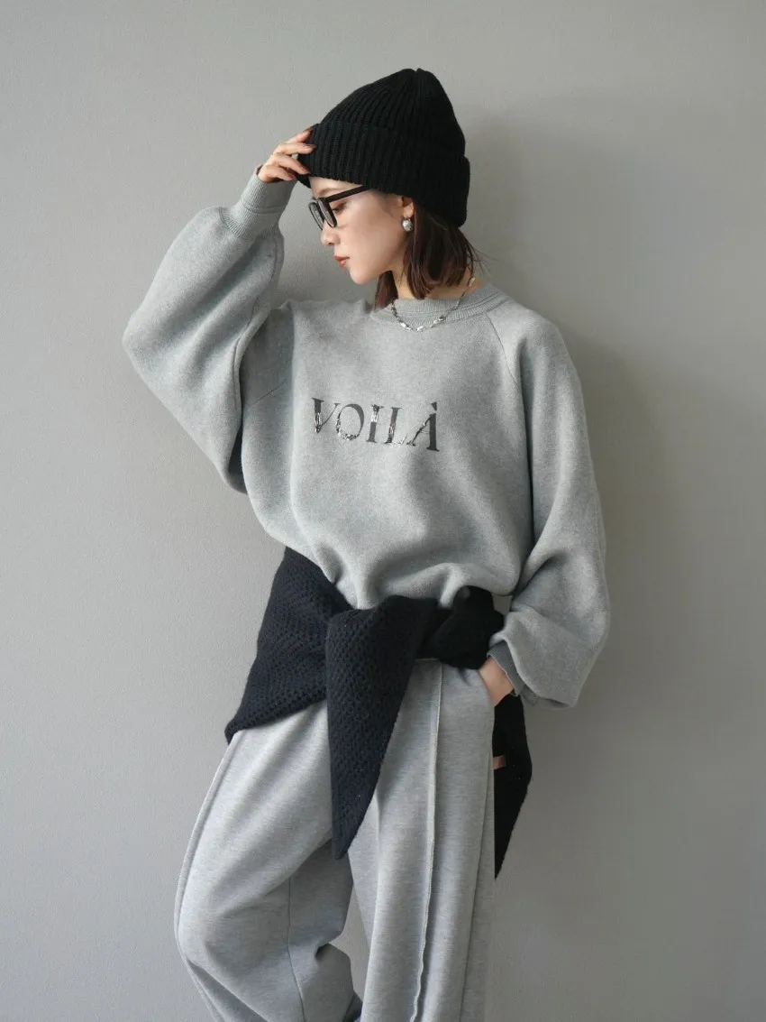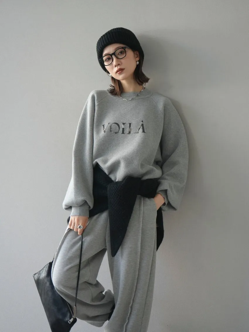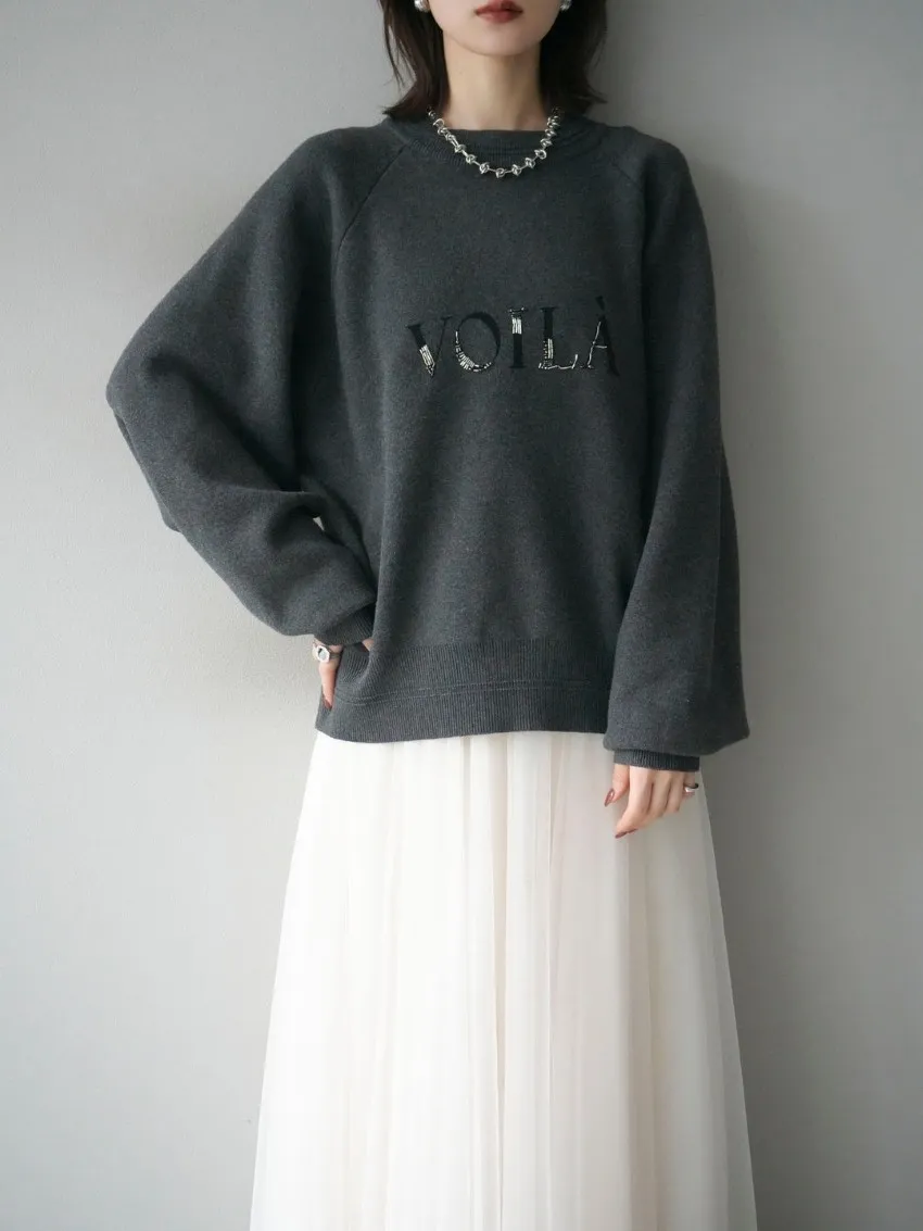 休閒感 胸前法語Voila小亮片設計感刺繡