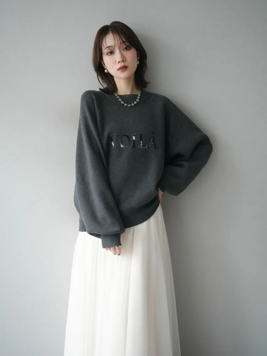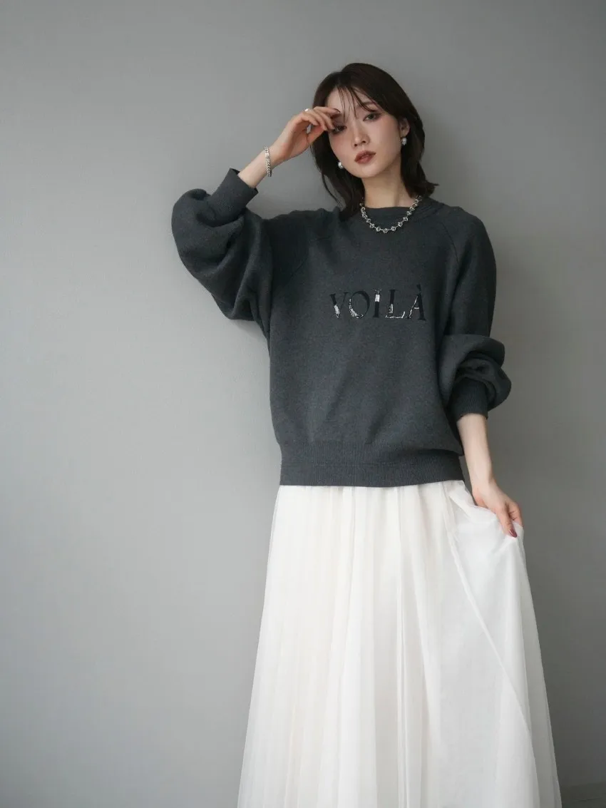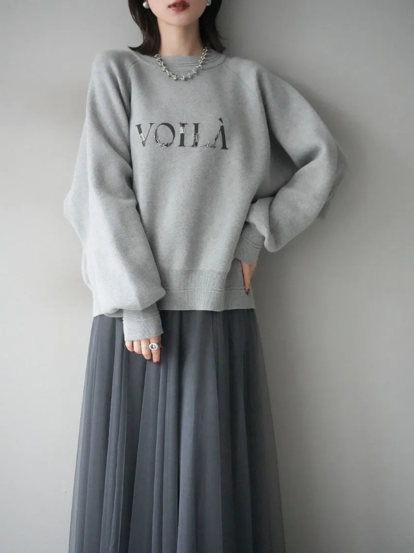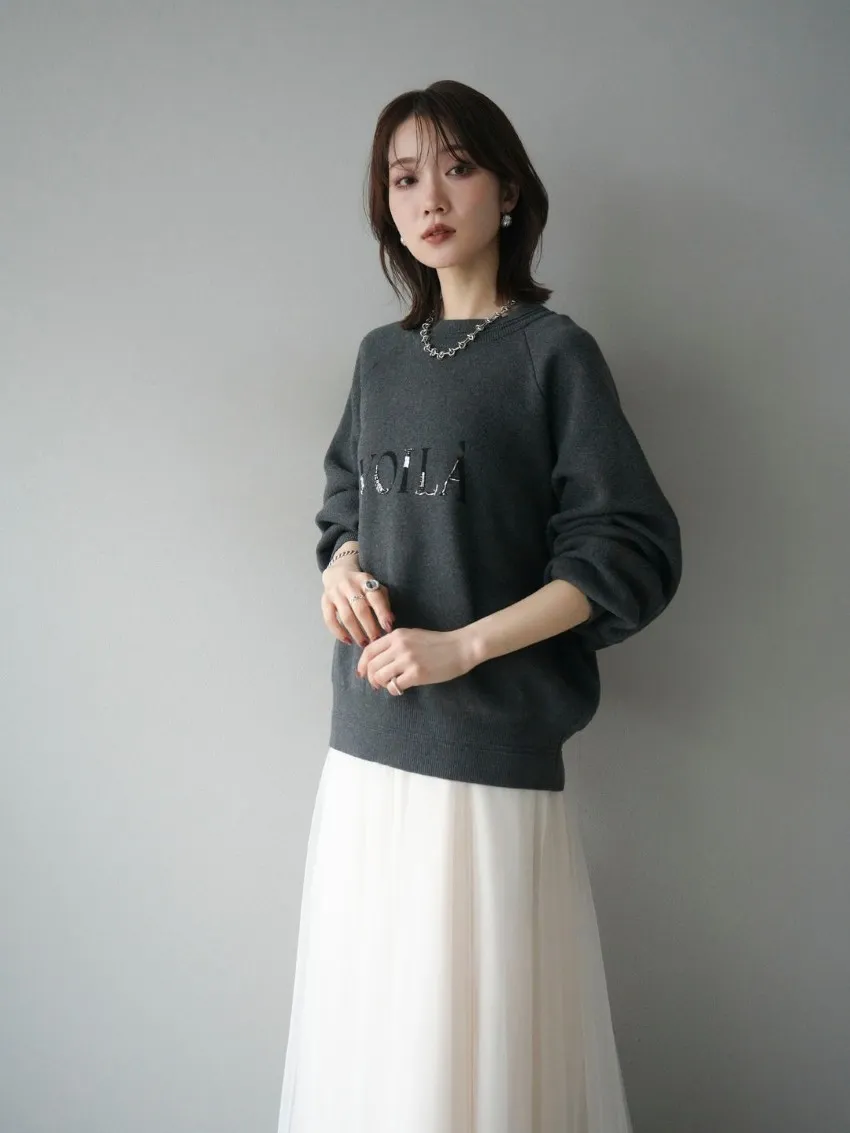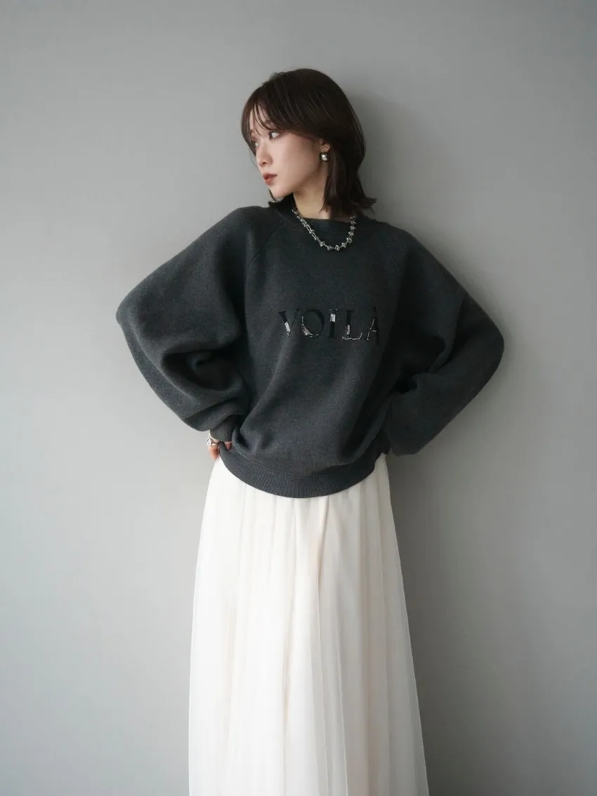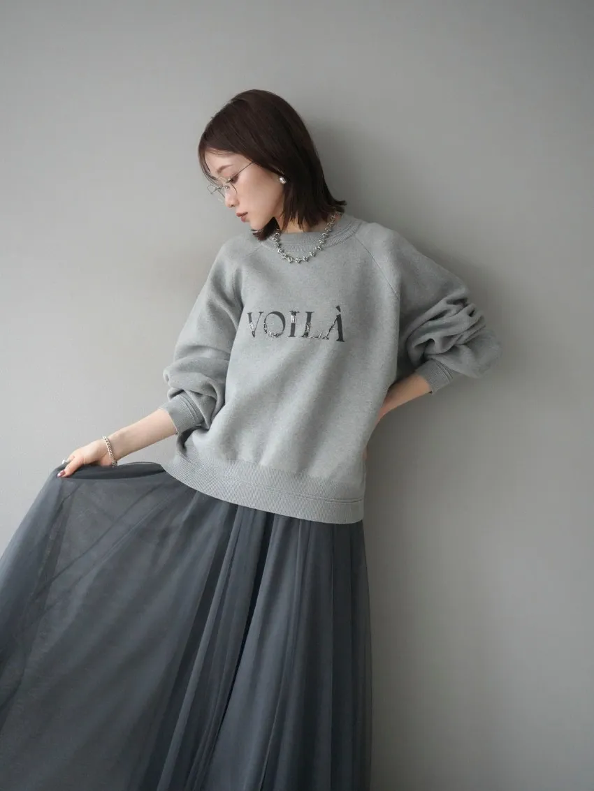休閒感 胸前法語Voila小亮片設計感刺繡
