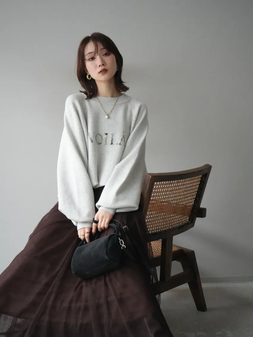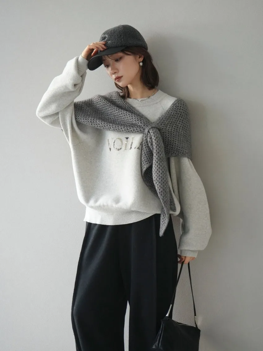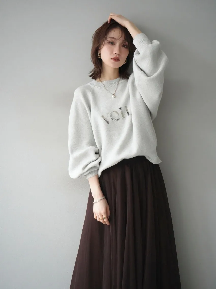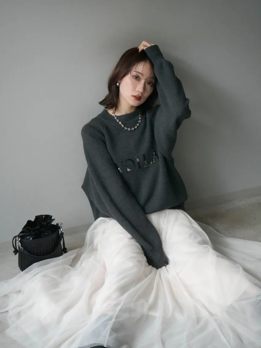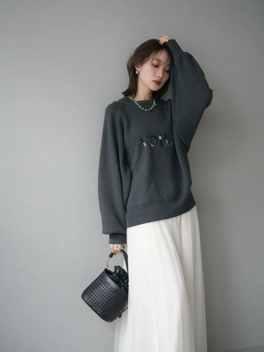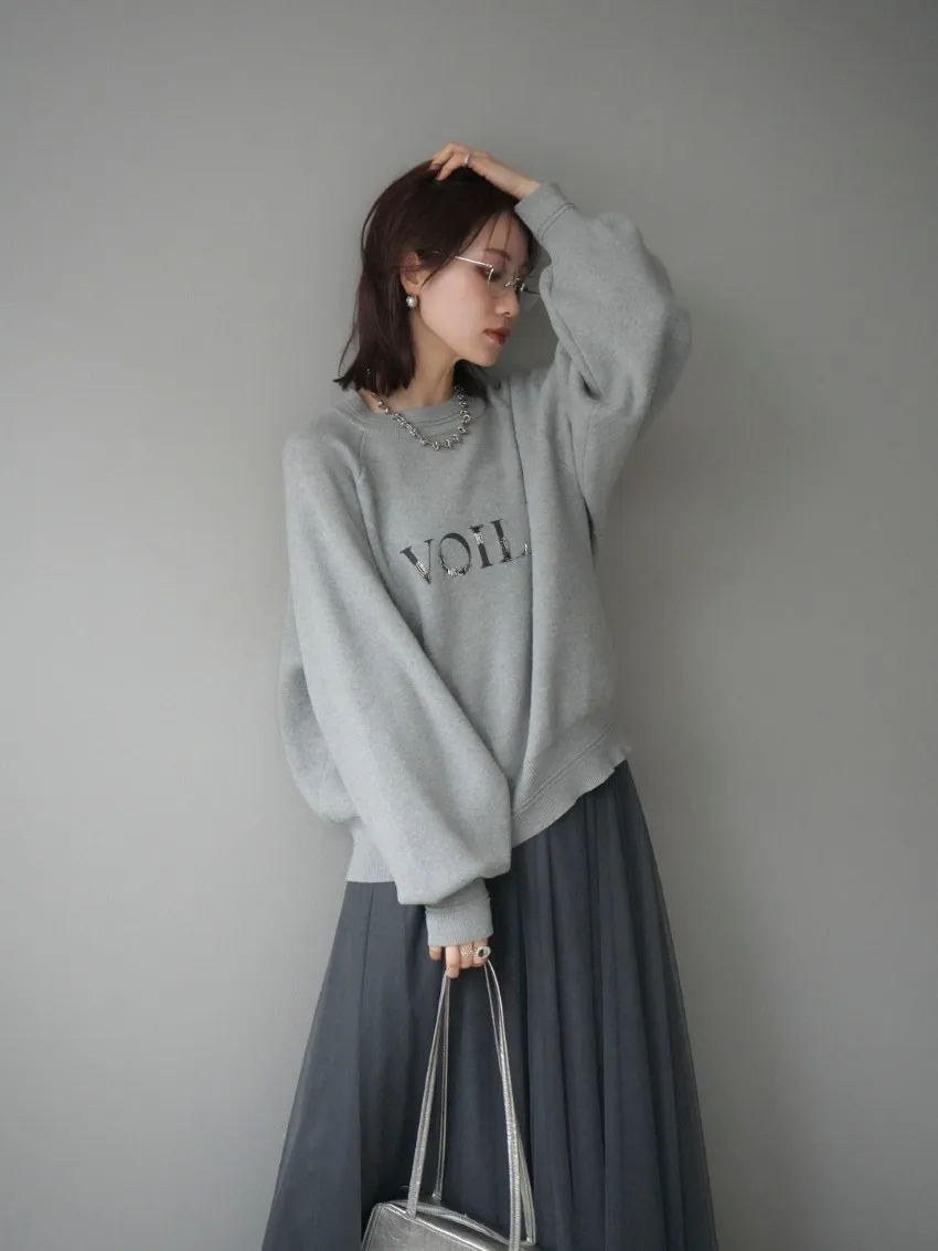 休閒感 胸前法語Voila小亮片設計感刺繡