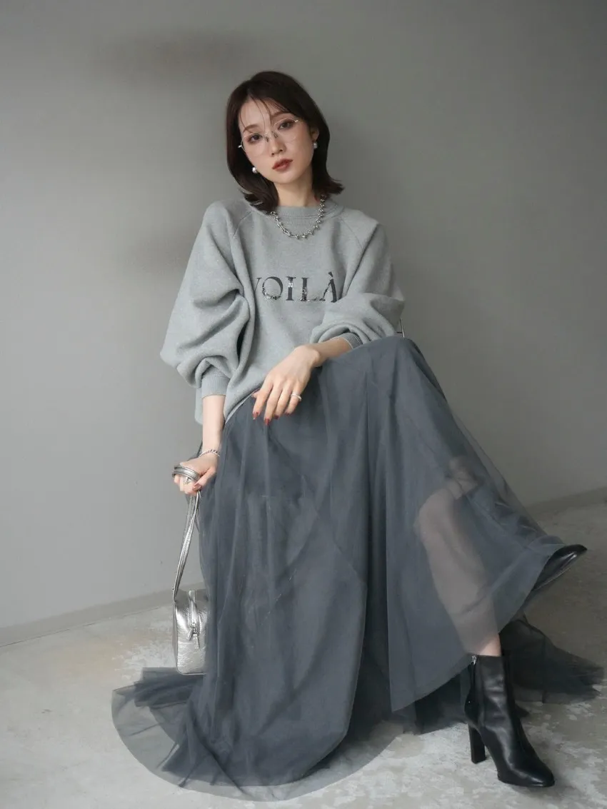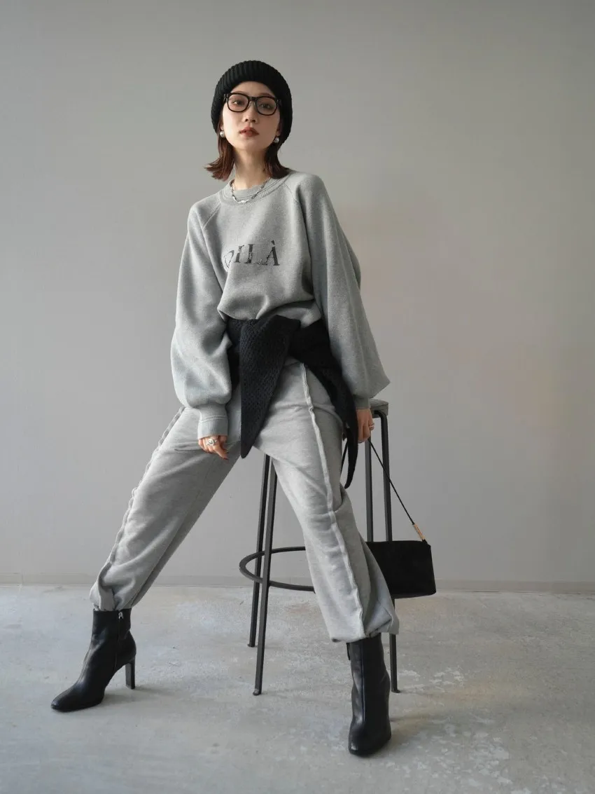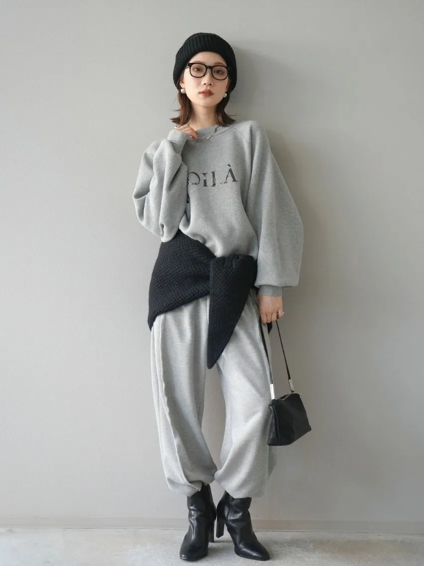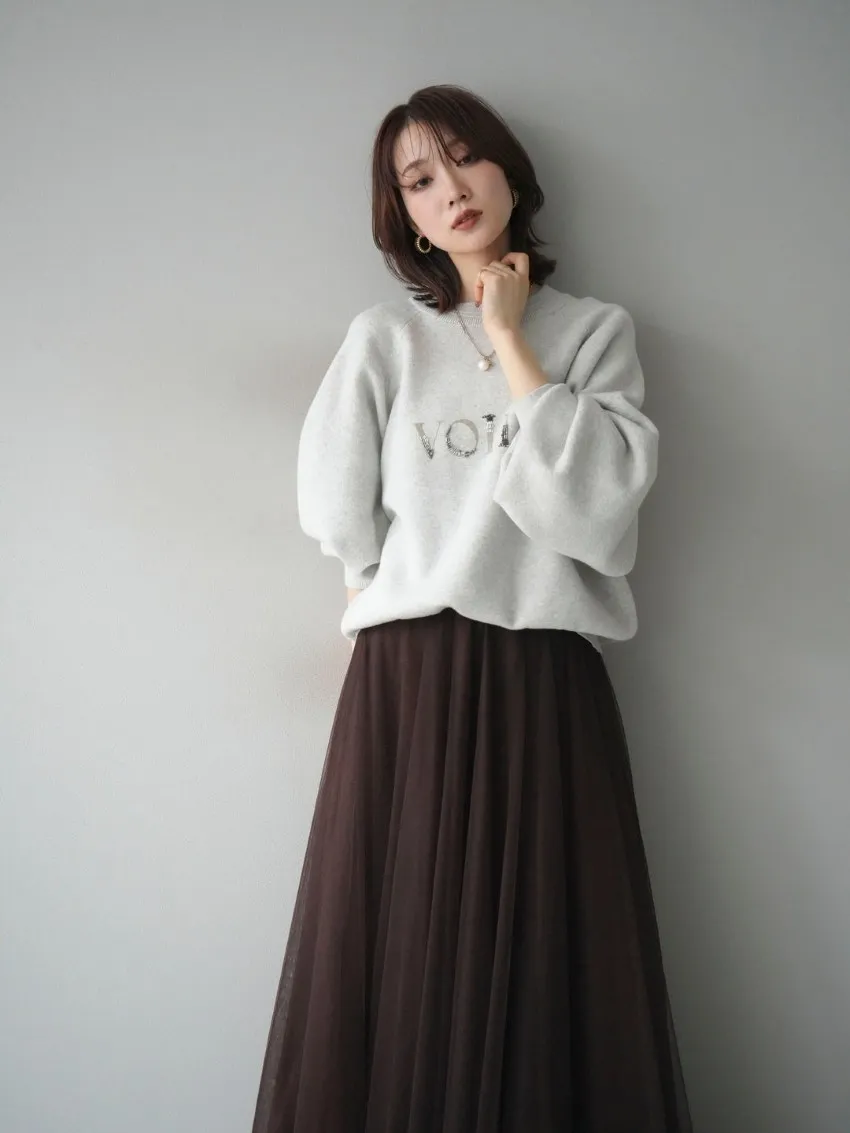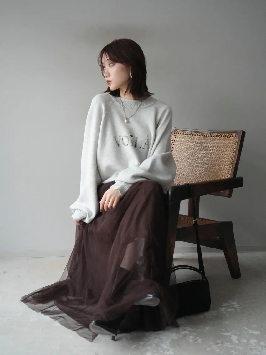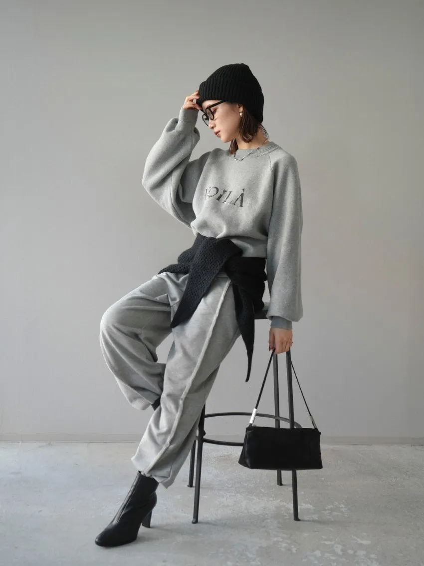 休閒感 胸前法語Voila小亮片設計感刺繡