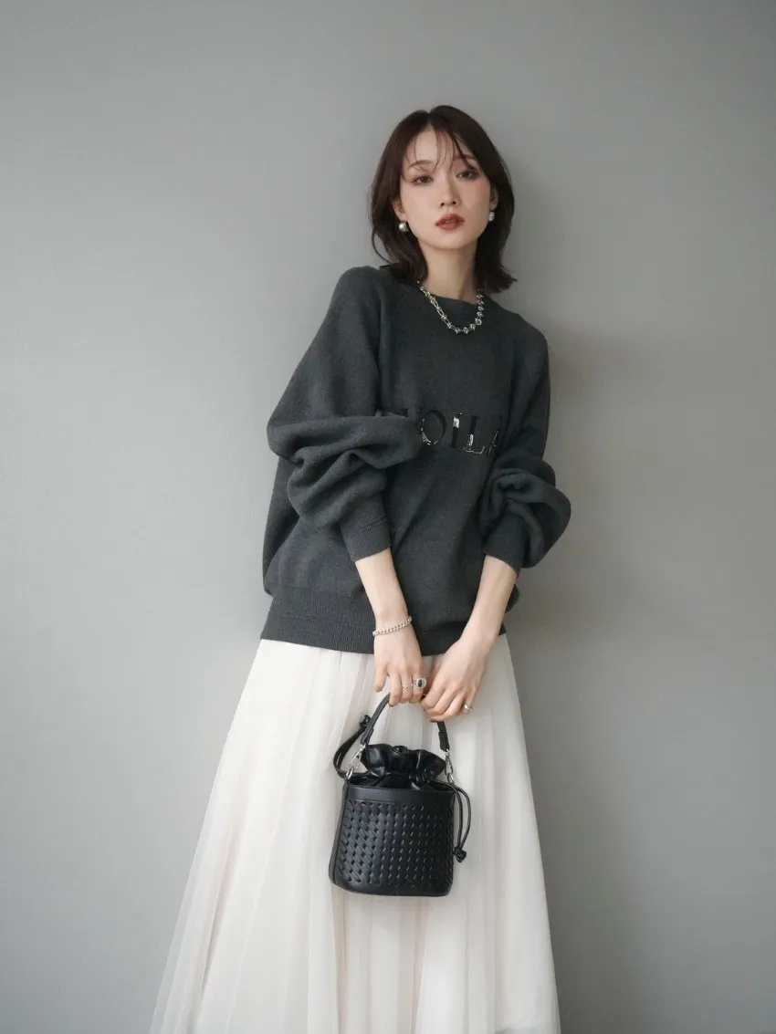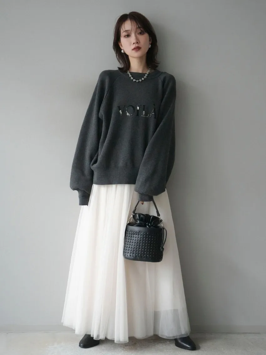 品牌Voila法語小亮片刺繡混棉針織造型上衣