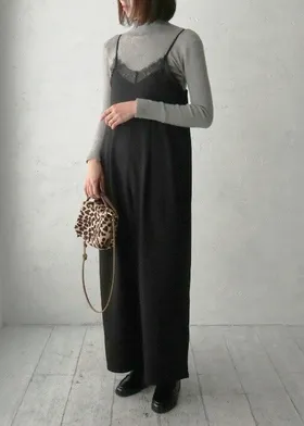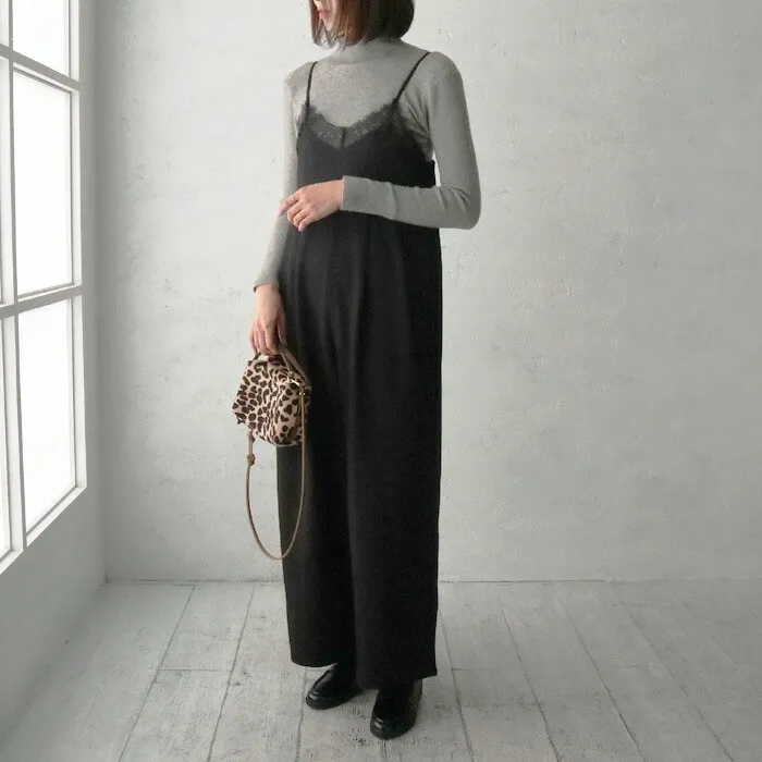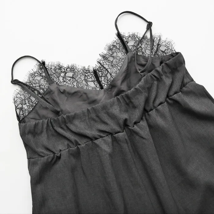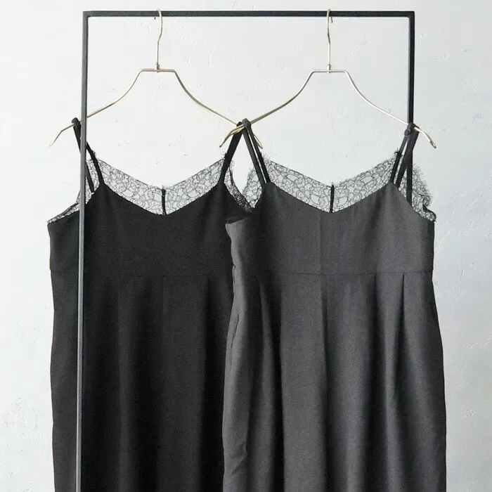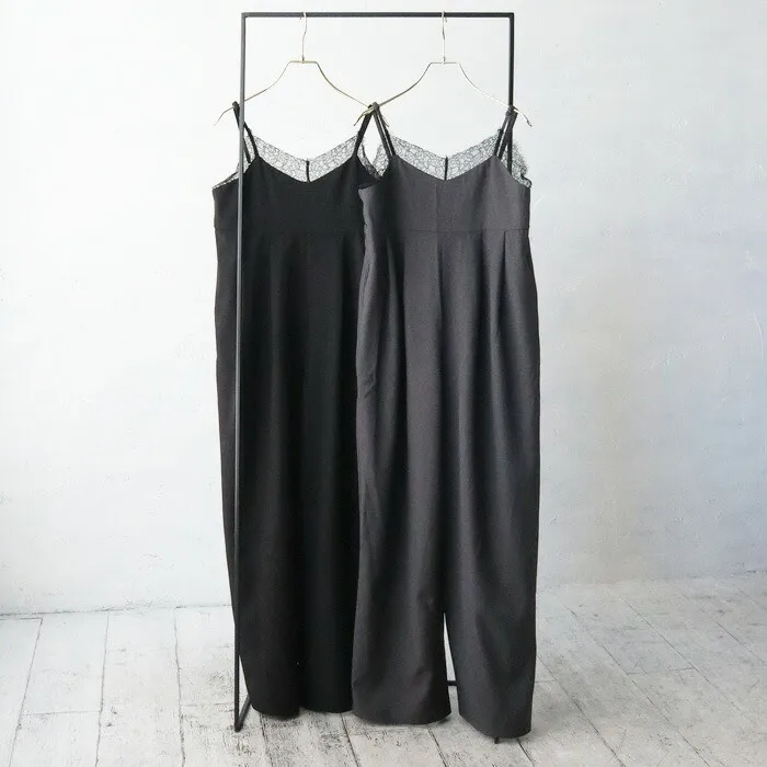 邊緣纖細蕾絲連身吊帶寬褲
