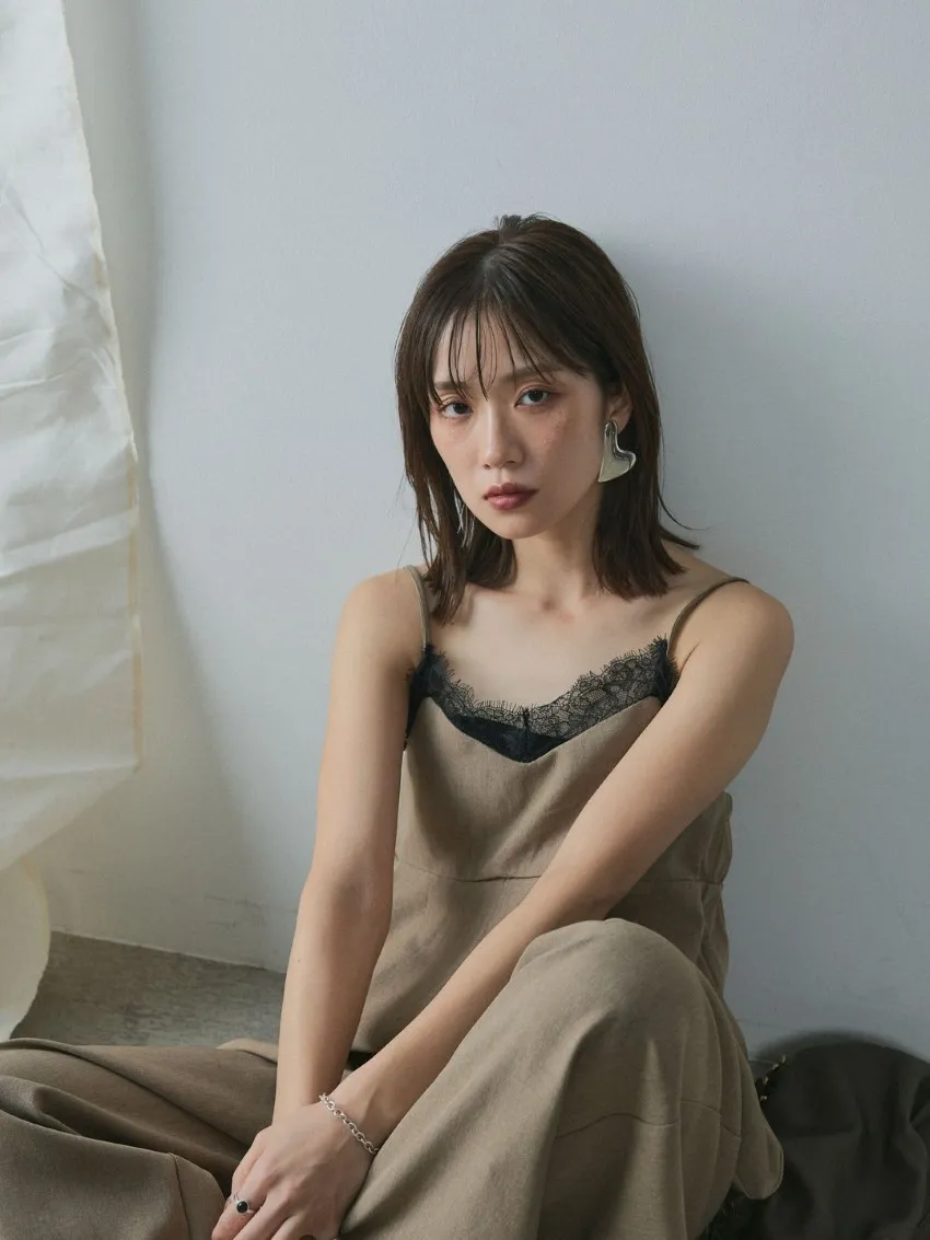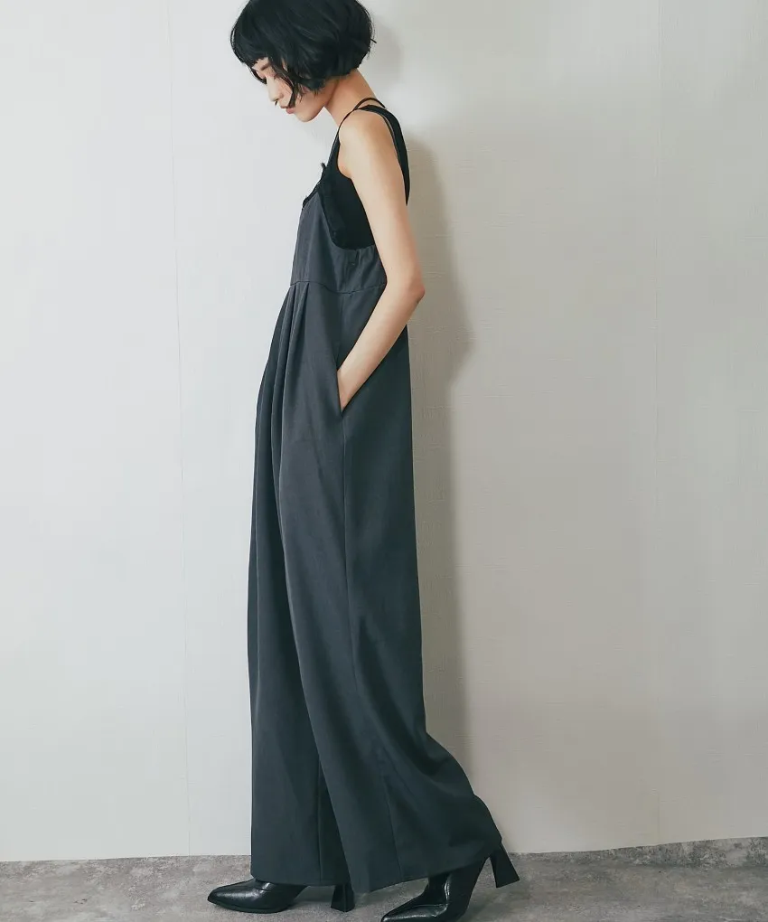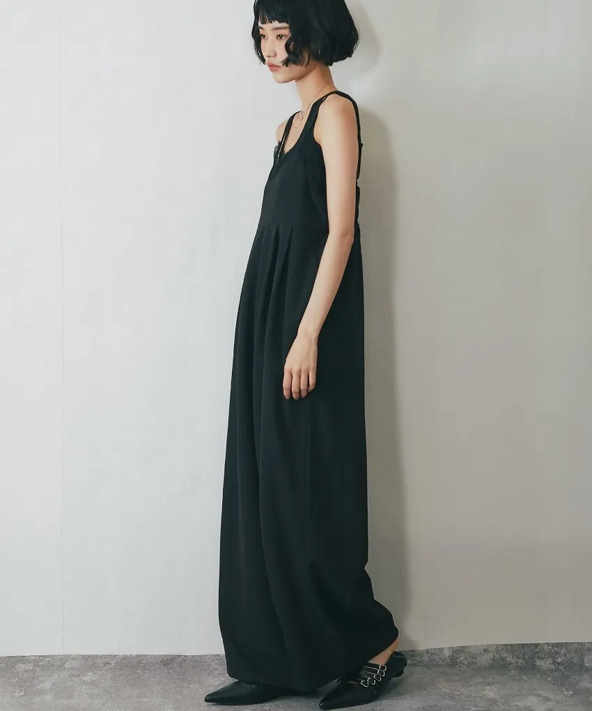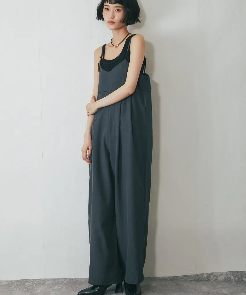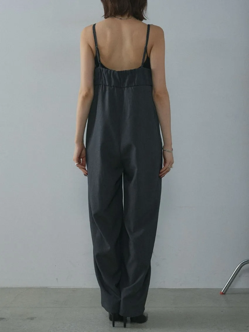 邊緣拼接纖細蕾絲點綴連身吊帶寬褲