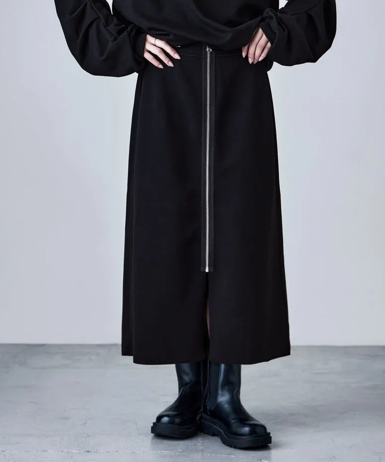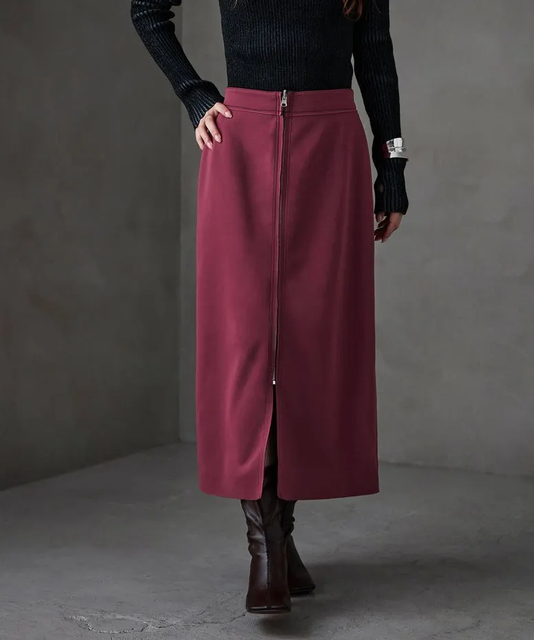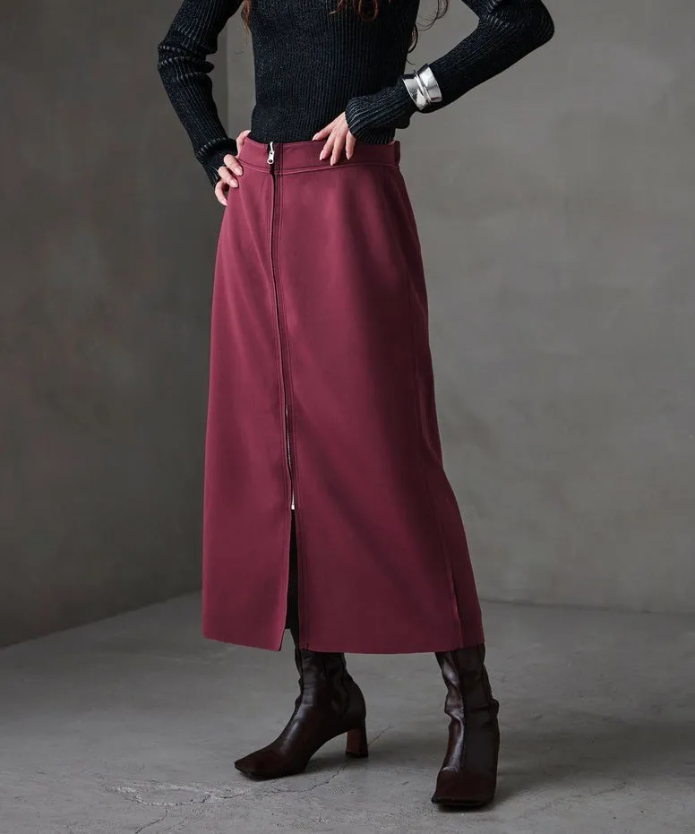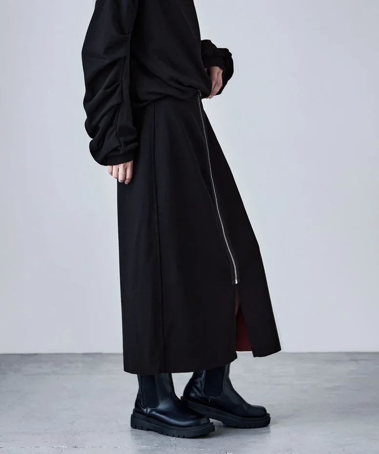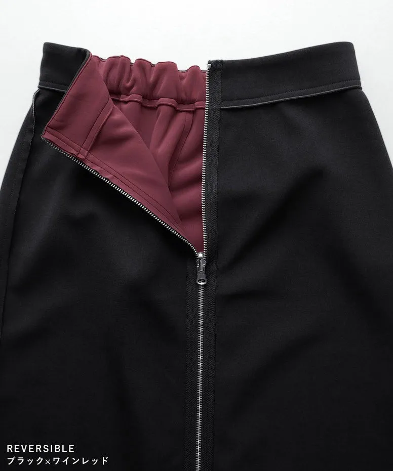 雙面雙色設計~拉鍊造型直版細身開岔窄裙