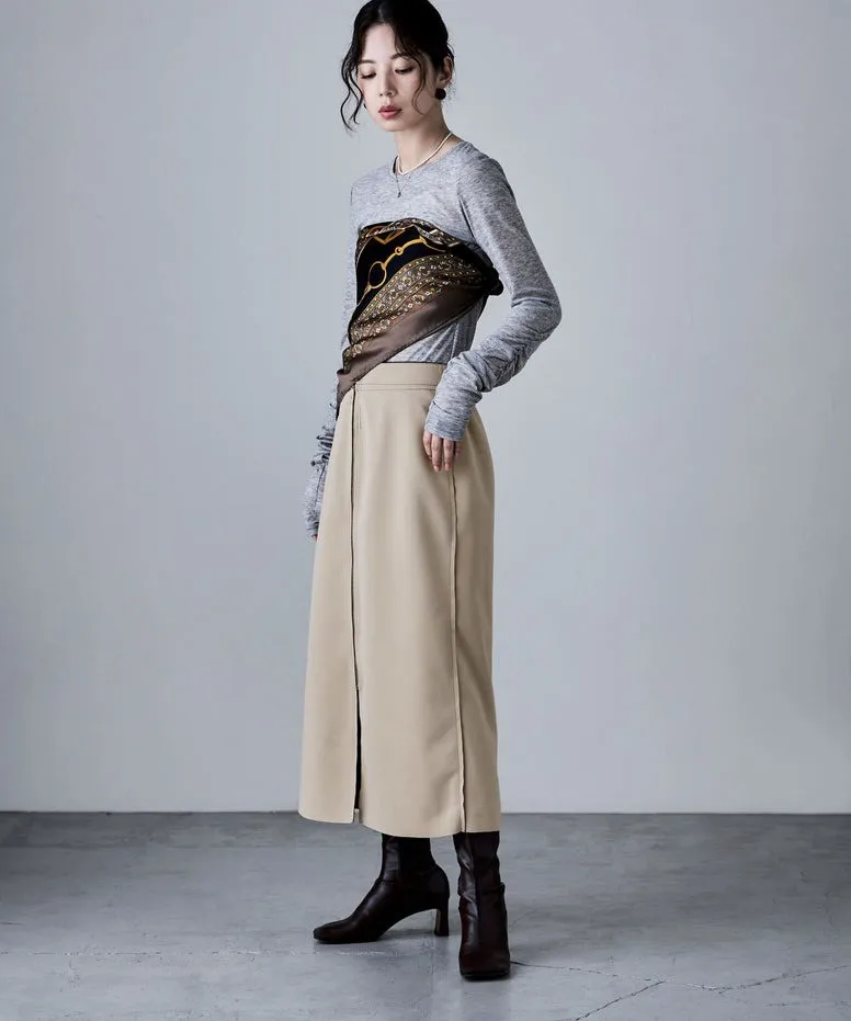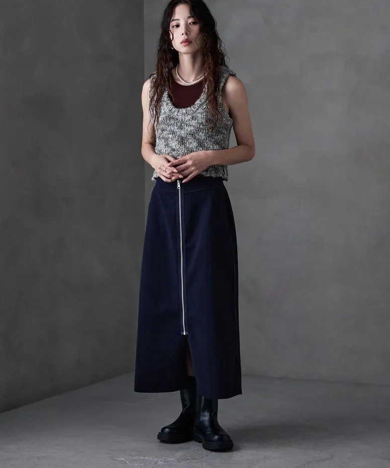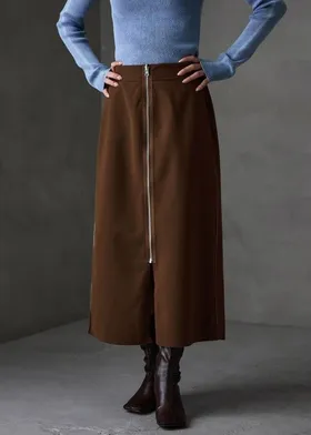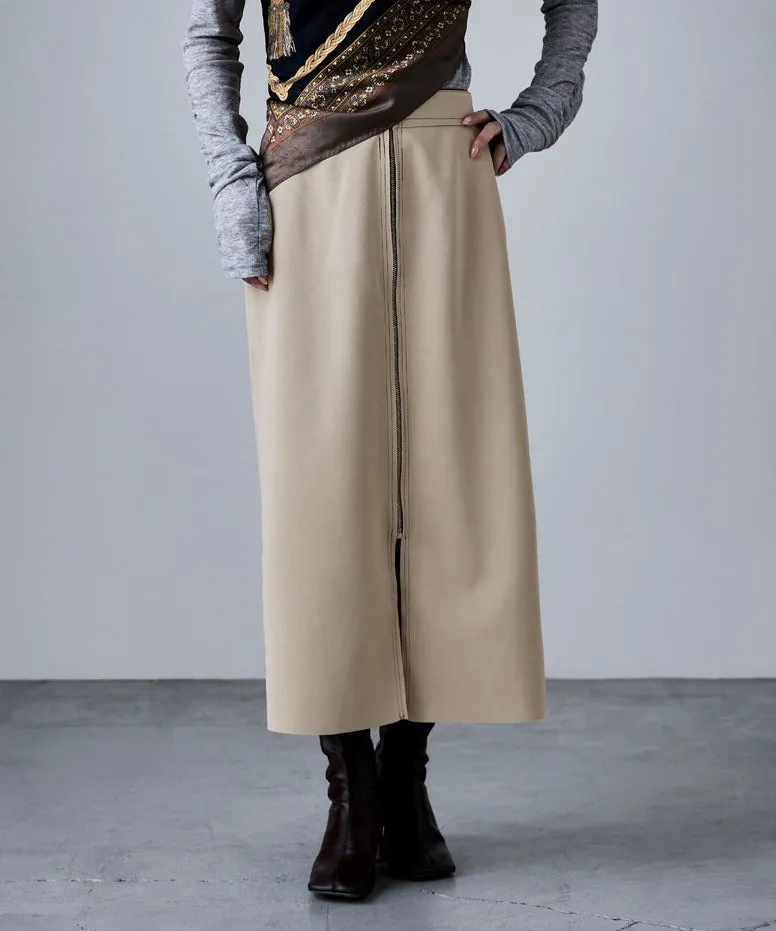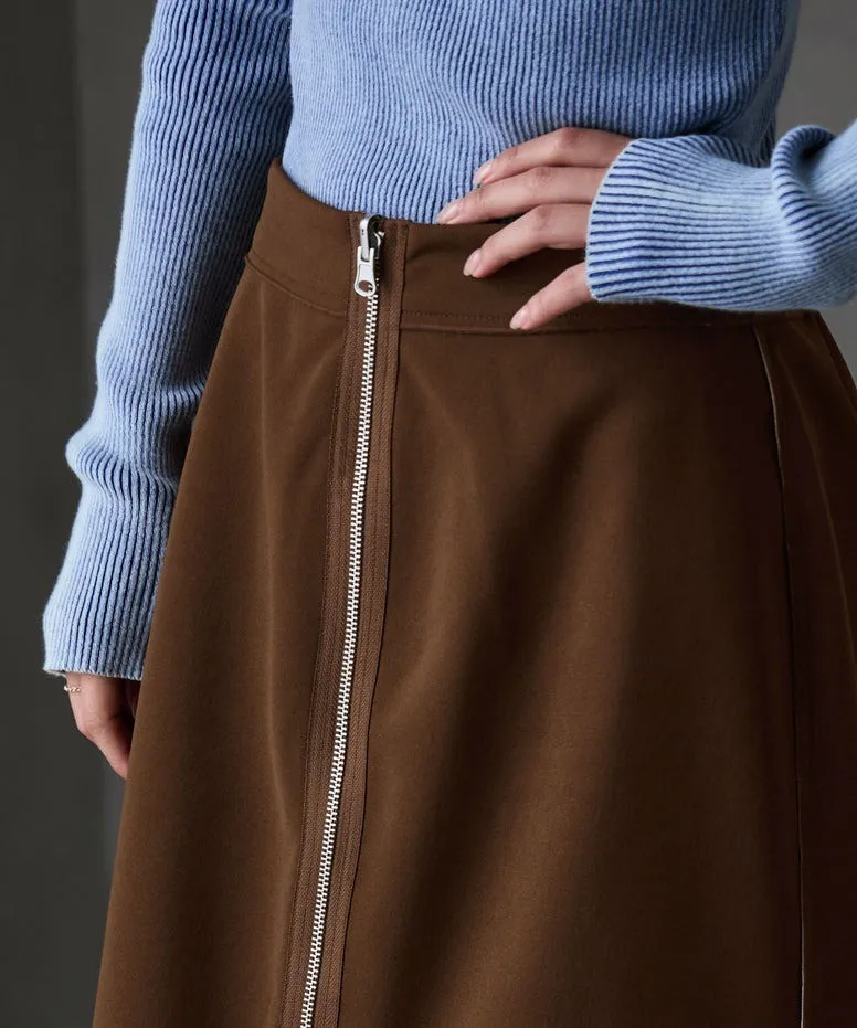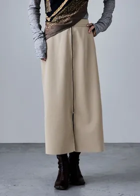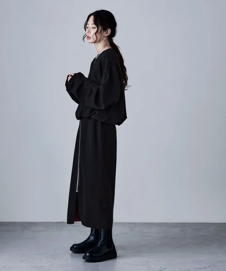雙面雙色設計~拉鍊造型直版細身開岔窄裙