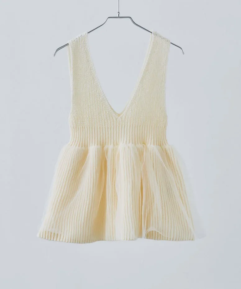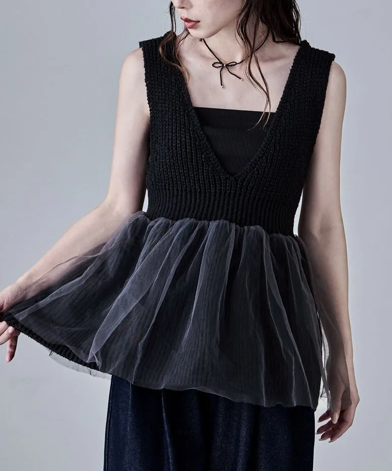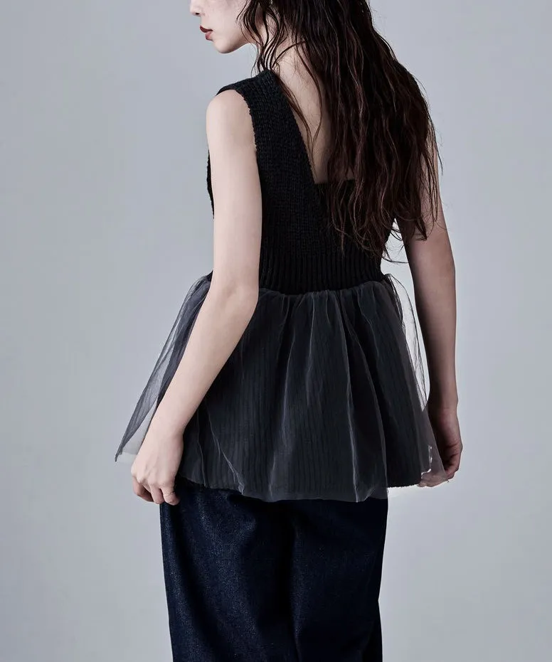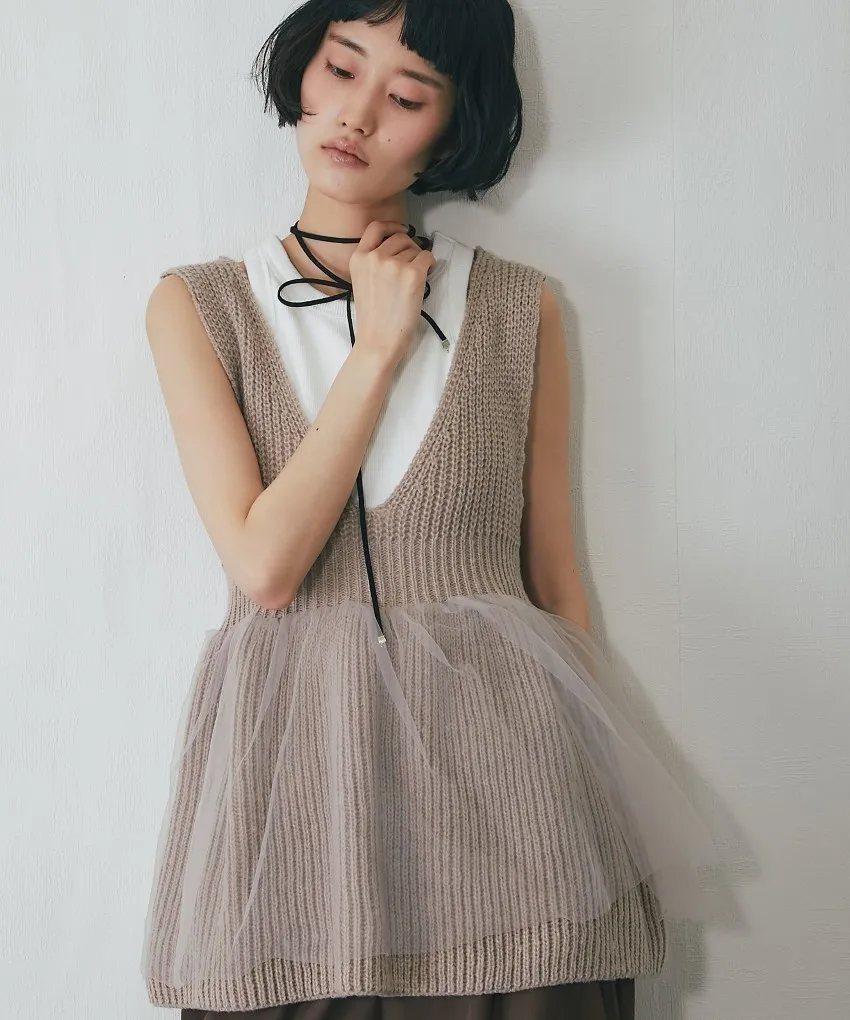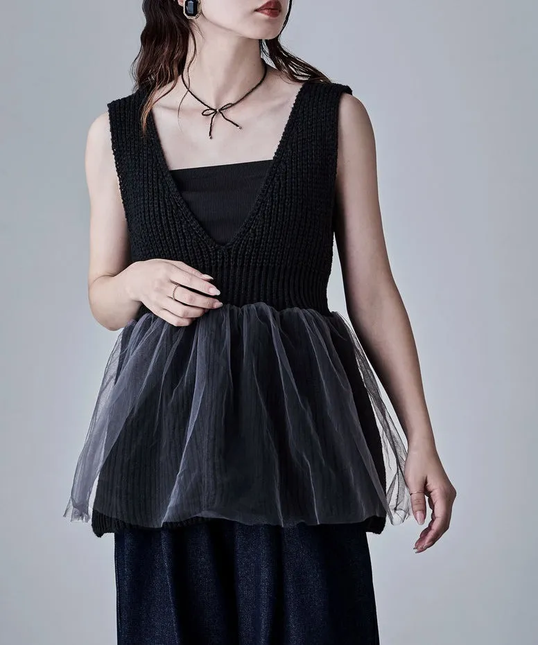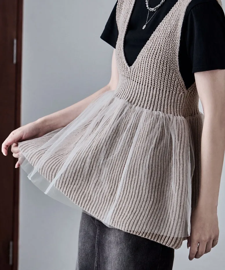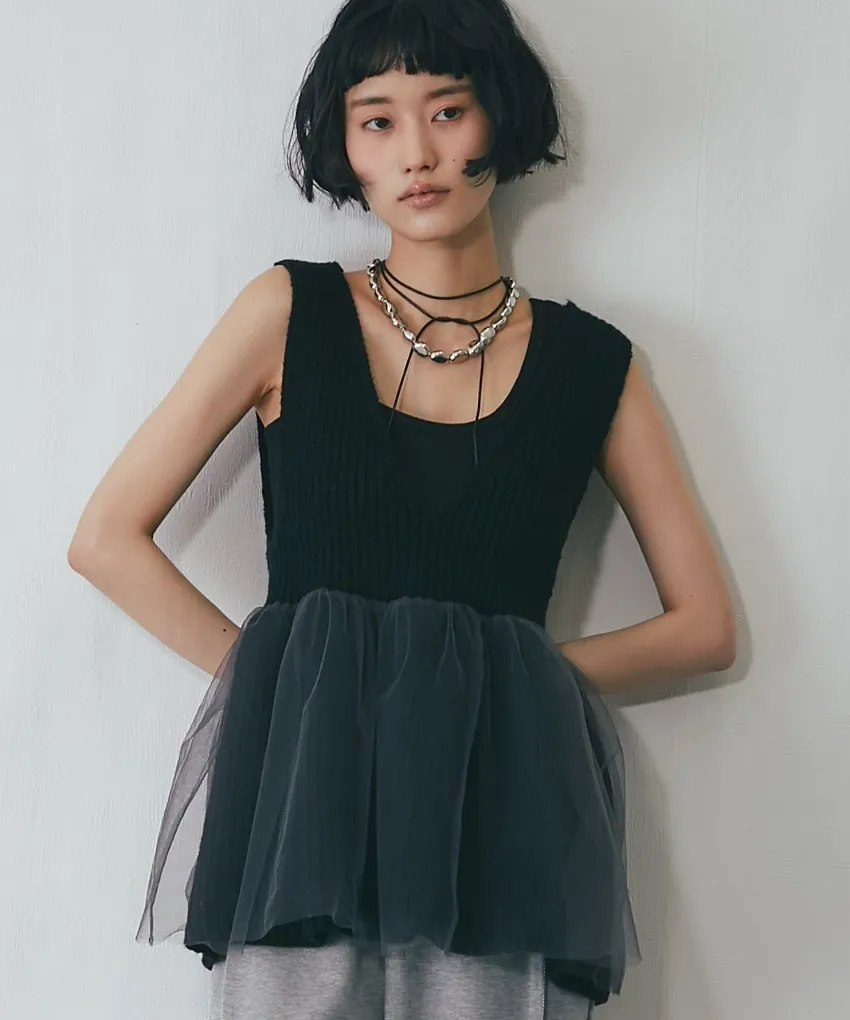 雅女伶風格 蕾絲網紗荷葉裙襬針織背心