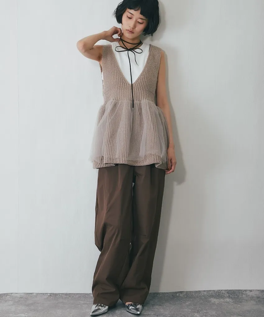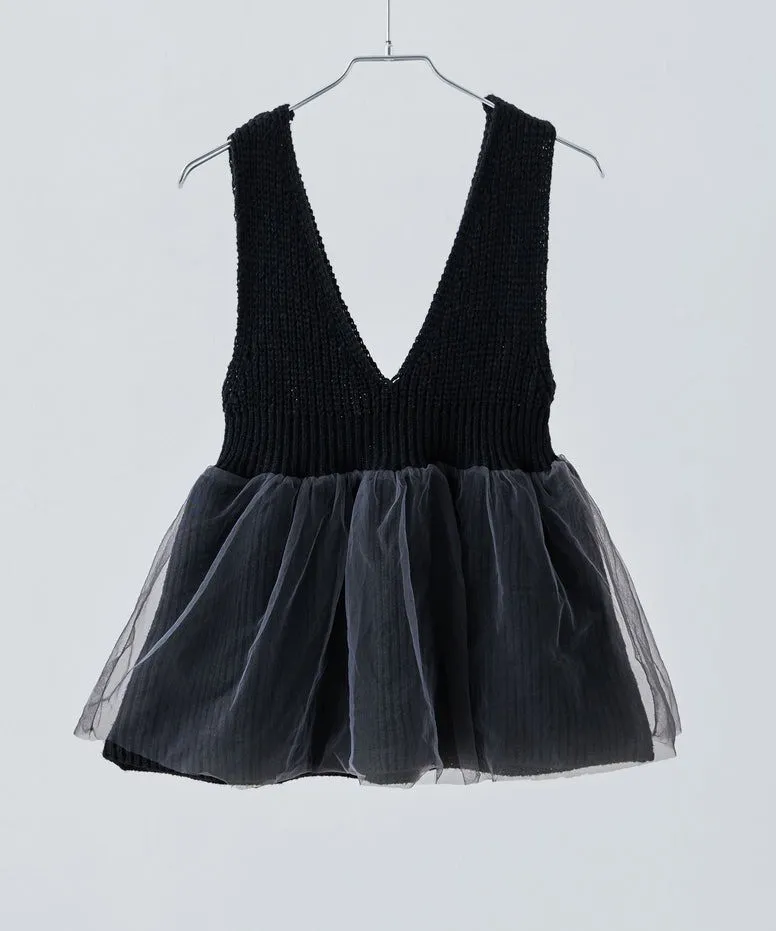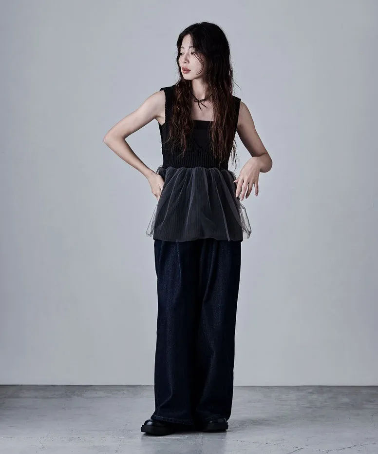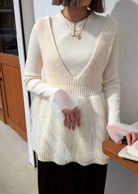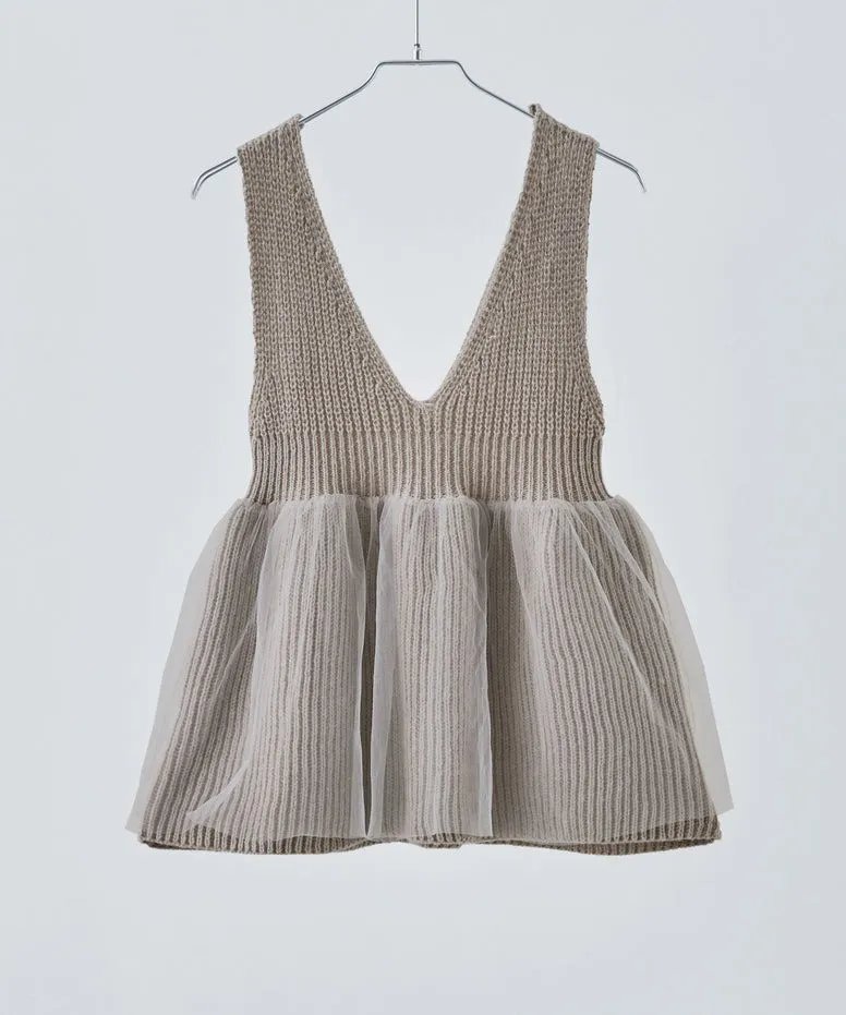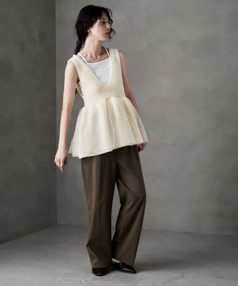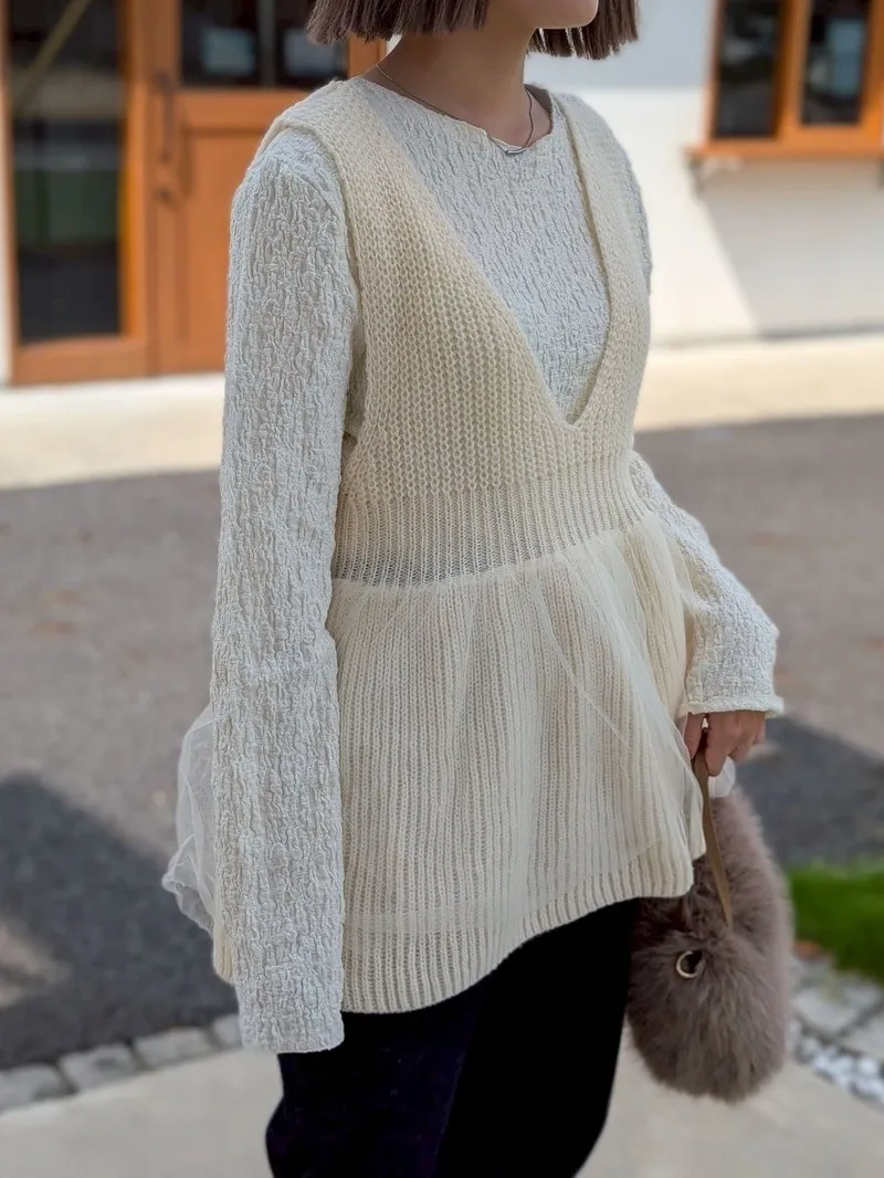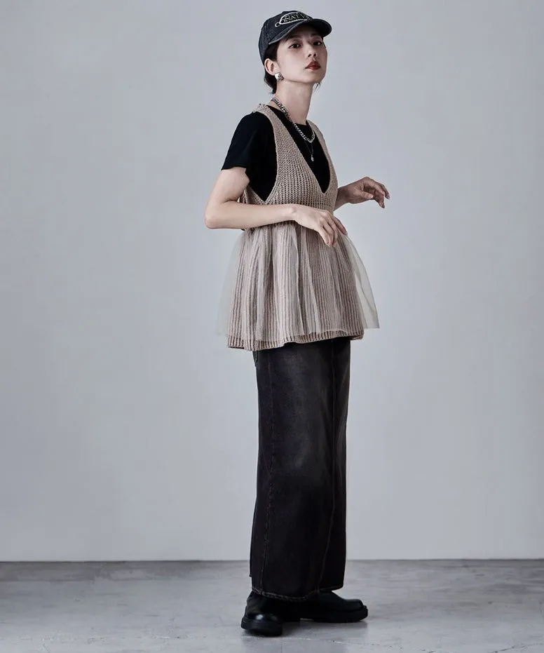 雅女伶風格 蕾絲網紗荷葉裙襬針織背心