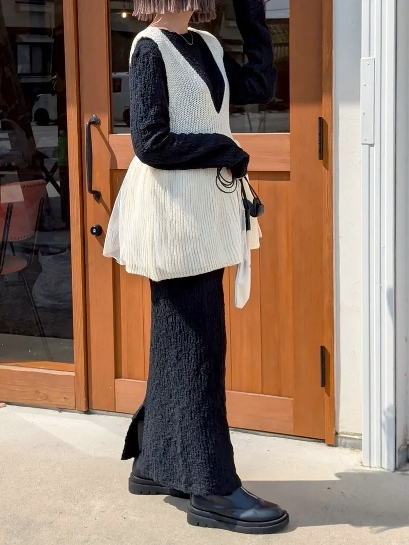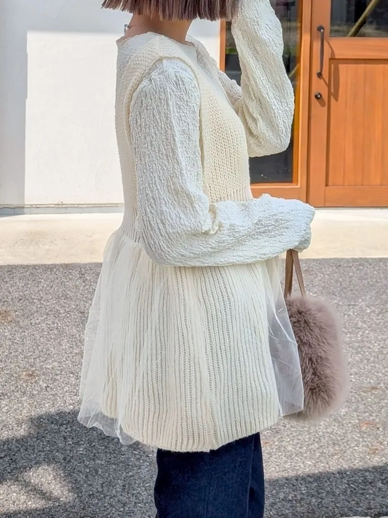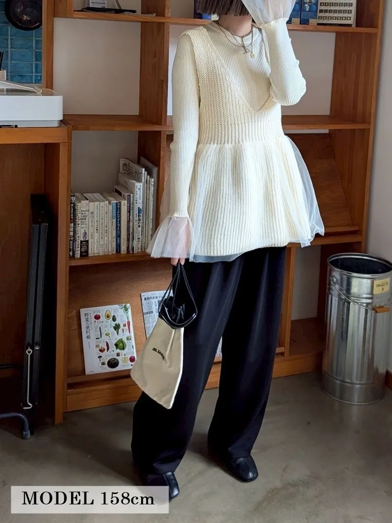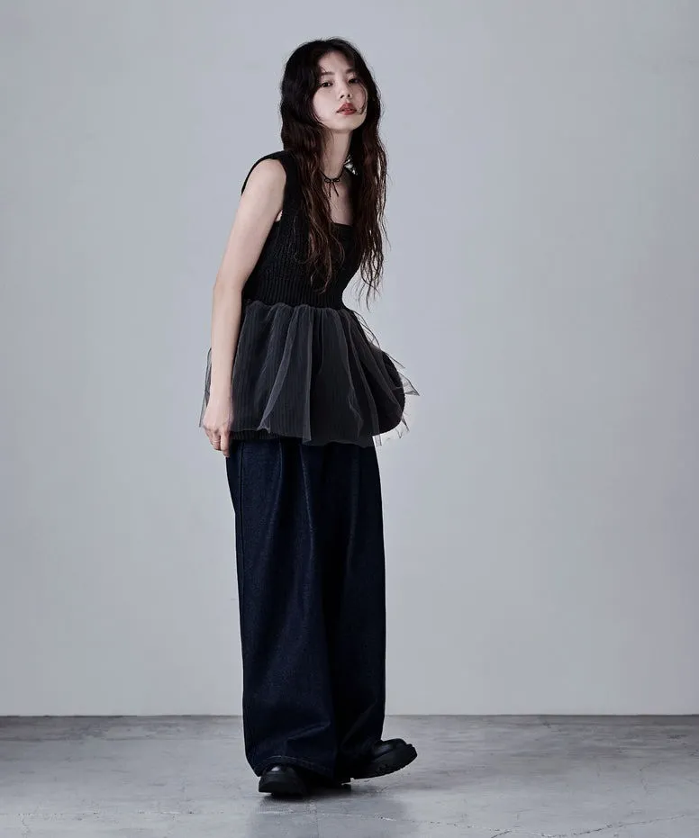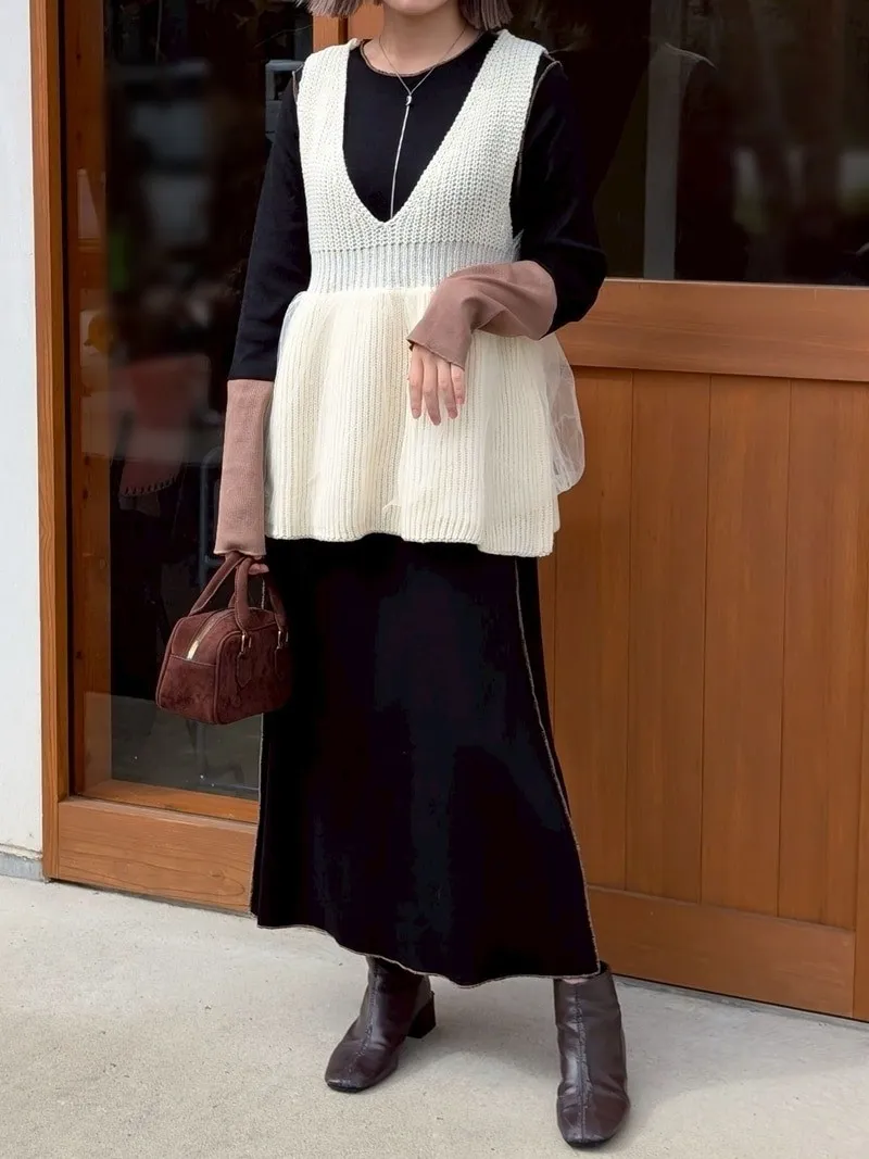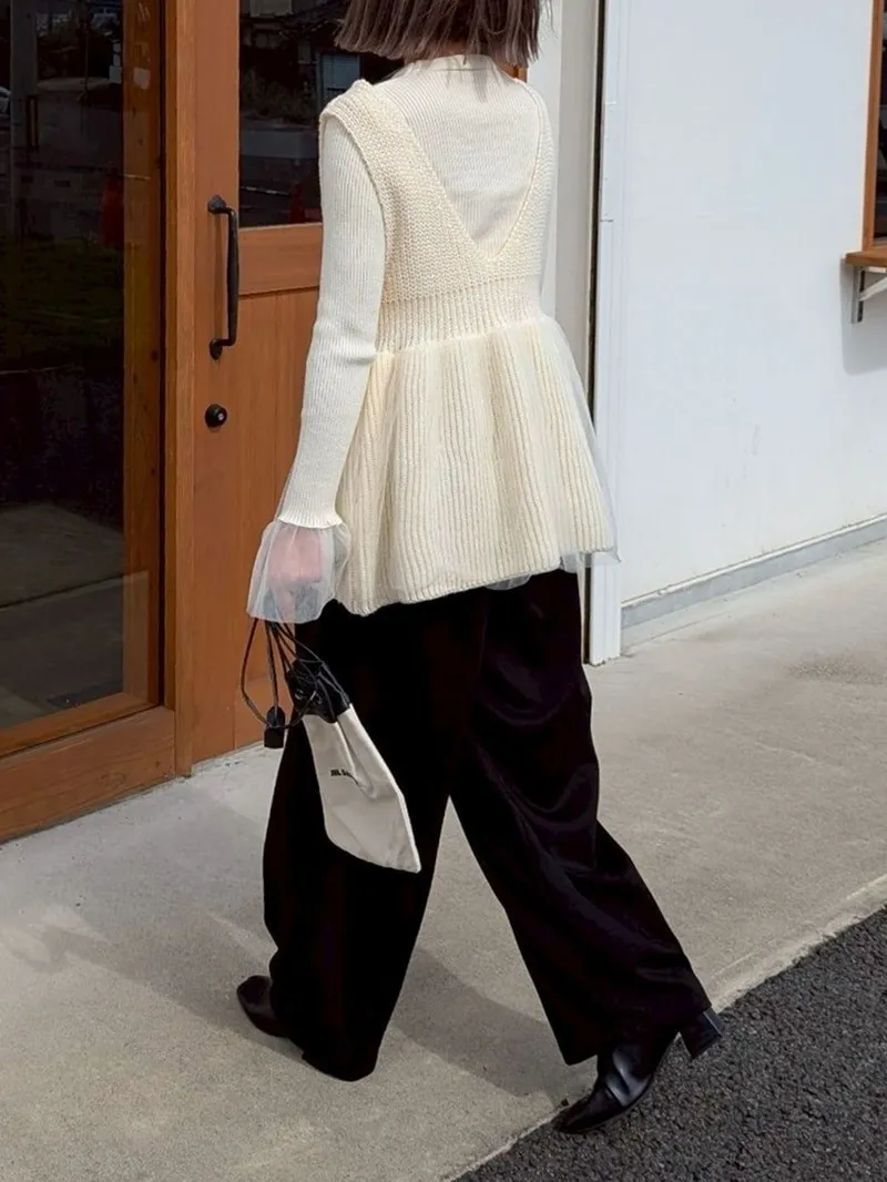 雅女伶風格 蕾絲網紗荷葉裙襬針織背心