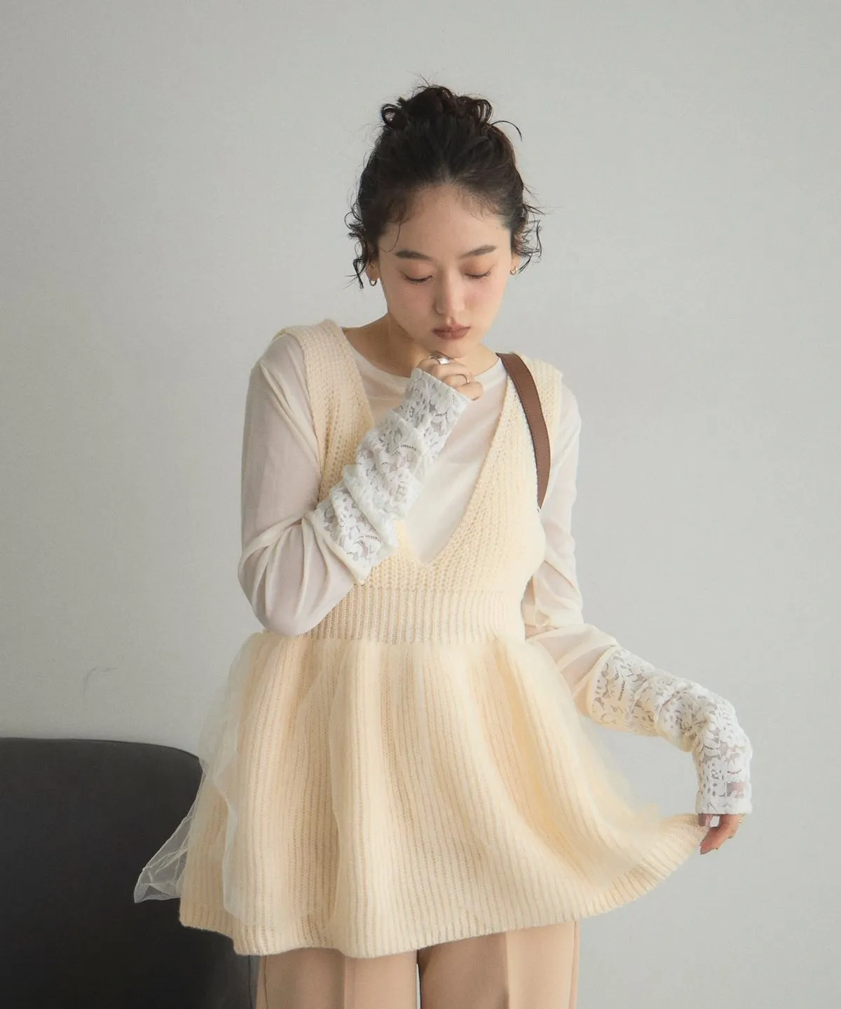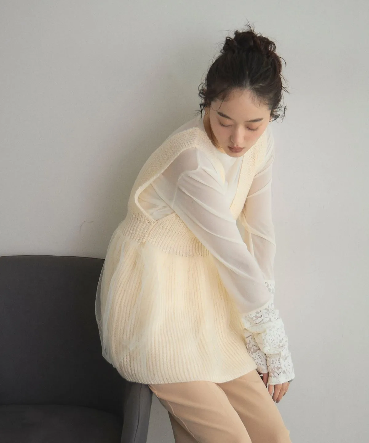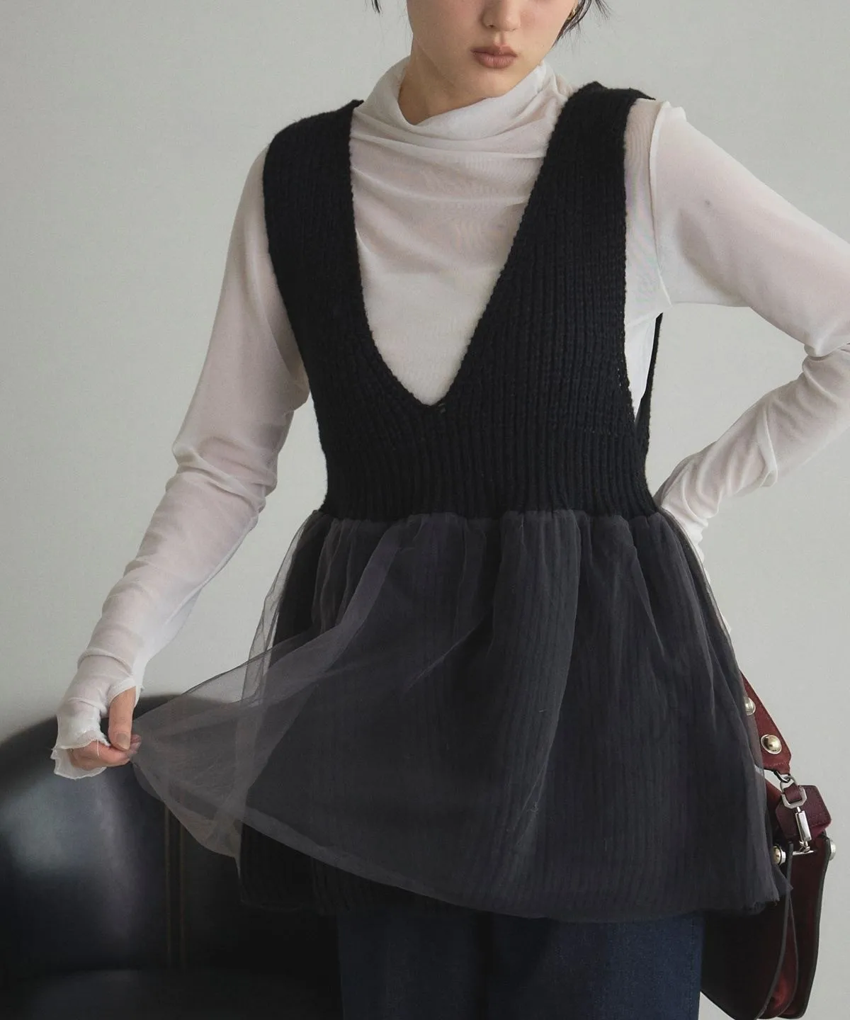 搭配輕盈感氛圍透視薄網紗層次設計