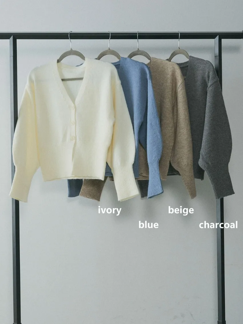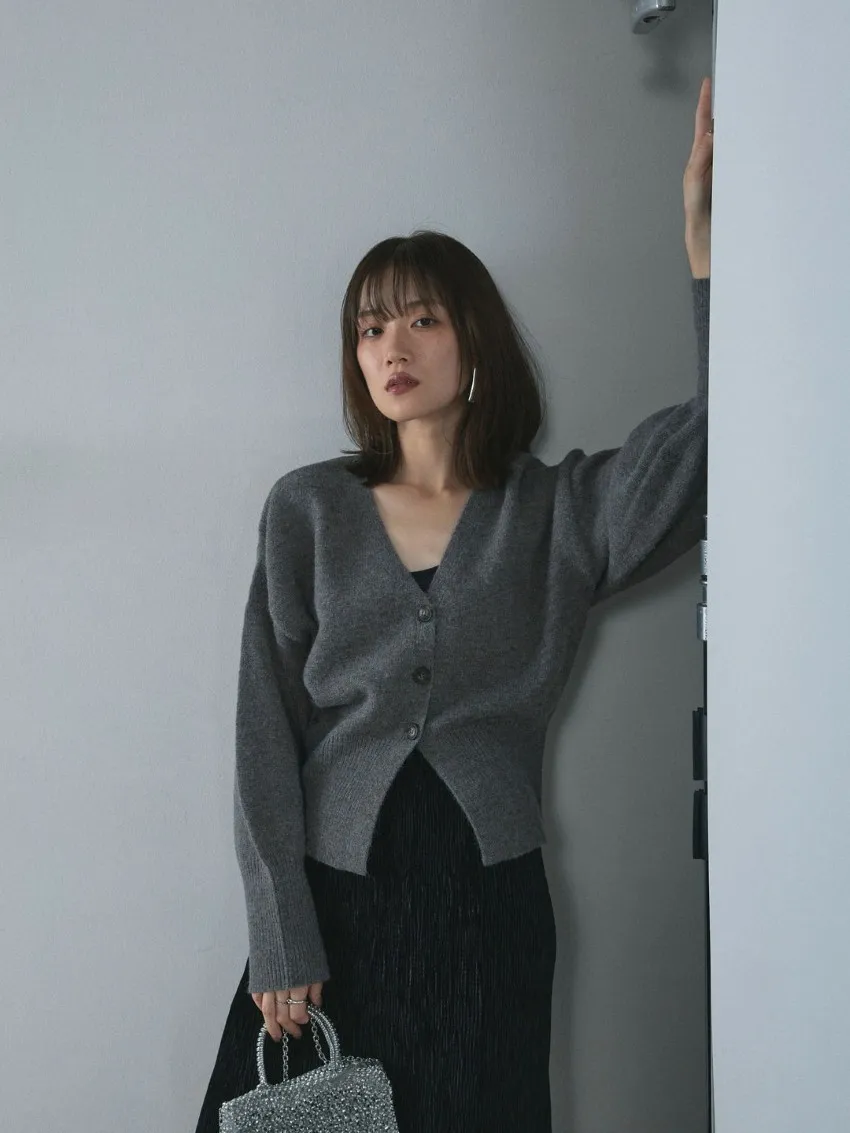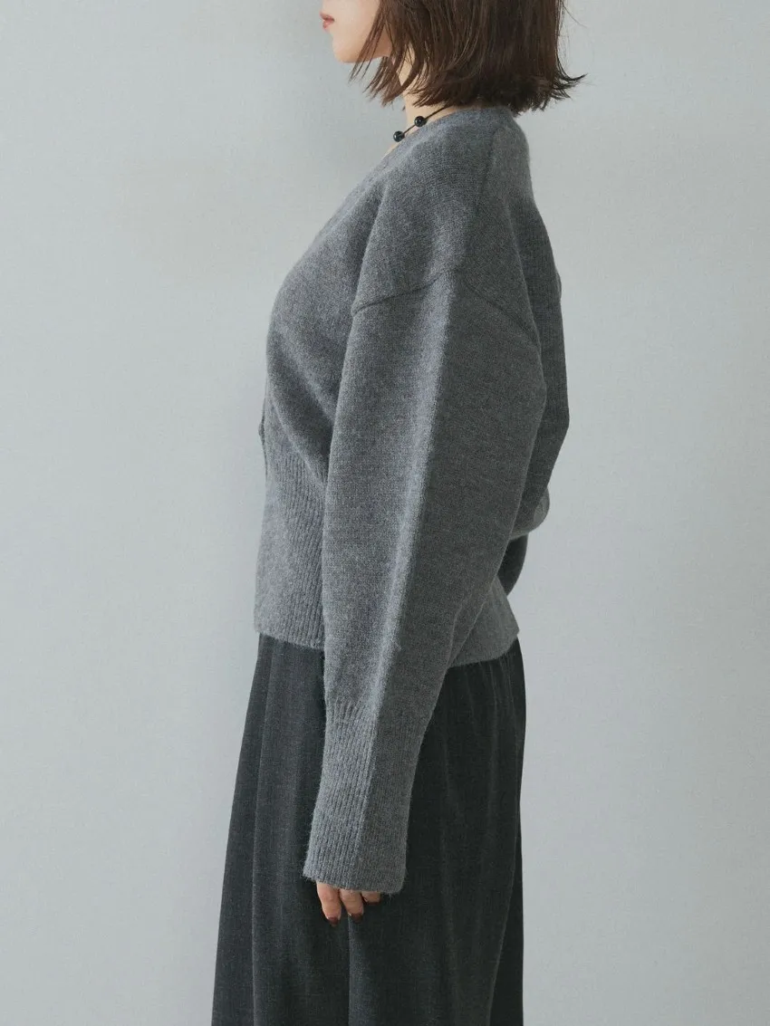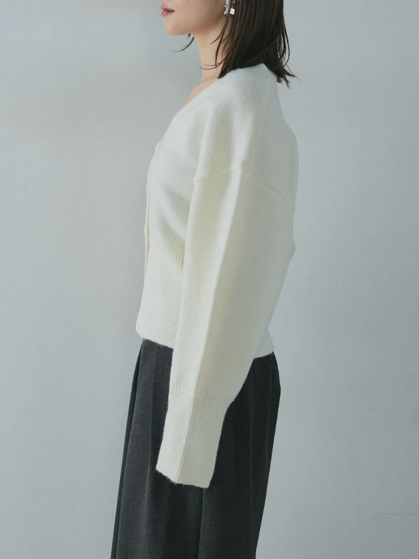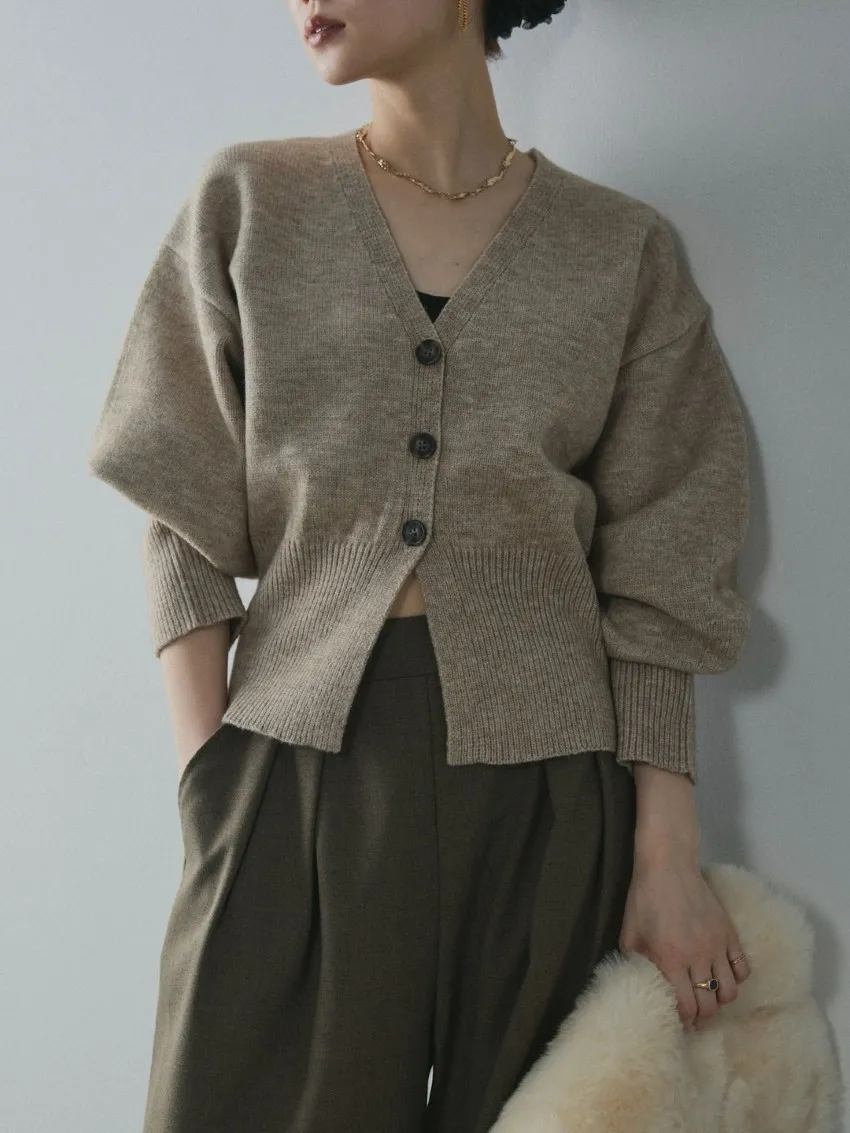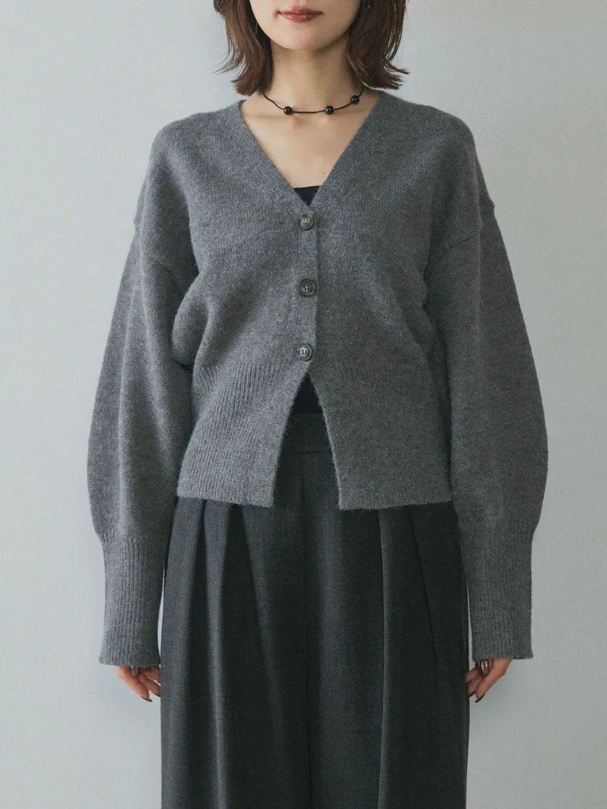 腰身短版造型澎袖V領柔軟羊駝毛觸感毛衣外套