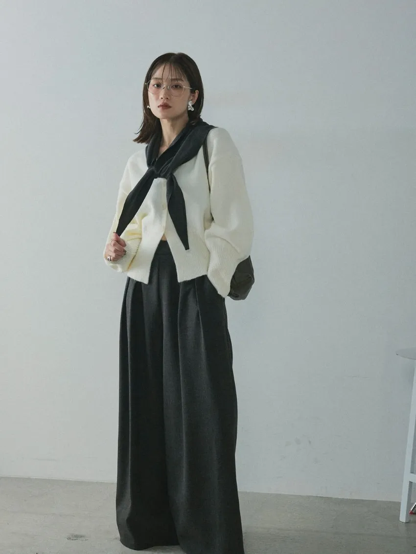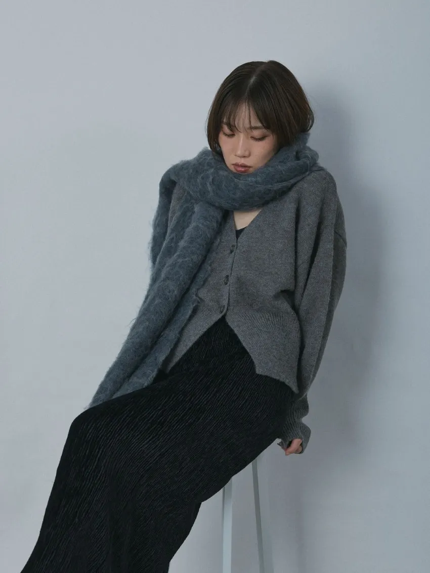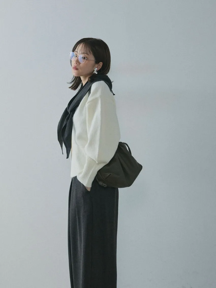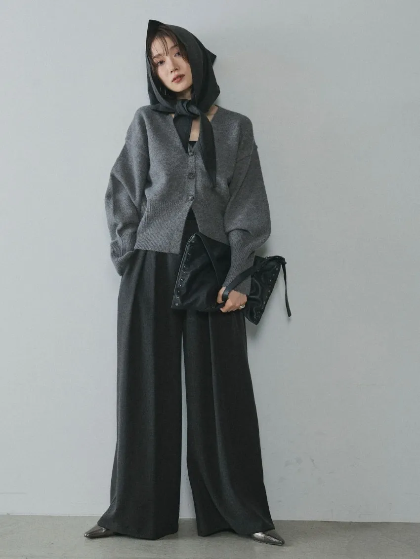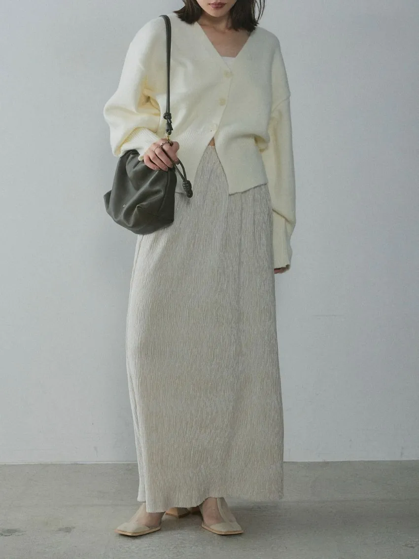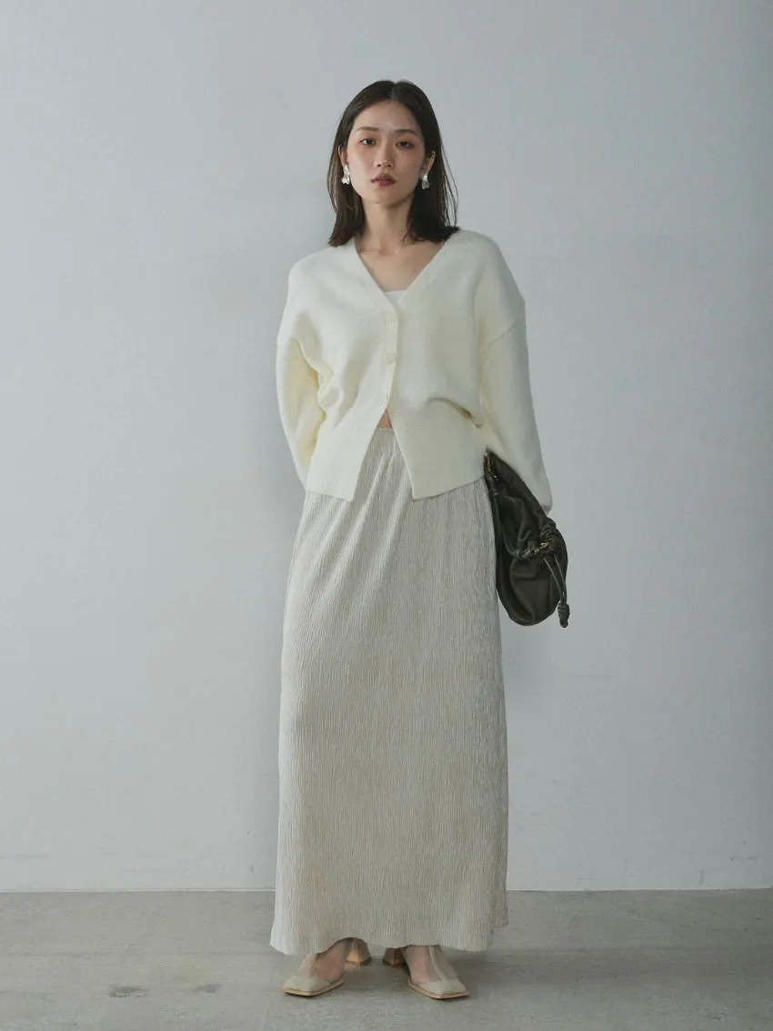 腰身短版造型澎袖V領柔軟羊駝毛觸感毛衣外套