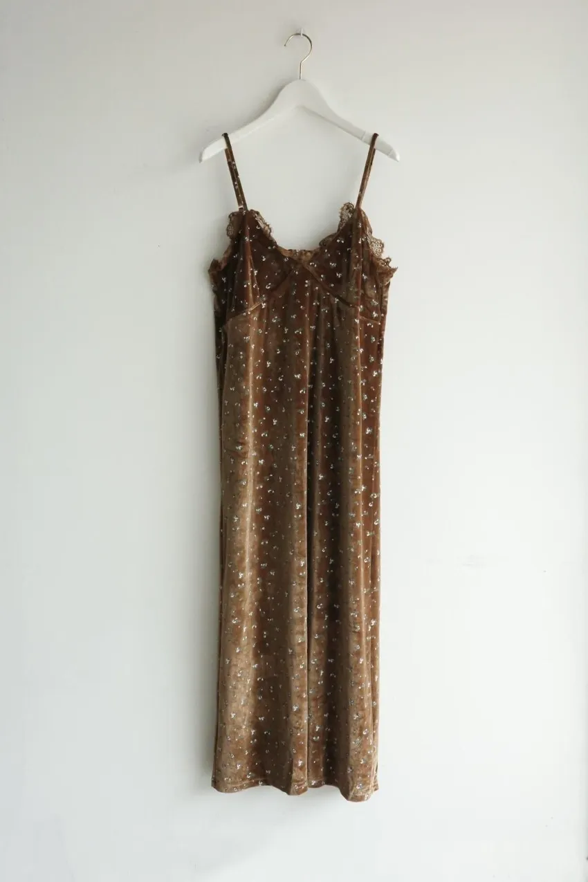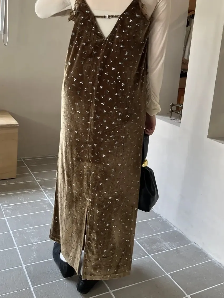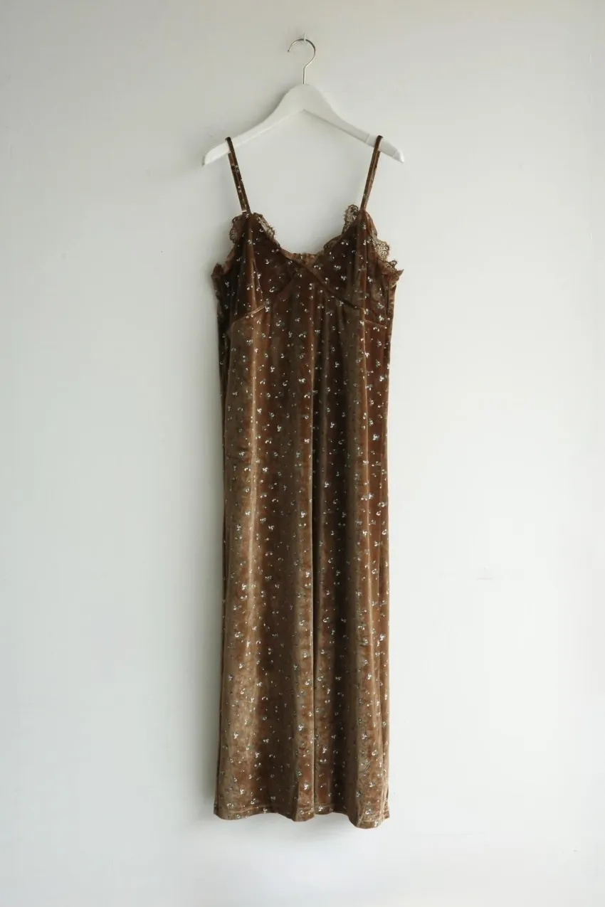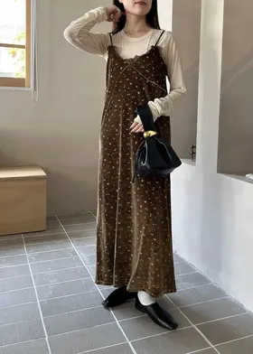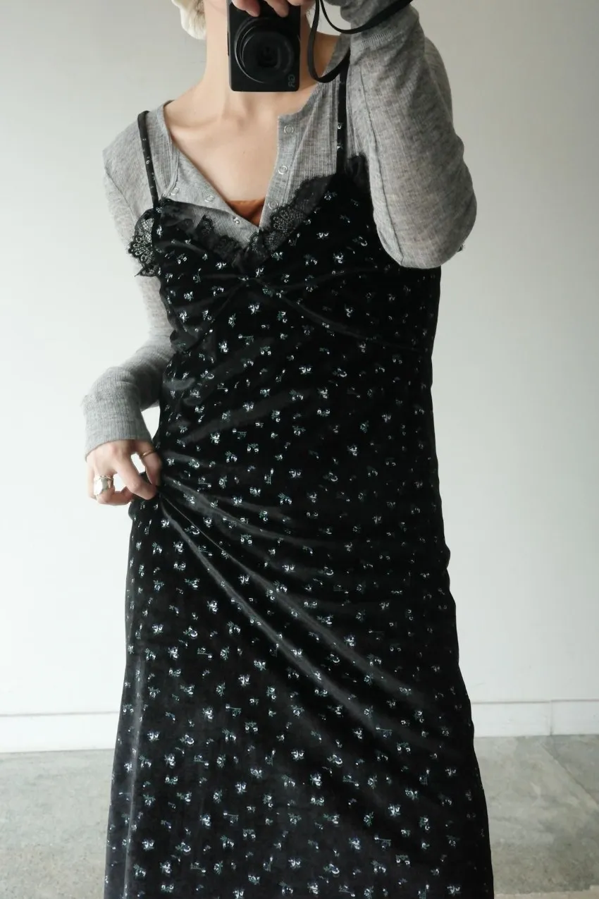 小花圖案與蕾絲荷葉滾邊點綴的天鵝絨細肩帶洋裝胸口疊加細緻蕾絲,直版修身剪裁修飾背面加入金屬細節釦環美背造型垂墜感柔順的天鵝絨面料搭配後開衩設計 具備柔滑光澤與適度彈性穿著時舒適貼合 低調奢華的質感外搭針織開襟衫可以內搭薄款高領或襯衫貼心分3個尺寸 可以依造身高選擇長度尺寸預約限定折扣咖啡色跟黑色 預購 12月底到貨唷