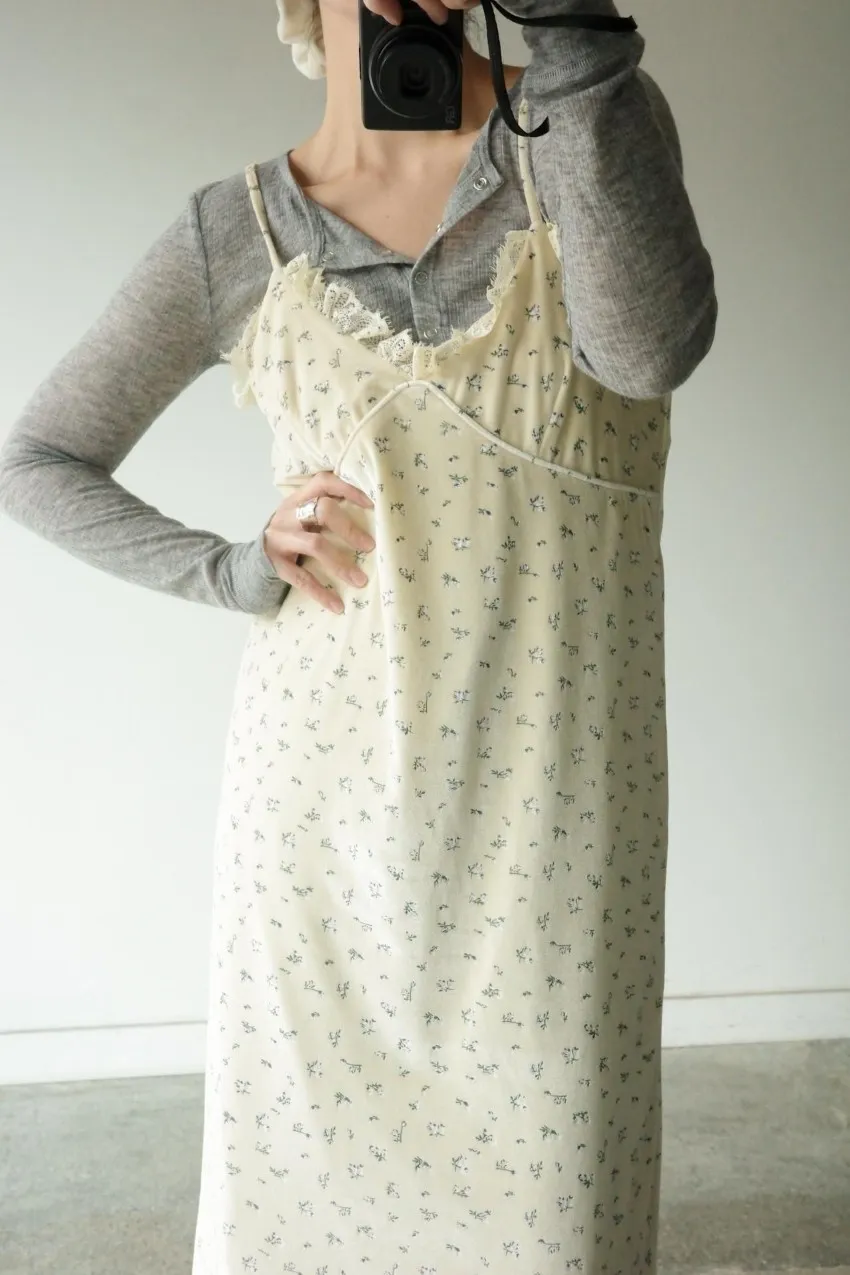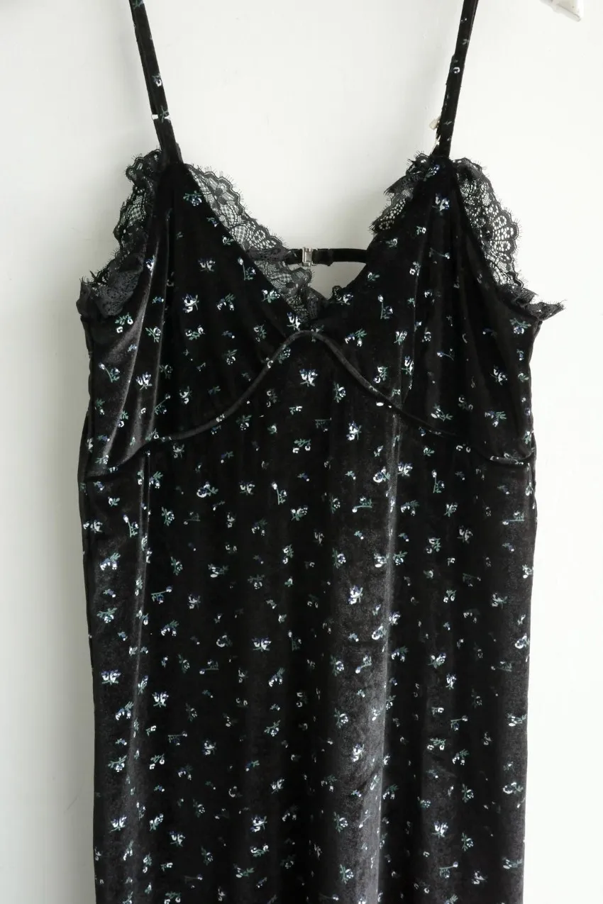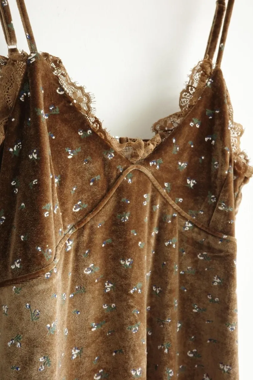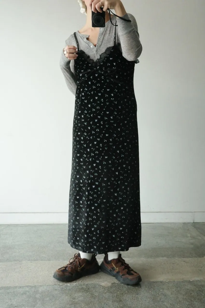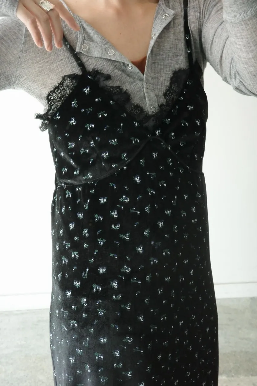 小花圖案與蕾絲荷葉滾邊點綴的天鵝絨細肩帶洋裝胸口疊加細緻蕾絲,直版修身剪裁修飾背面加入金屬細節釦環美背造型垂墜感柔順的天鵝絨面料搭配後開衩設計 具備柔滑光澤與適度彈性穿著時舒適貼合 低調奢華的質感外搭針織開襟衫可以內搭薄款高領或襯衫貼心分3個尺寸 可以依造身高選擇長度尺寸預約限定折扣咖啡色跟黑色 預購 12月底到貨唷