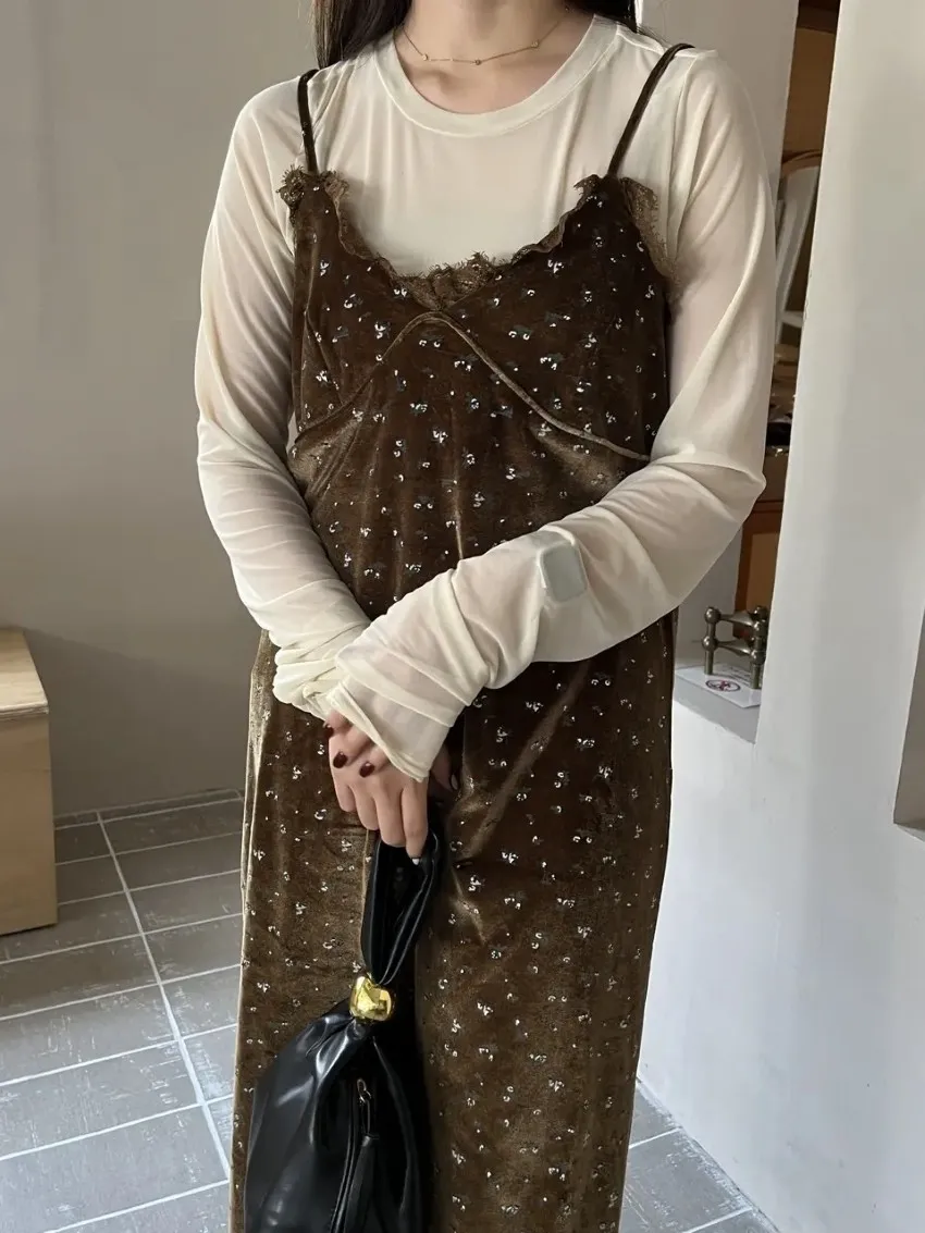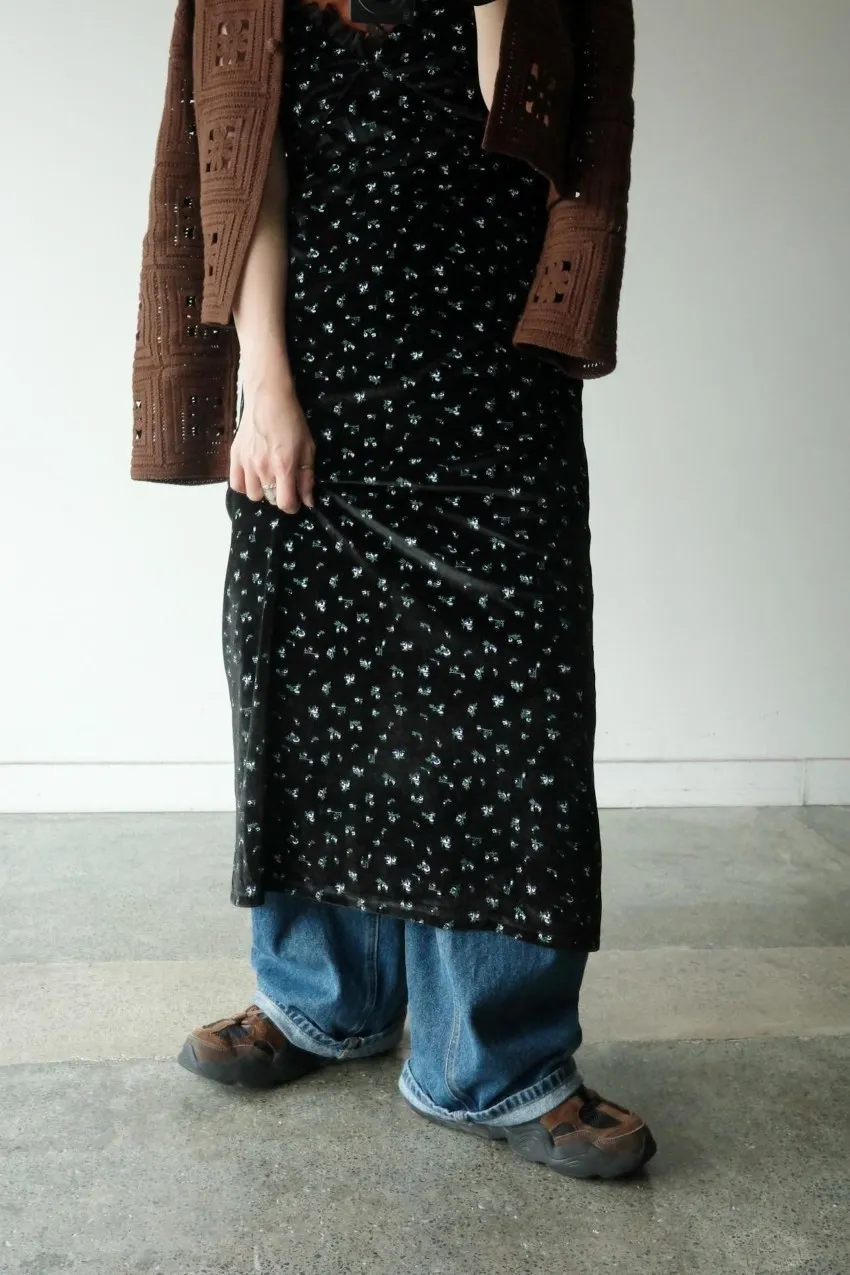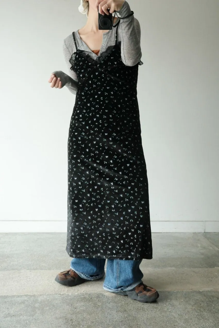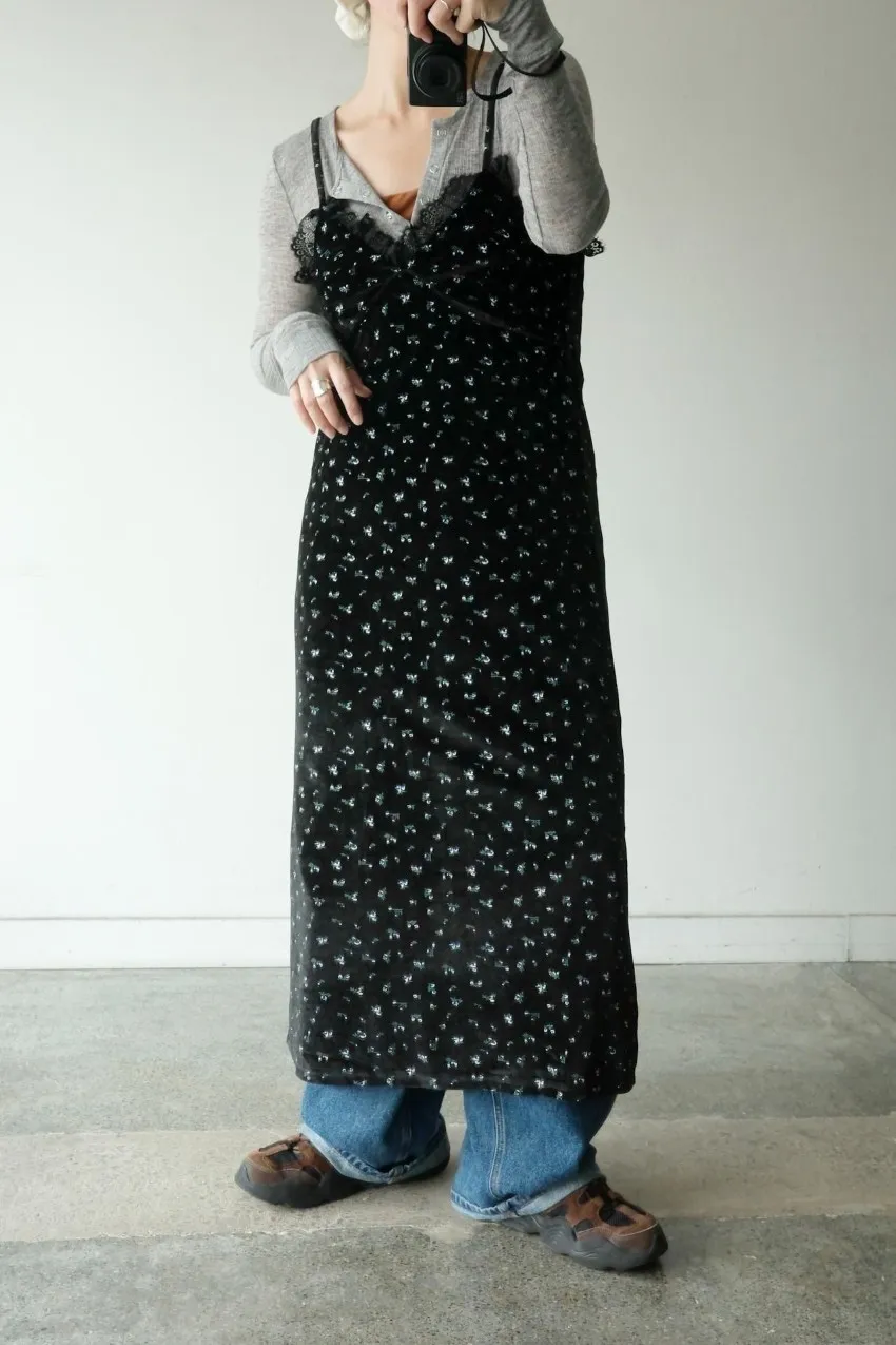 小花圖案與蕾絲荷葉滾邊點綴的天鵝絨細肩帶洋裝胸口疊加細緻蕾絲,直版修身剪裁修飾背面加入金屬細節釦環美背造型垂墜感柔順的天鵝絨面料搭配後開衩設計 具備柔滑光澤與適度彈性穿著時舒適貼合 低調奢華的質感外搭針織開襟衫可以內搭薄款高領或襯衫貼心分3個尺寸 可以依造身高選擇長度尺寸預約限定折扣咖啡色跟黑色 預購 12月底到貨唷