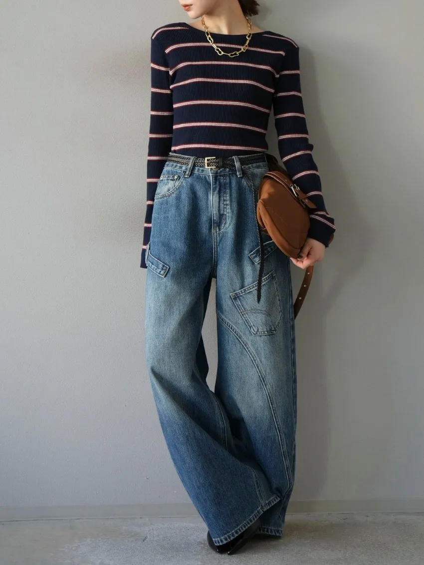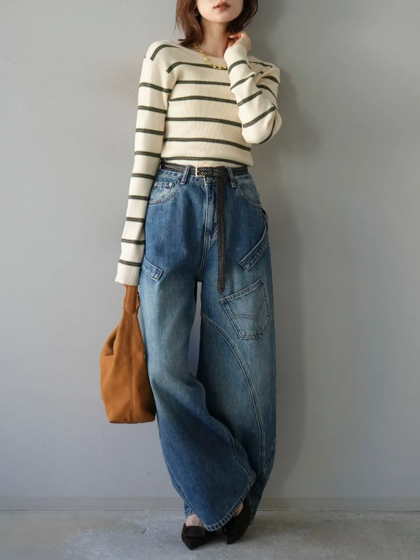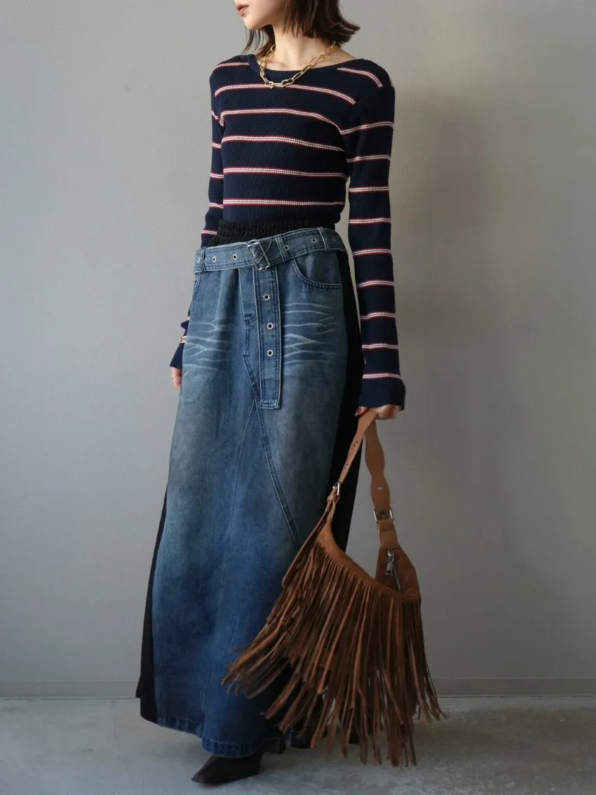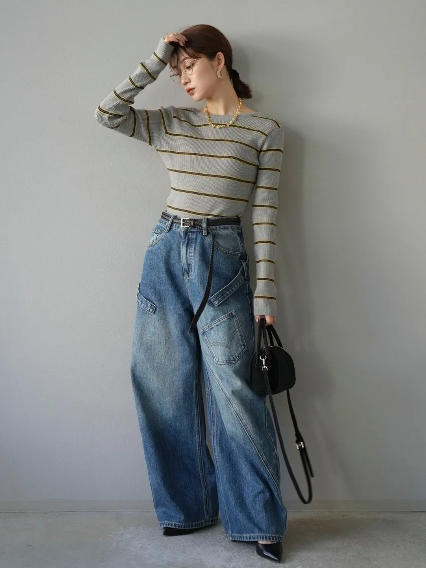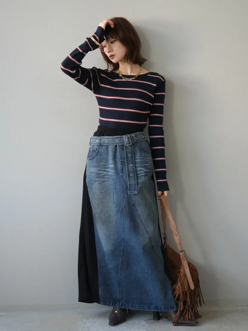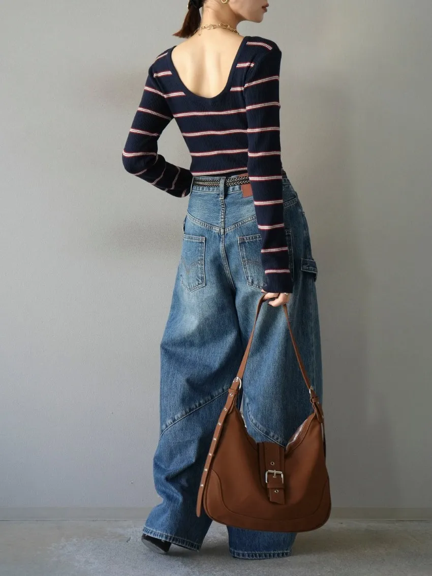 學院休閒感 復古氛圍的多色色彩條紋圖案服貼合身超舒服彈性羅紋針織上衣弧形開口美背造型設計也可以前後2WAY貼合身形的剪裁適度露膚設計不需另外配飾也能自然呈現精緻感袖長加長延伸條文的配色也很好看4色
