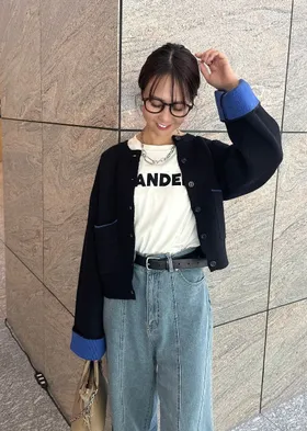袖口與口袋邊緣的配色細節增添了俏皮感