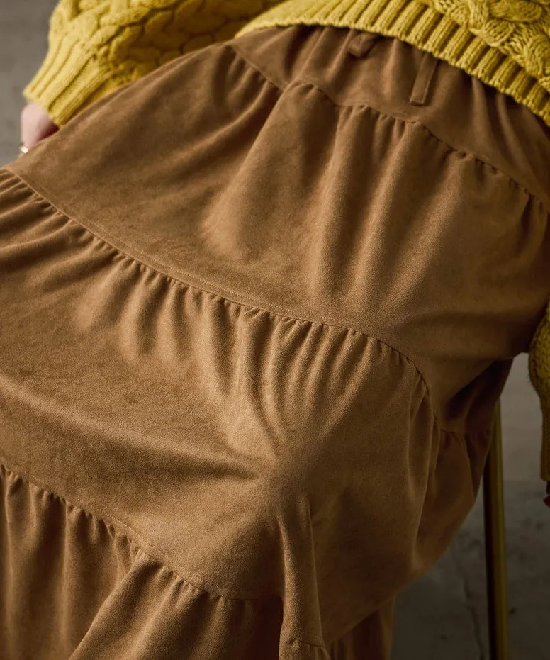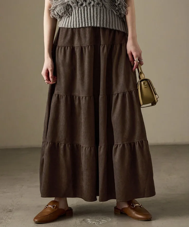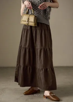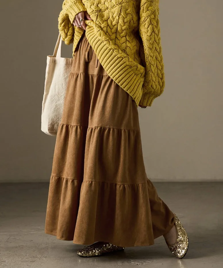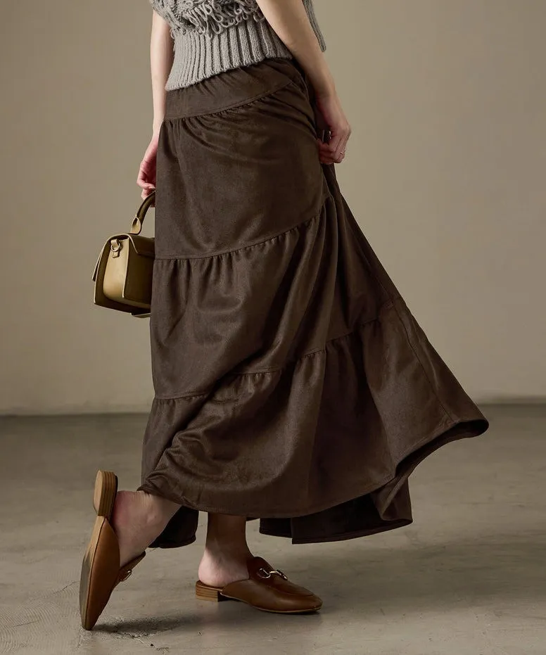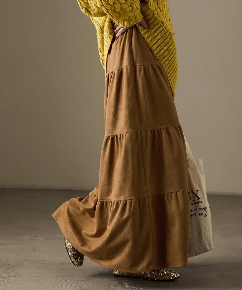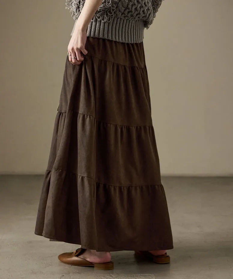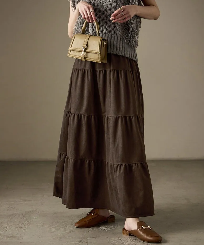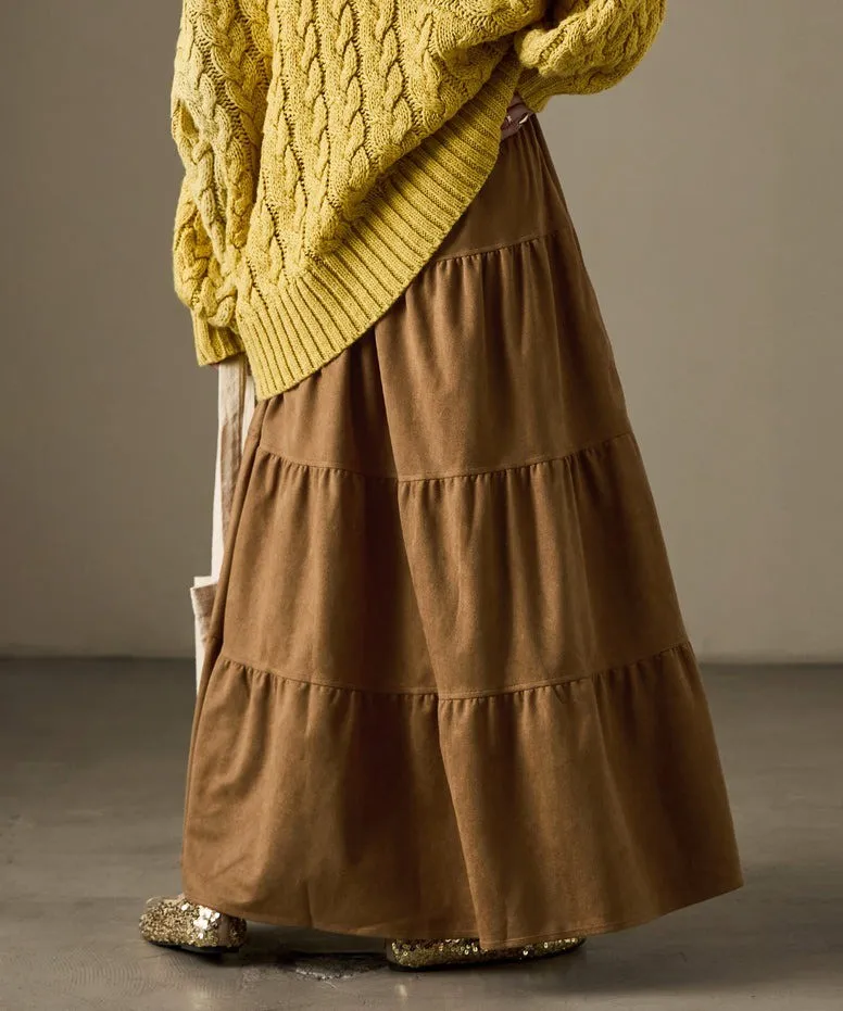 秋冬大人氣~軟料麂絨綁帶層層拼接蛋糕長裙