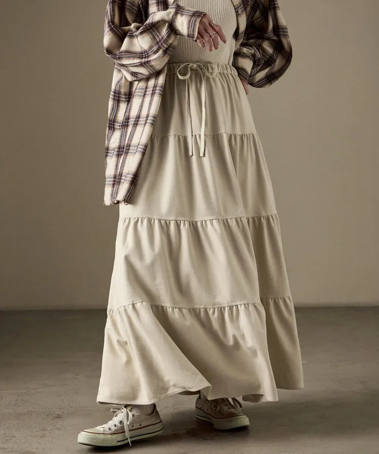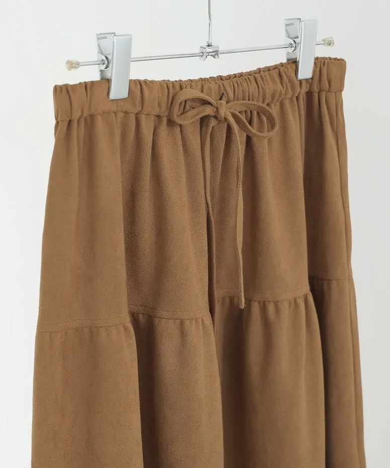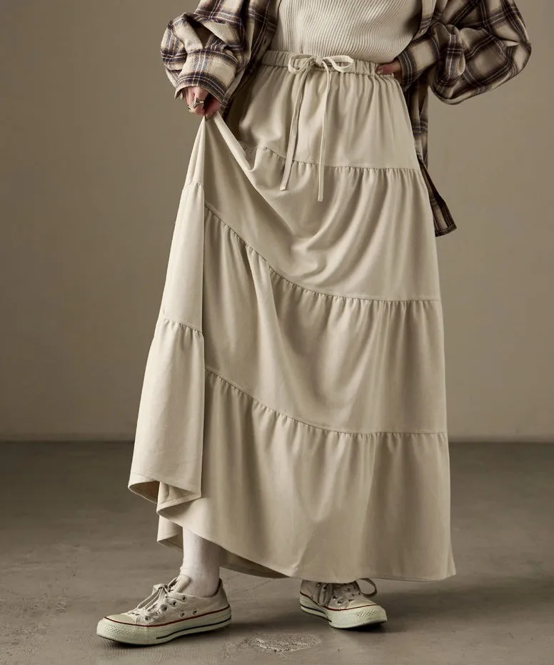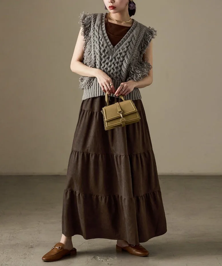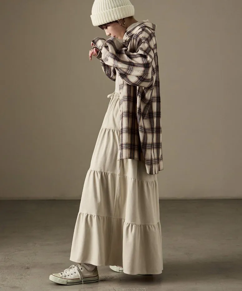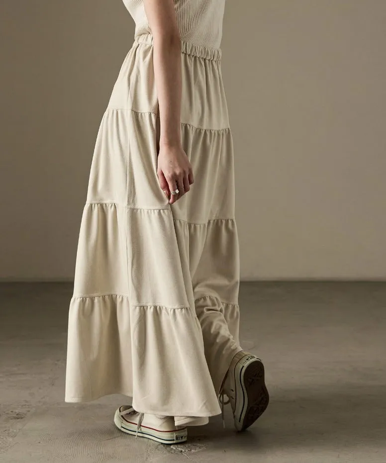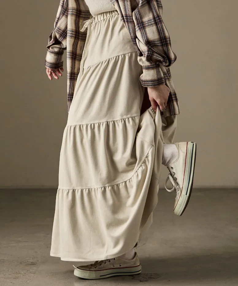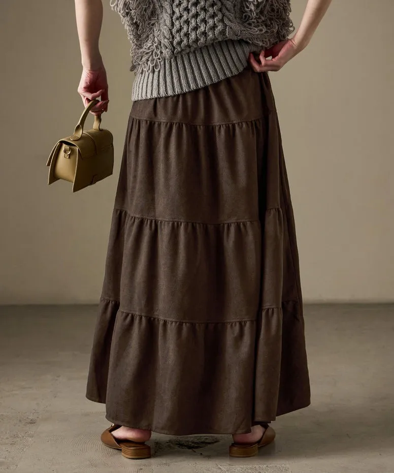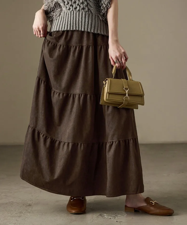 秋冬大人氣~軟料麂絨綁帶層層拼接蛋糕長裙