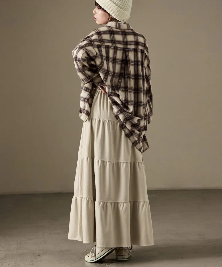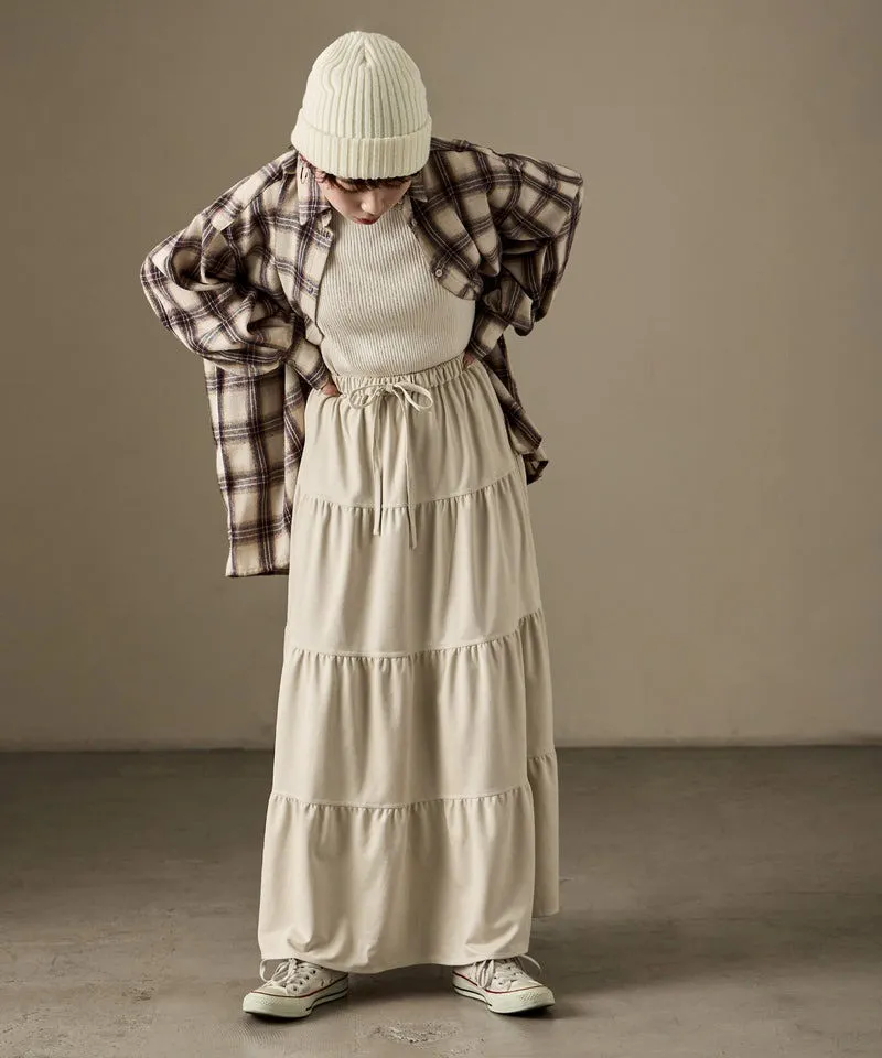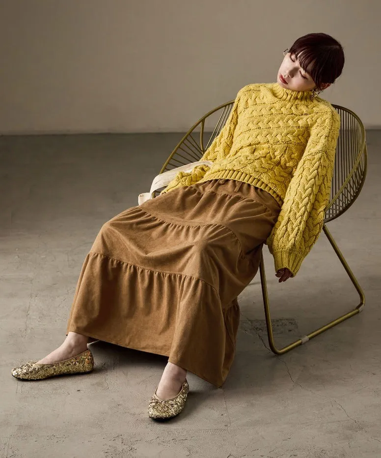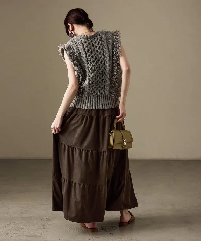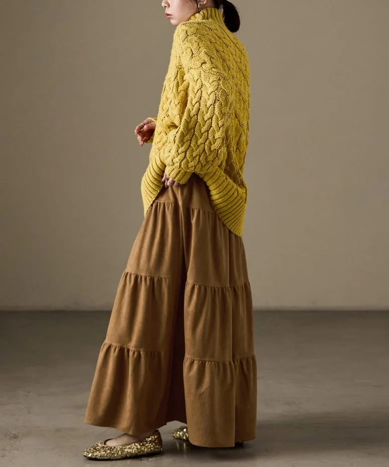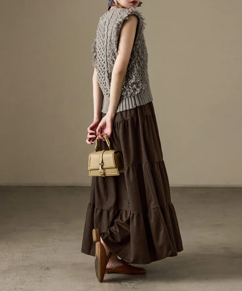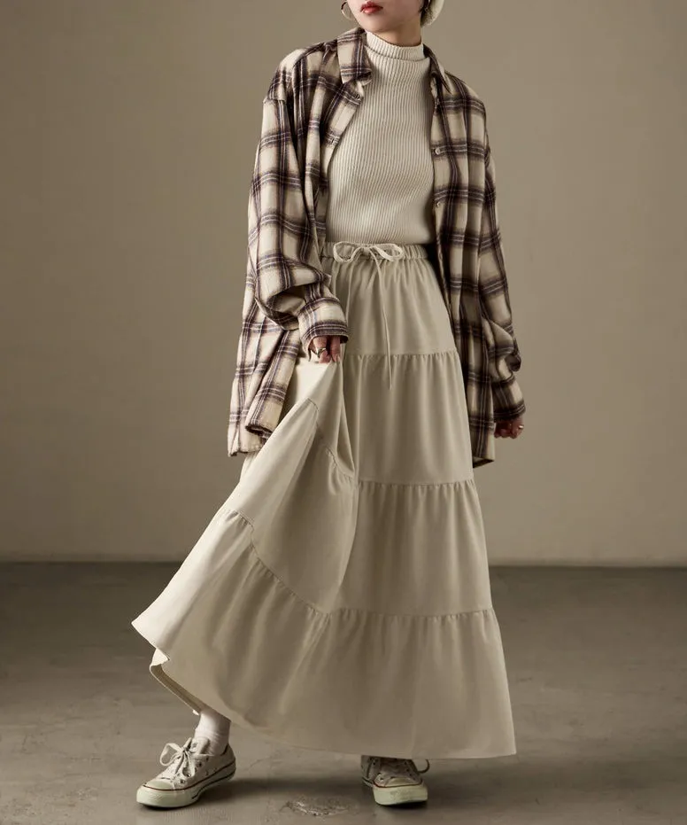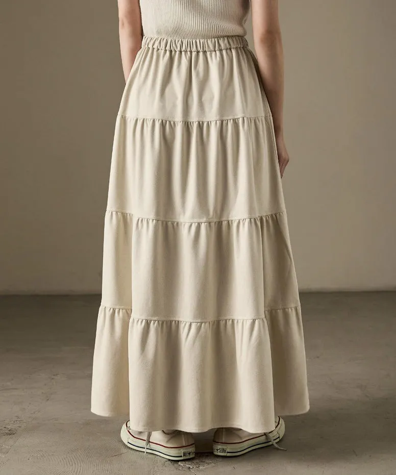 秋冬大人氣~軟料麂絨綁帶層層拼接蛋糕長裙