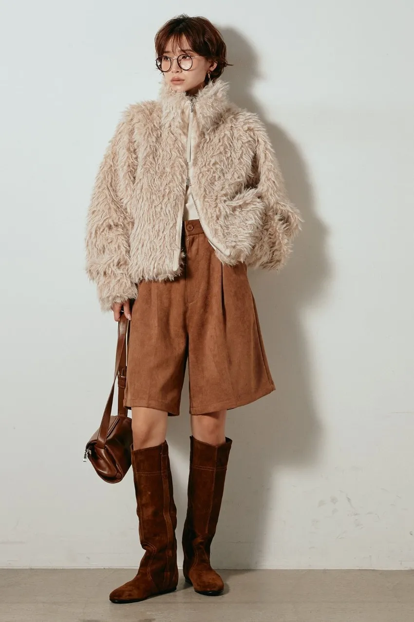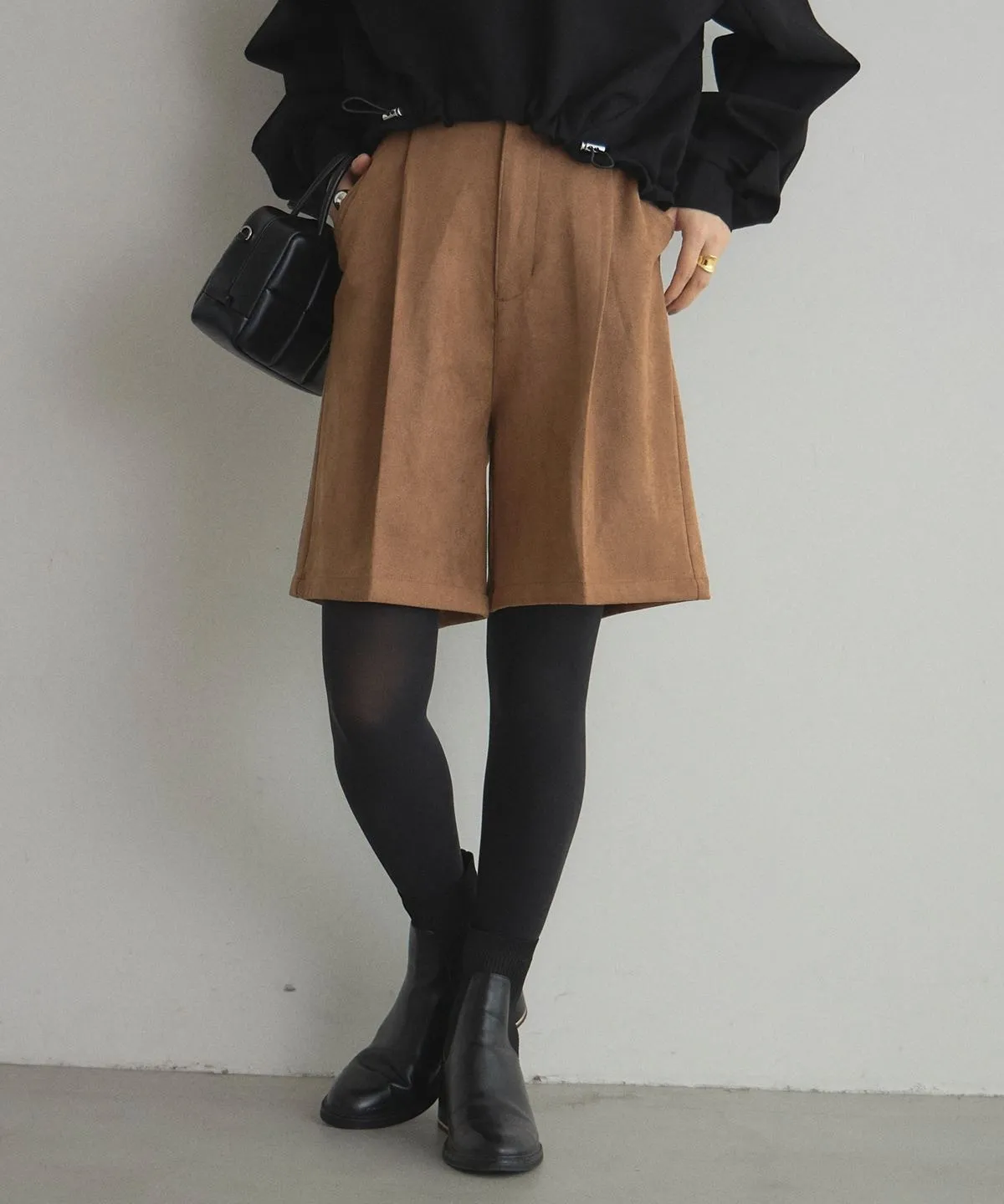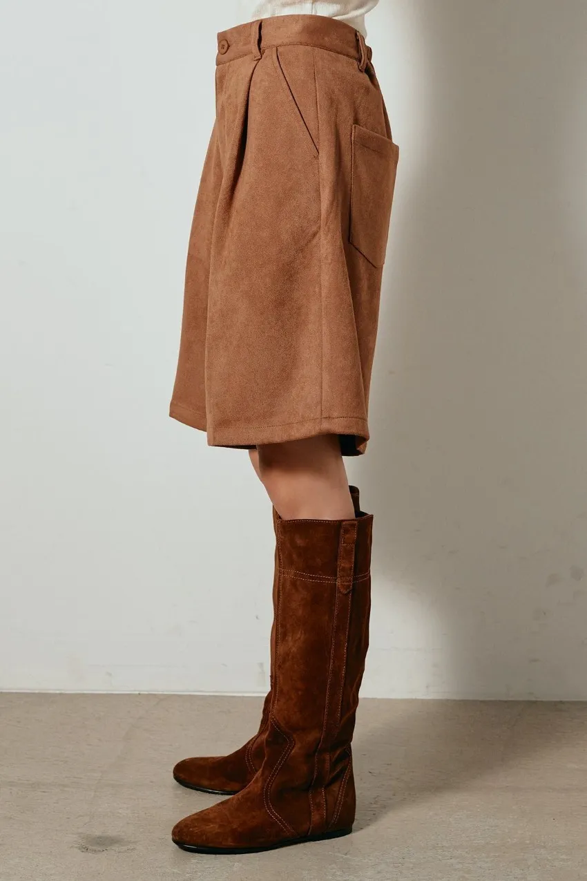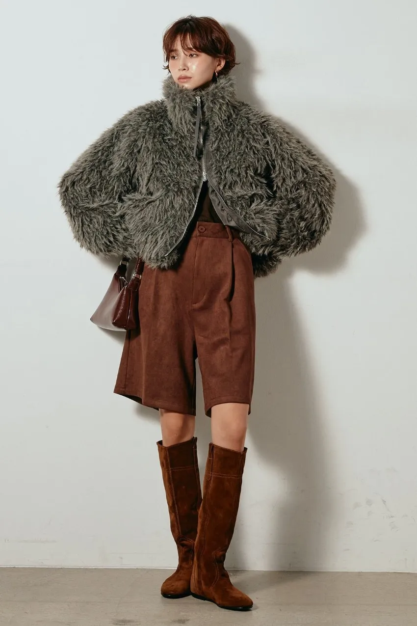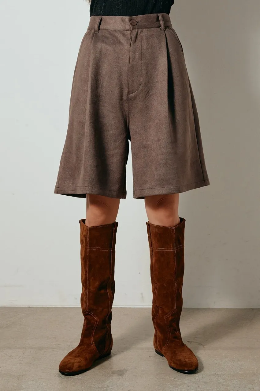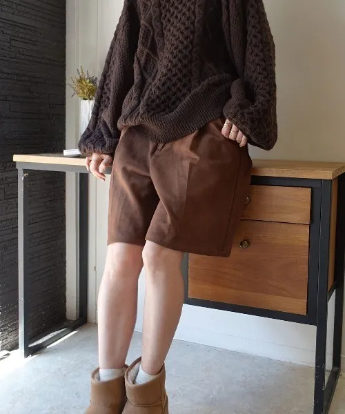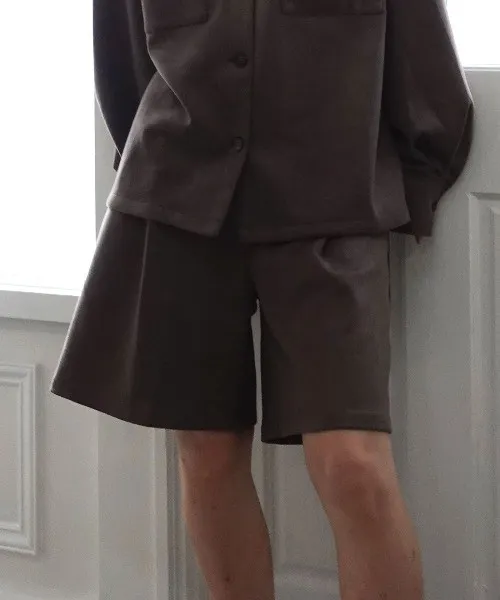 專櫃大熱門麂皮感修身短褲<可搭配成套>