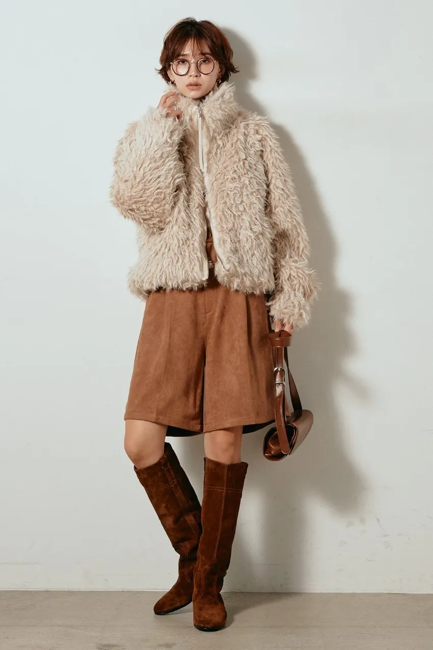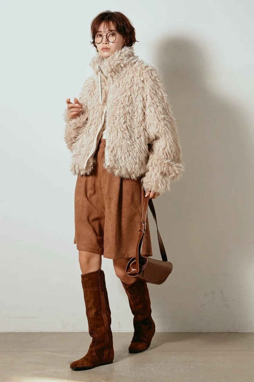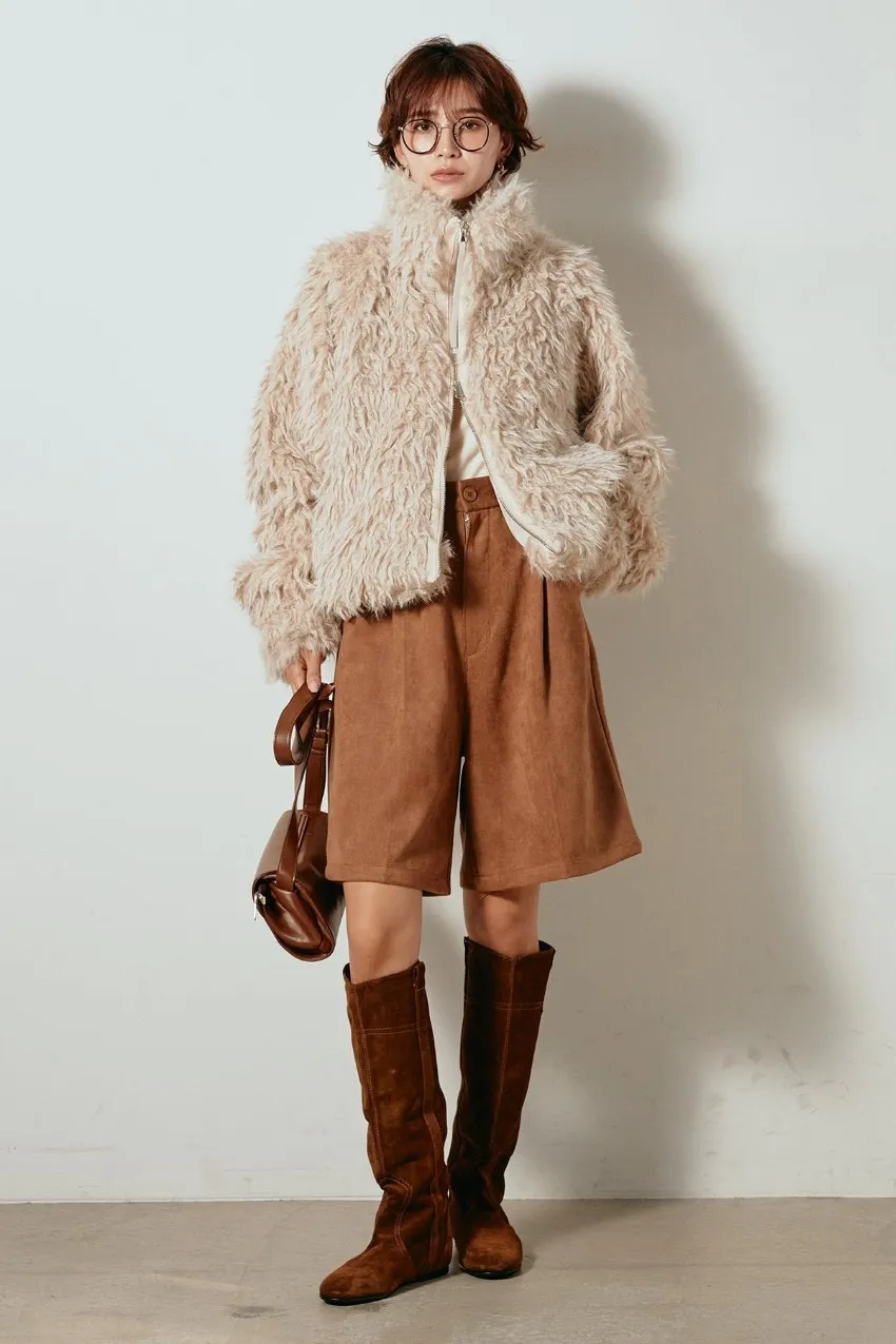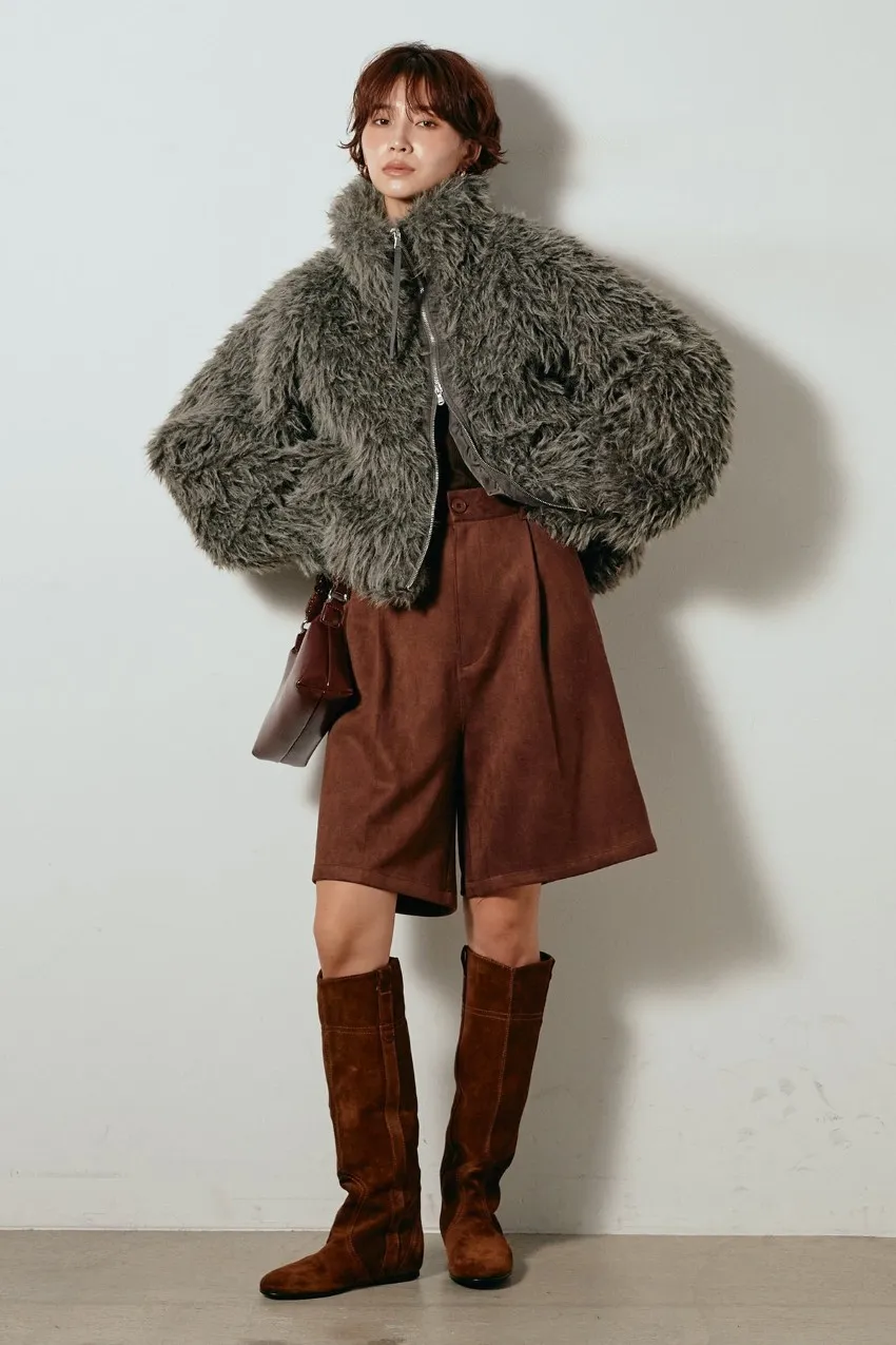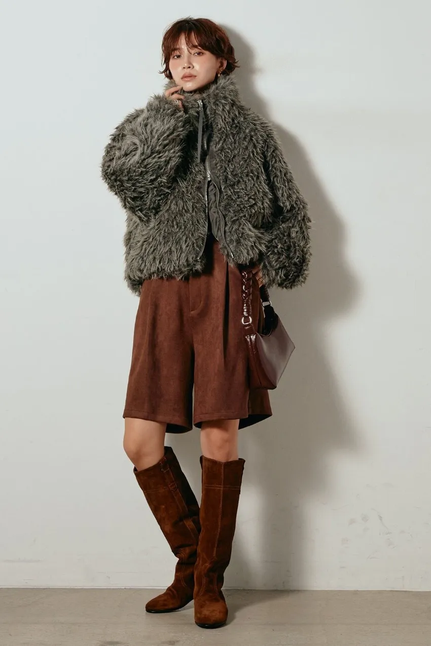 專櫃大熱門麂皮感修身短褲<可搭配成套>