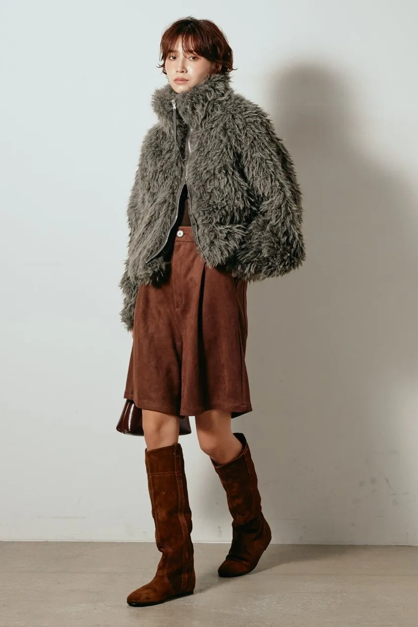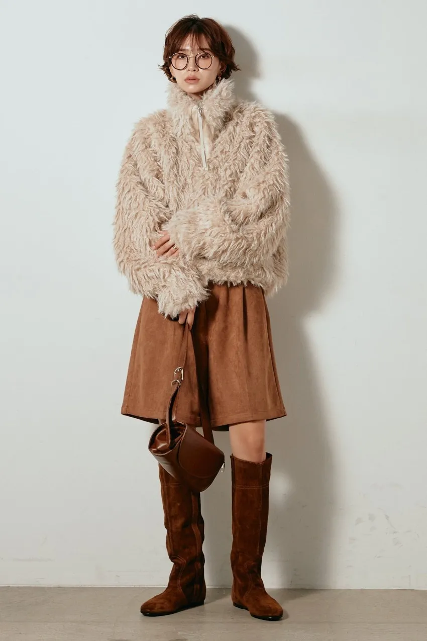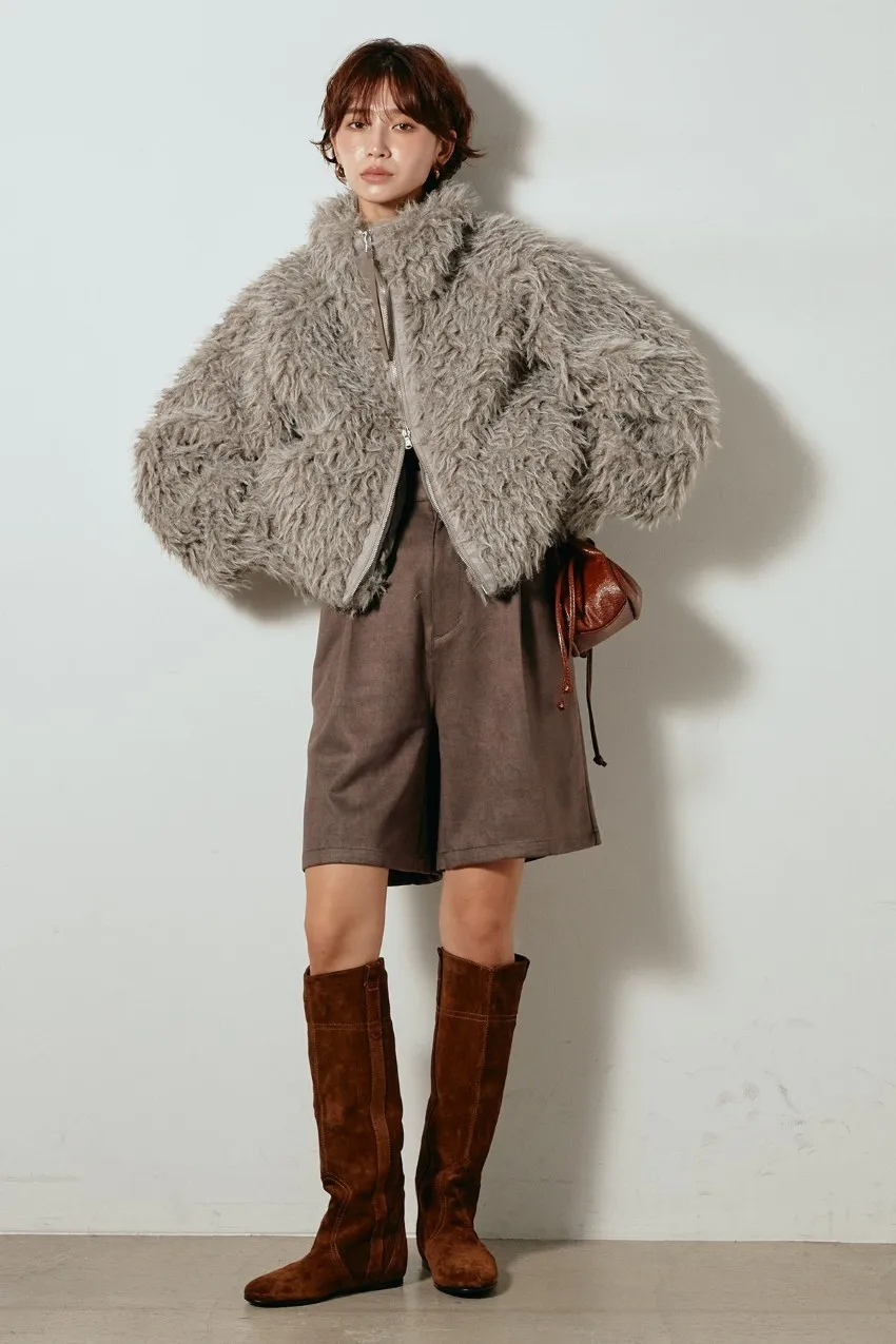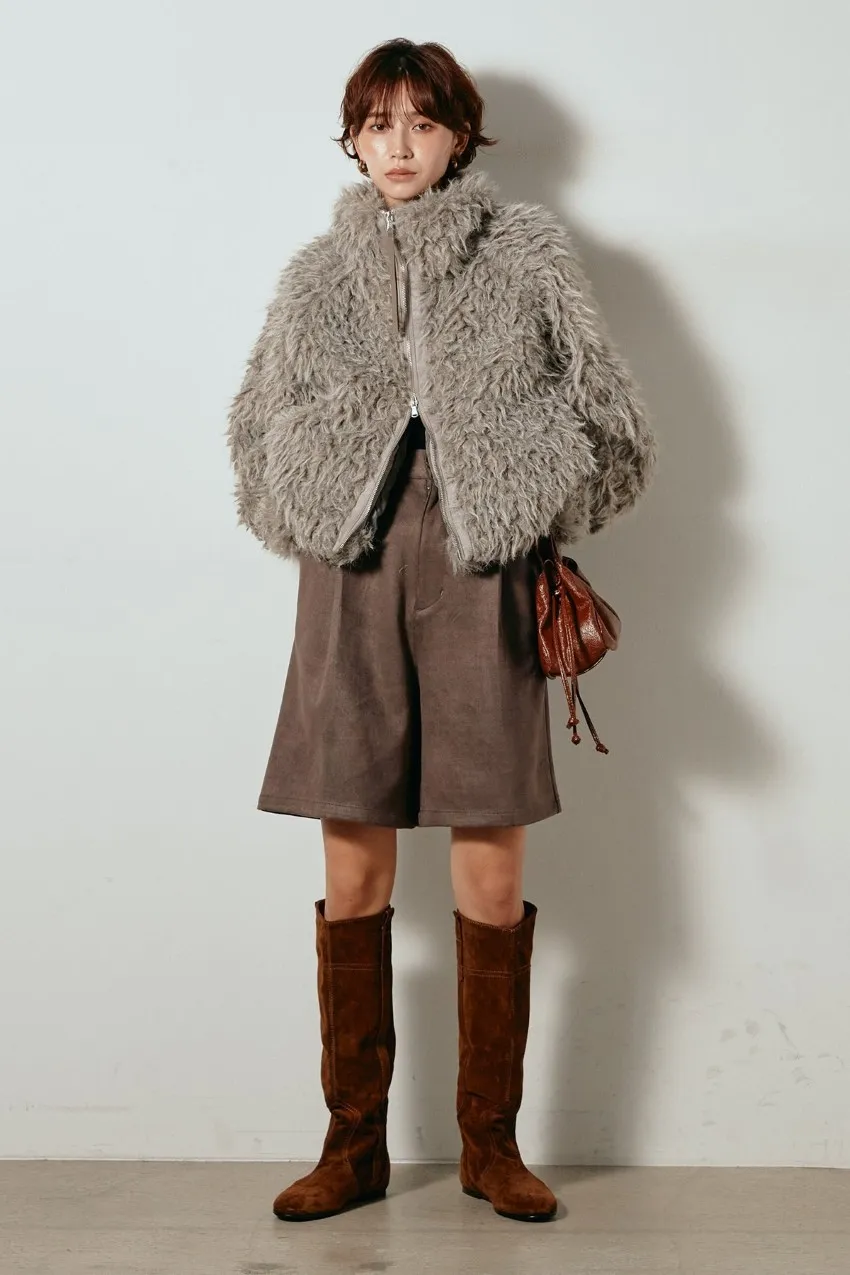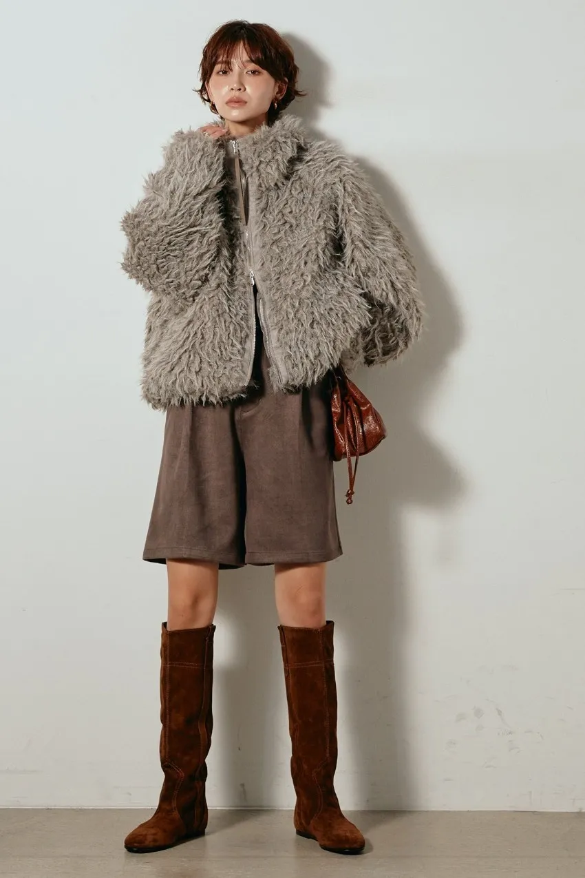 專櫃大熱門麂皮感修身短褲<可搭配成套>