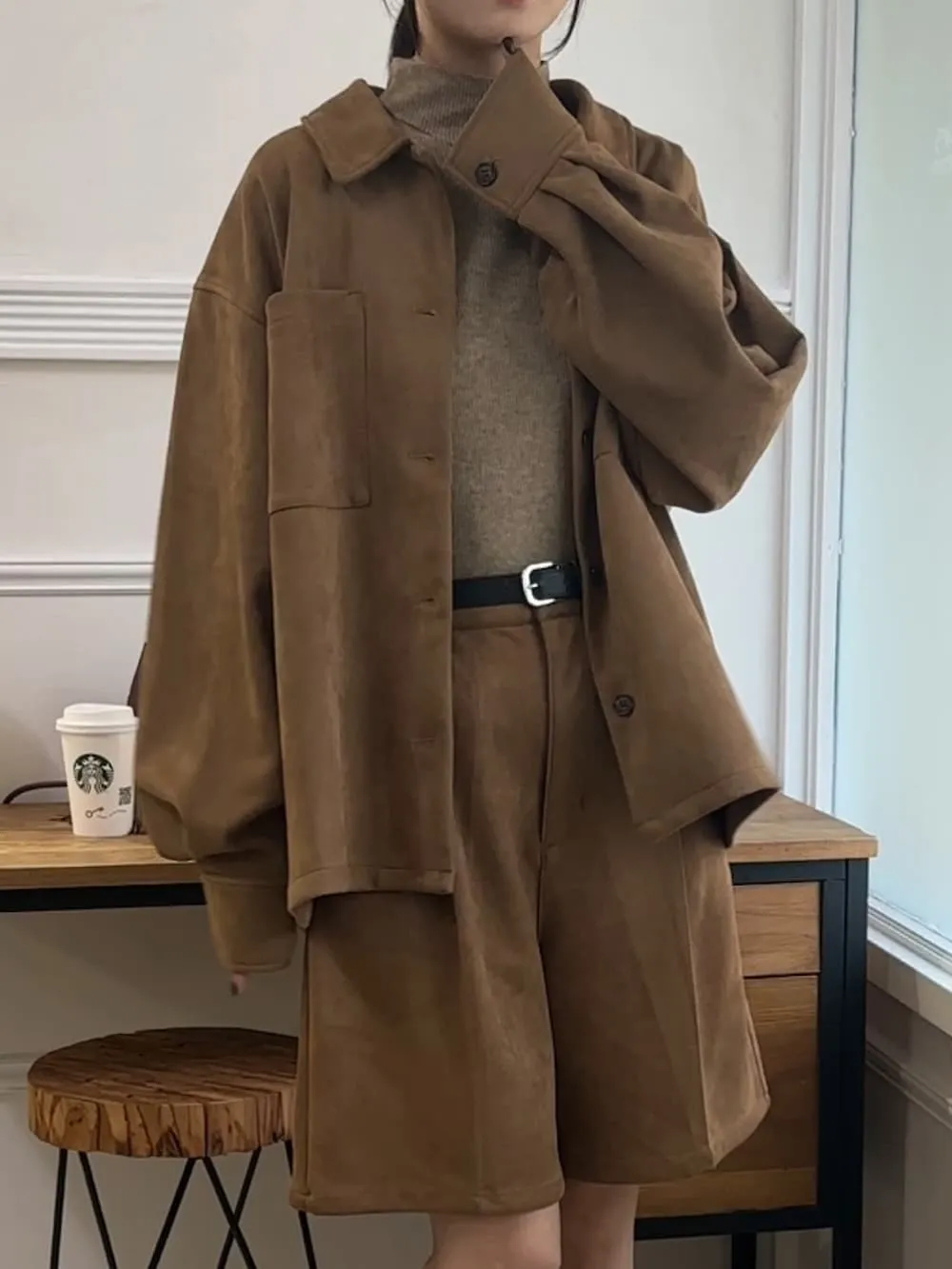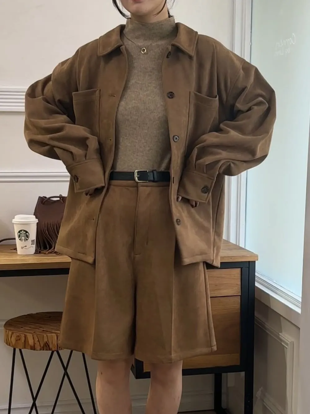 請先預約!!看說明-專櫃大熱門厚實麂皮感襯衫<可搭配成套>