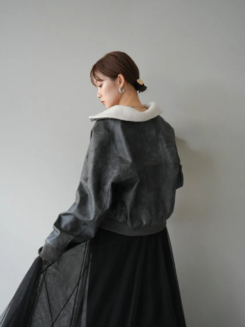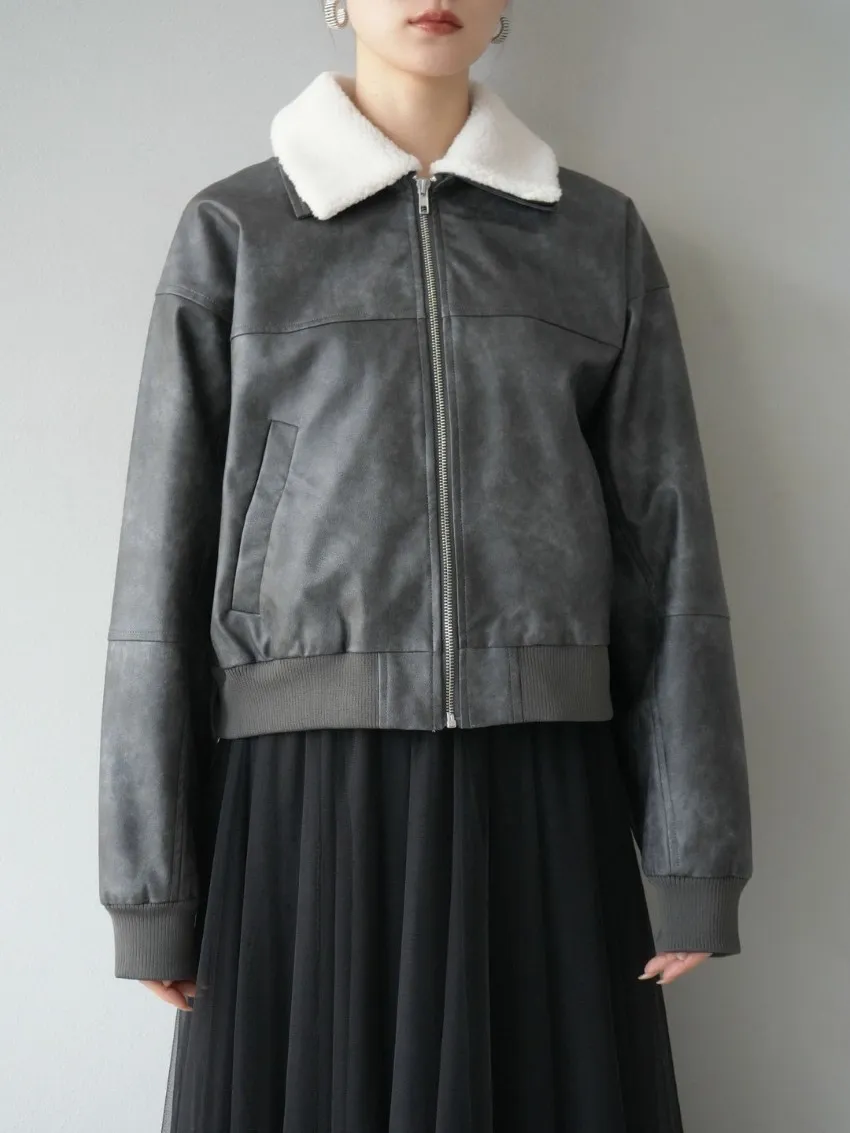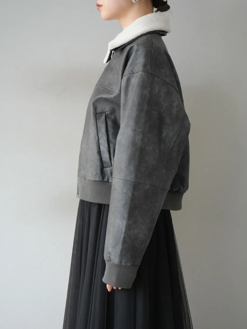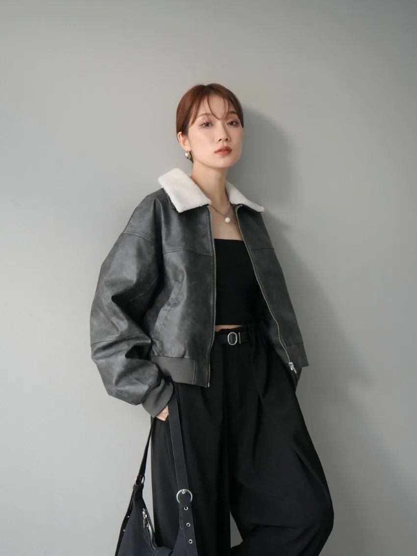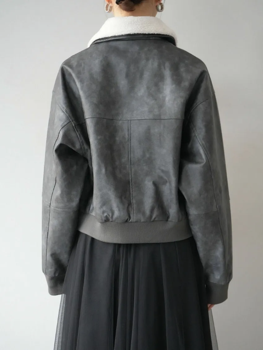 可拆小羔羊毛領短版復古感帥氣皮革夾克