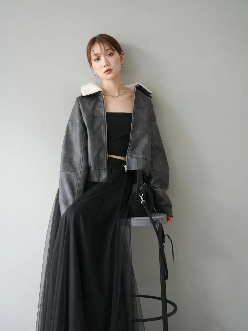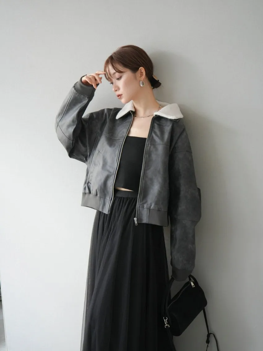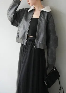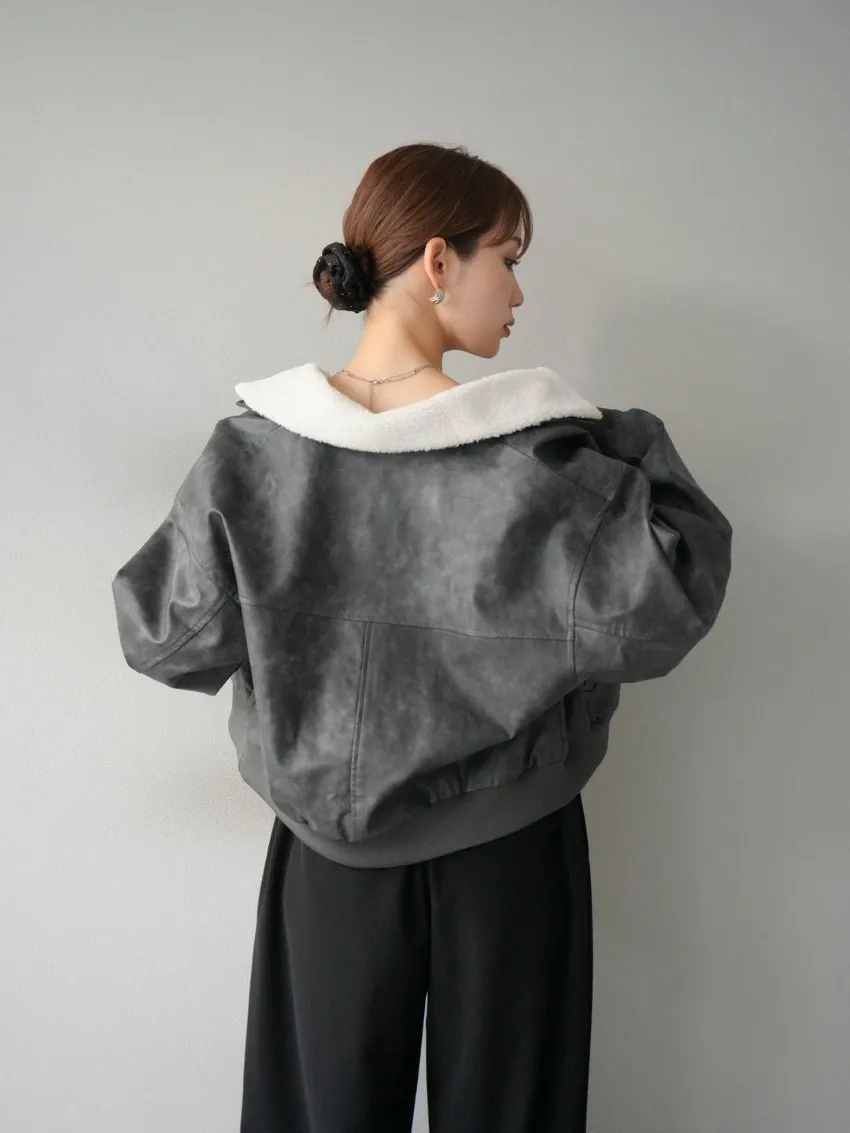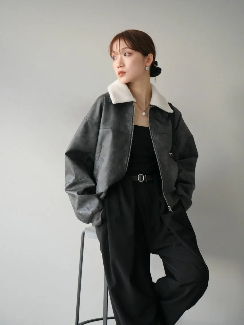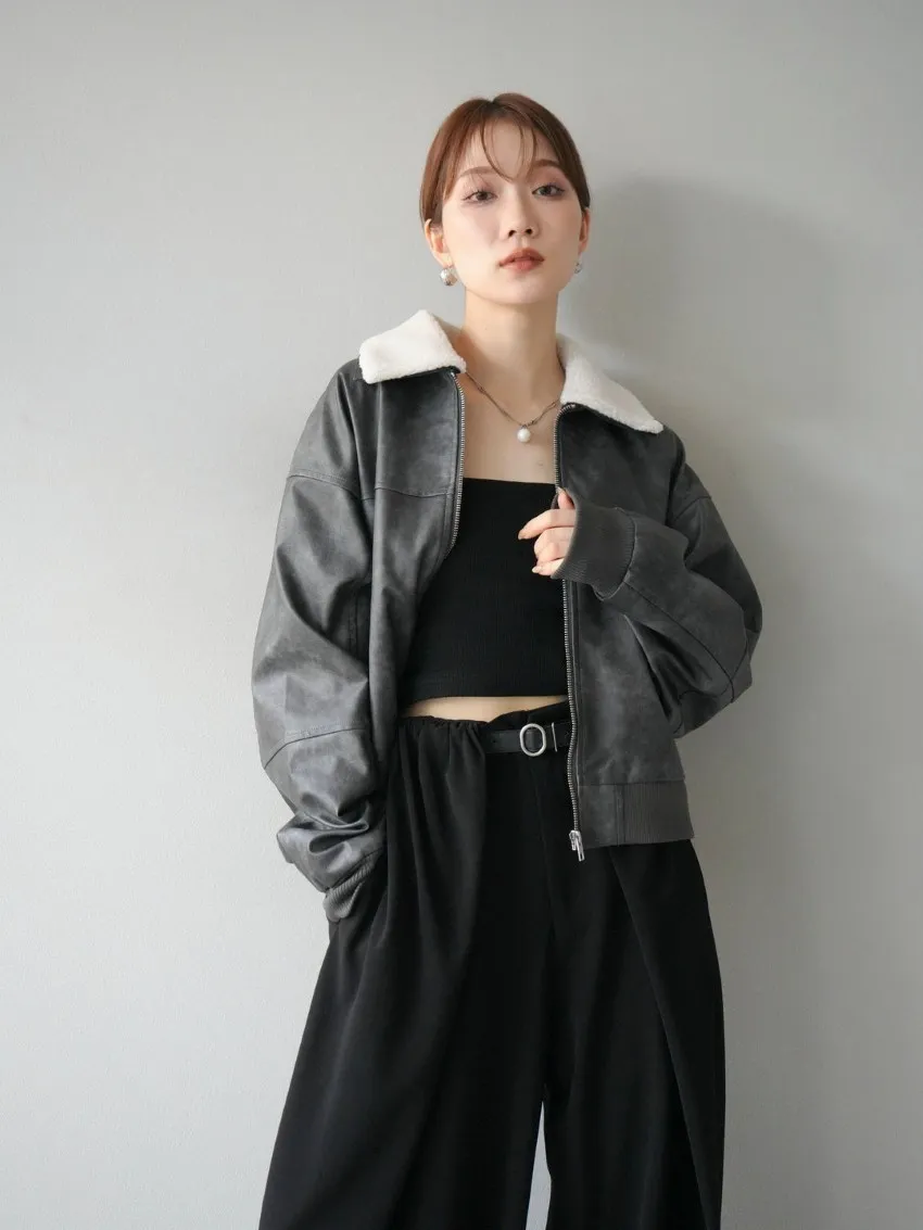可拆小羔羊毛領短版復古感帥氣皮革夾克