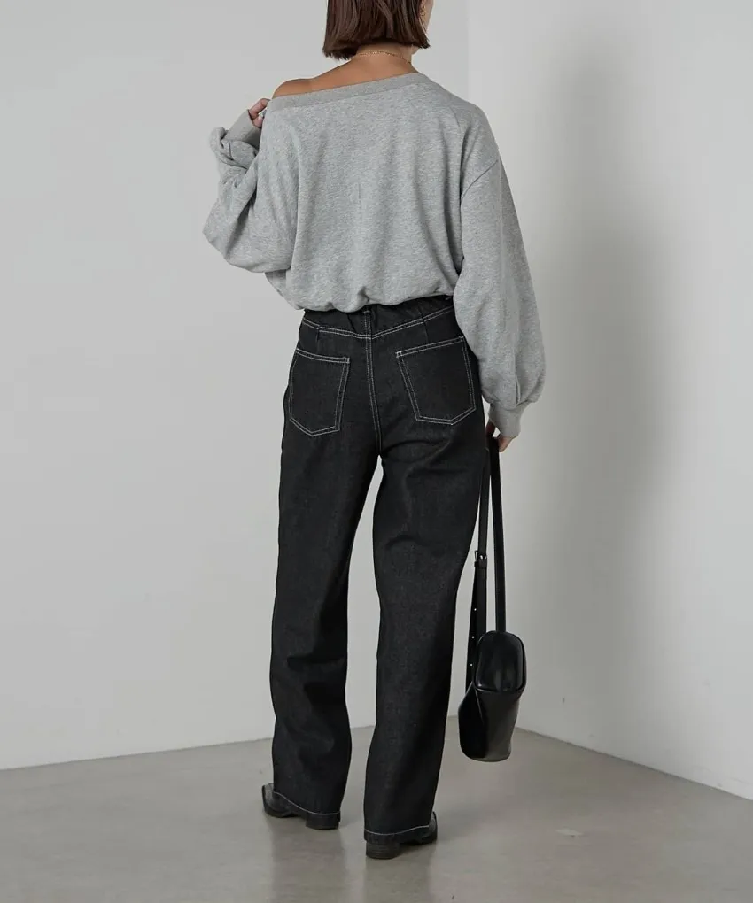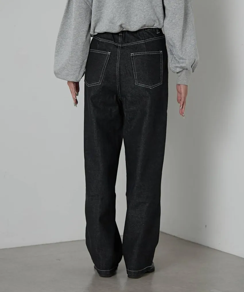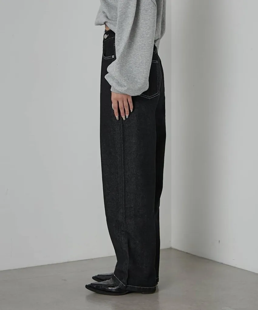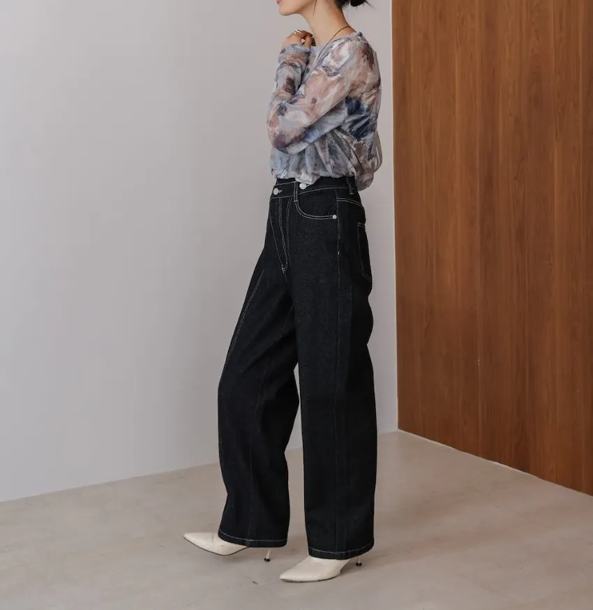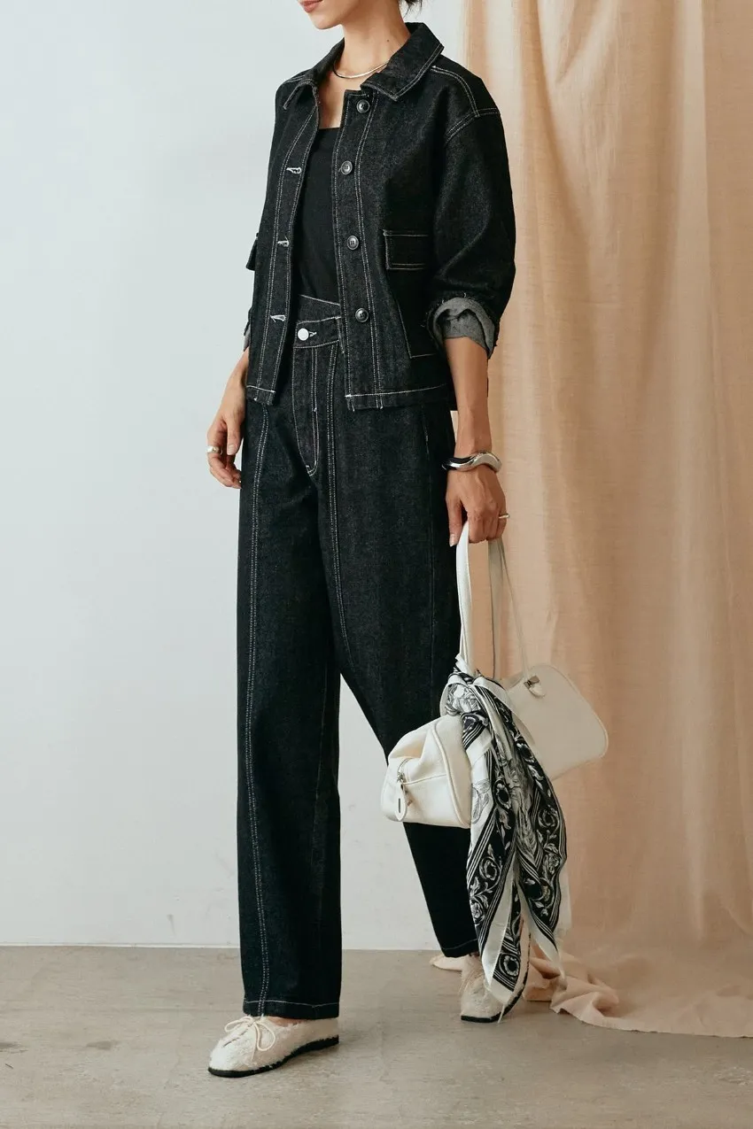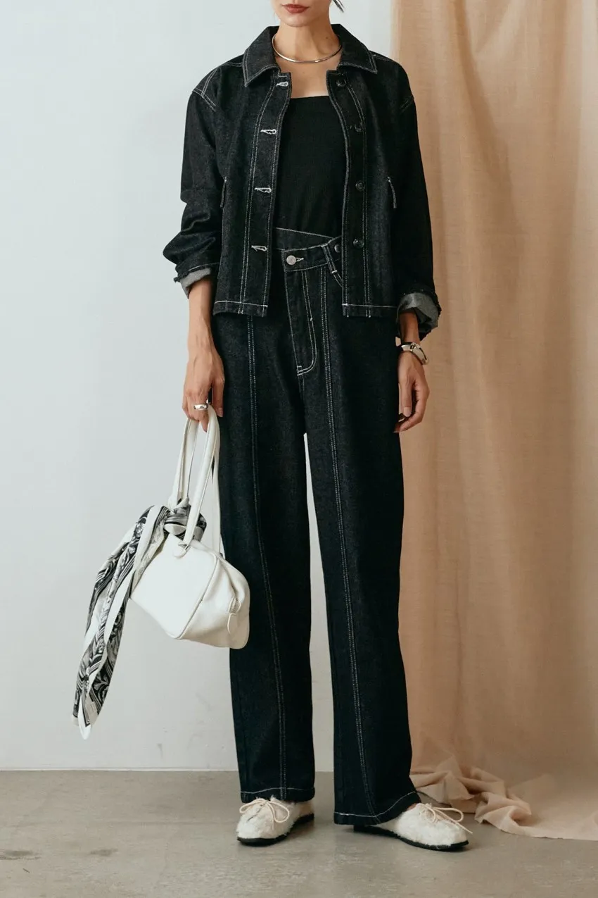 初秋折扣~變形斜剪裁車縫線美腳小直筒牛仔寬褲