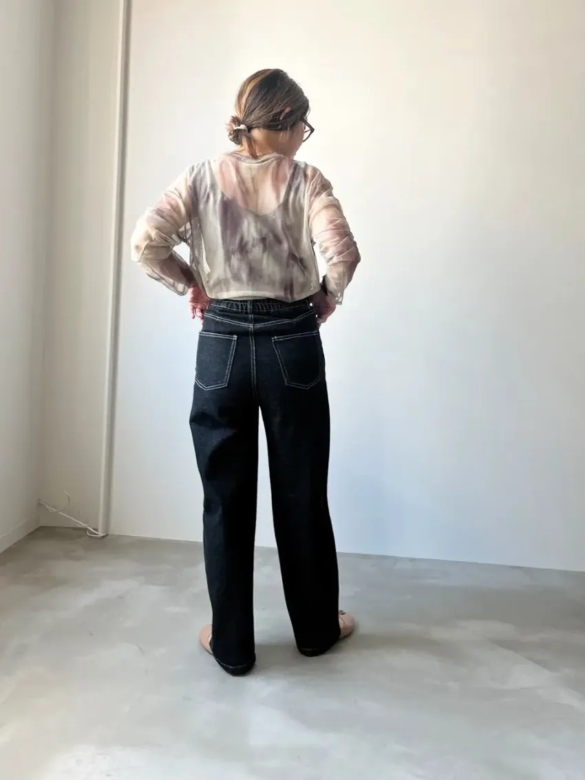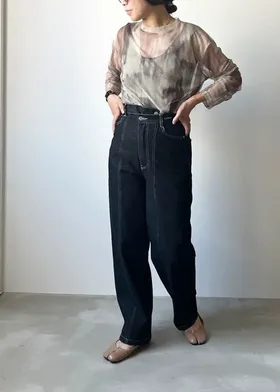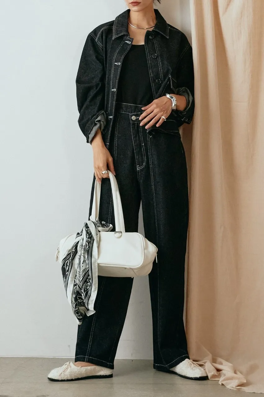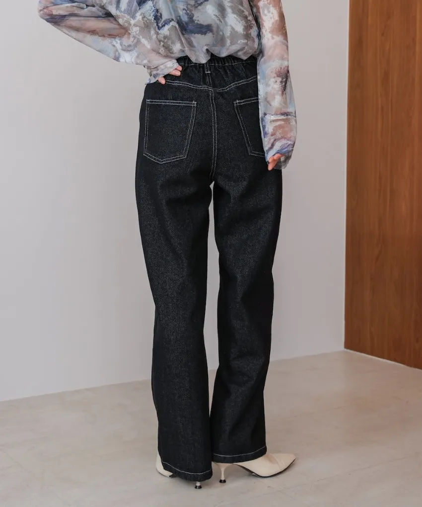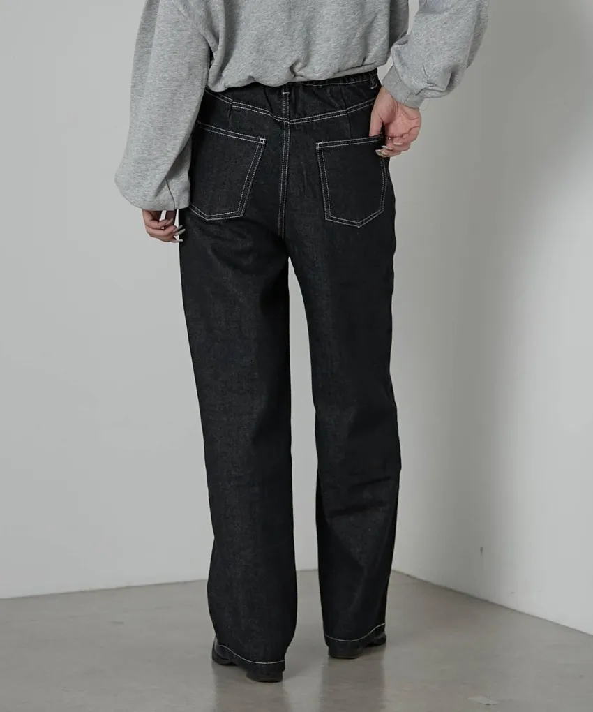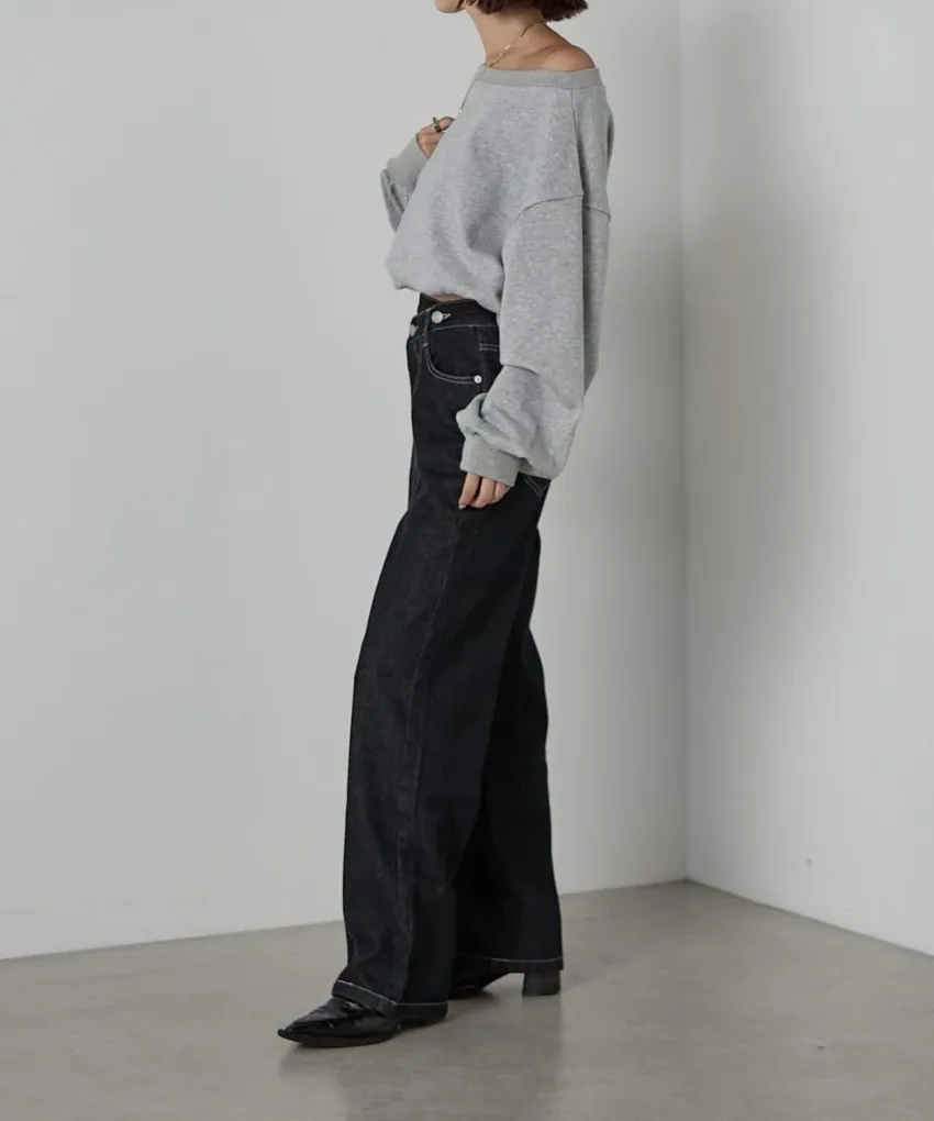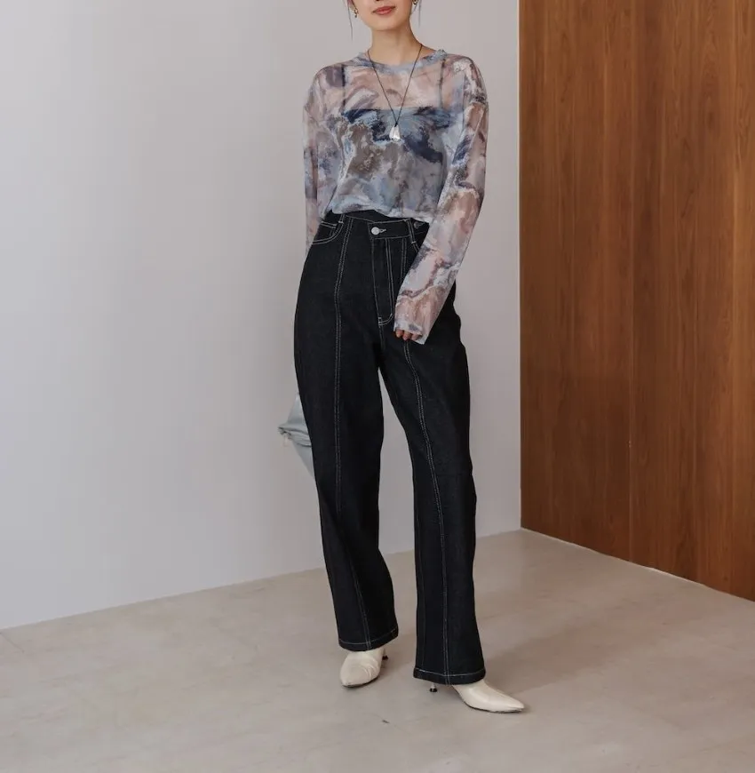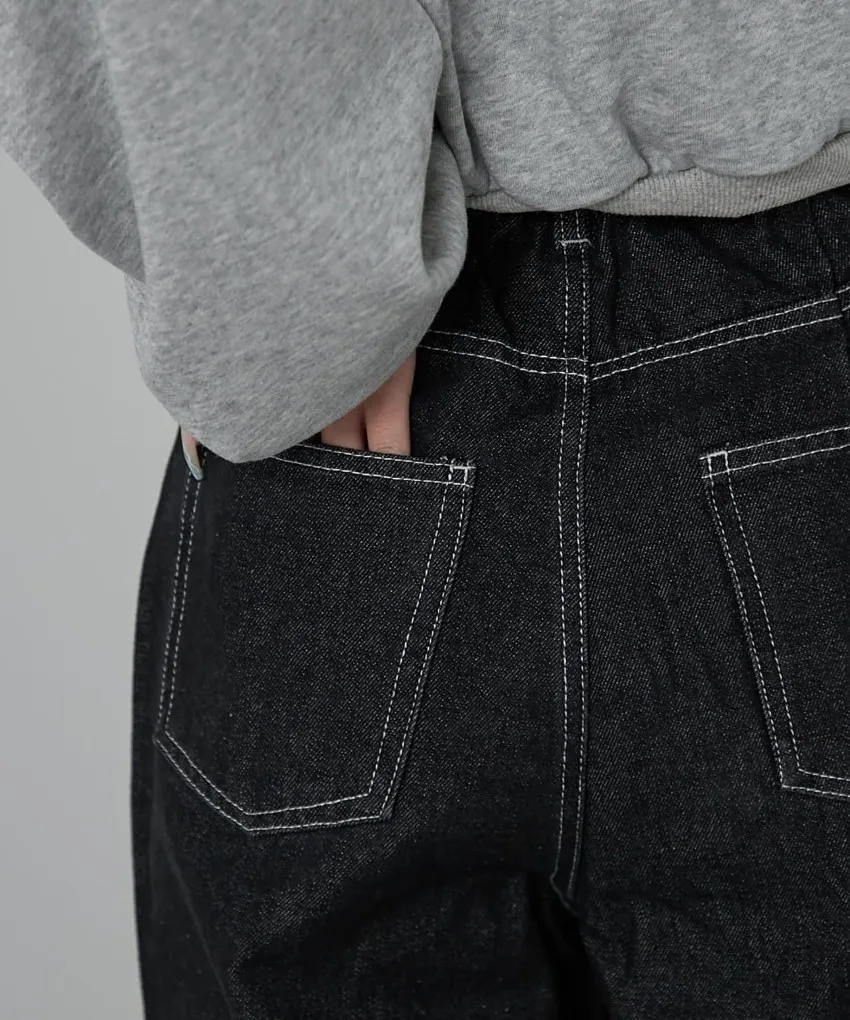 初秋折扣~變形斜剪裁車縫線美腳小直筒牛仔寬褲