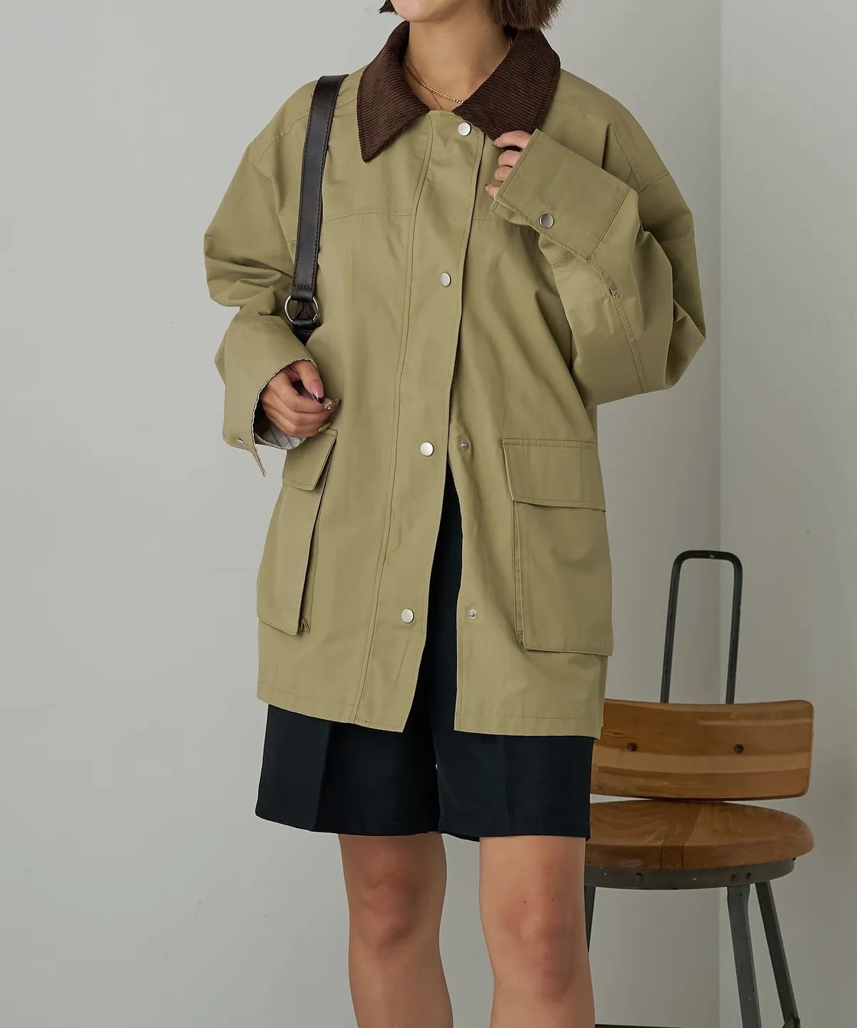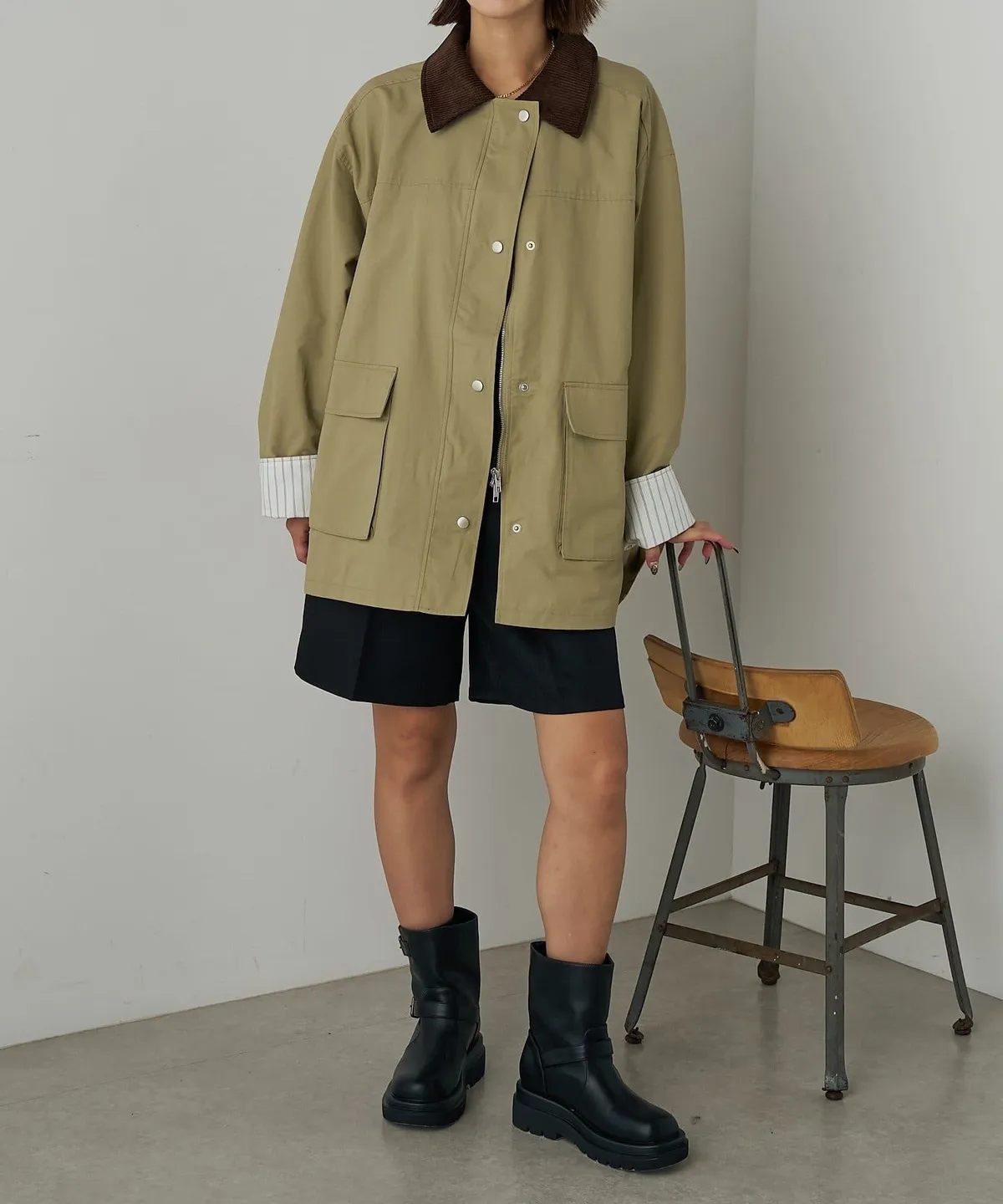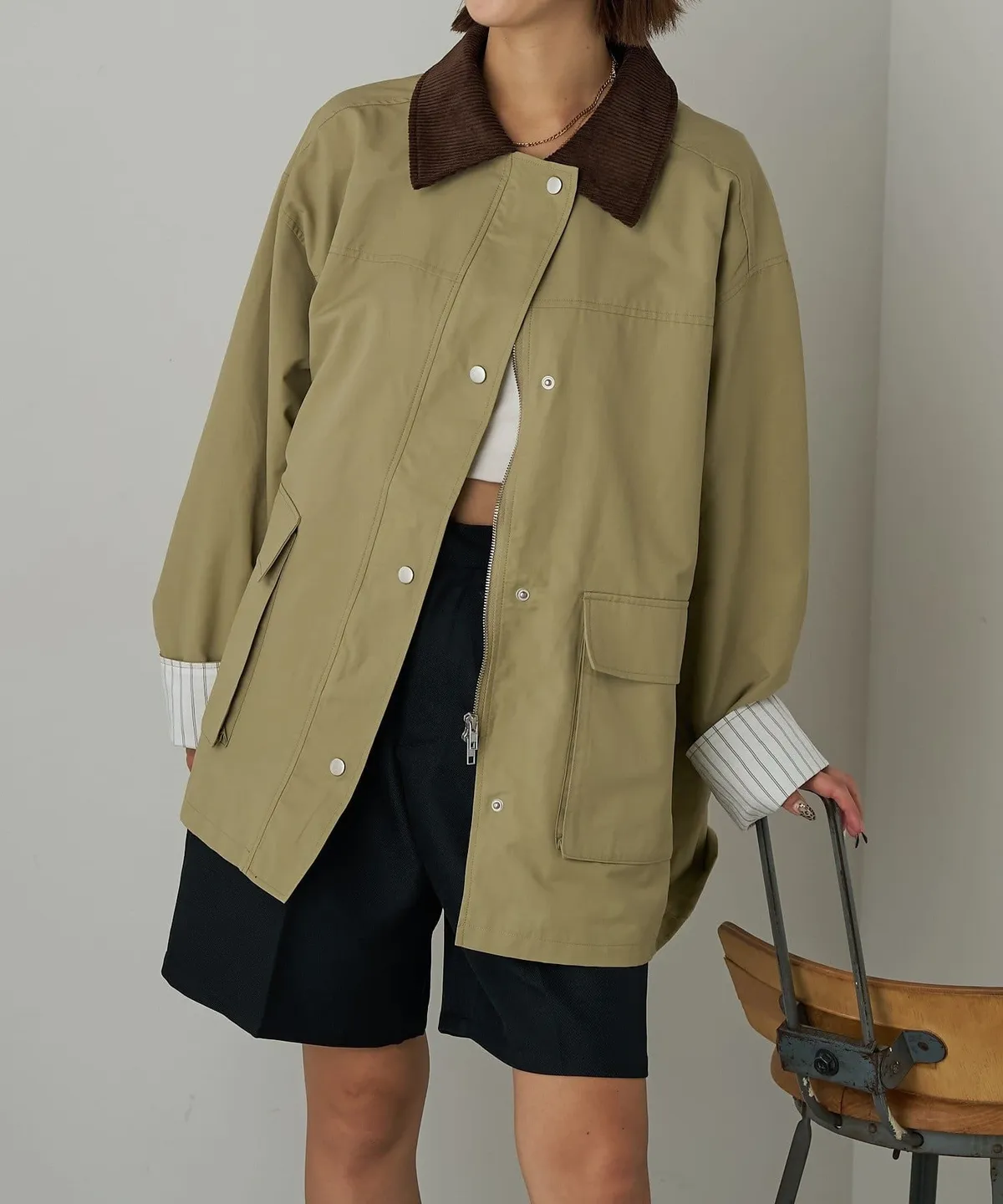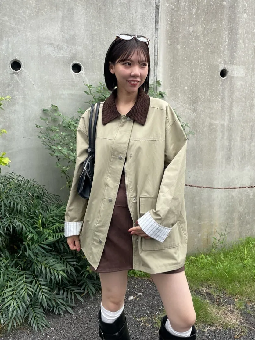 領子拼接季節感燈心絨材質