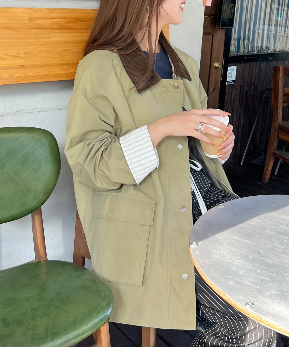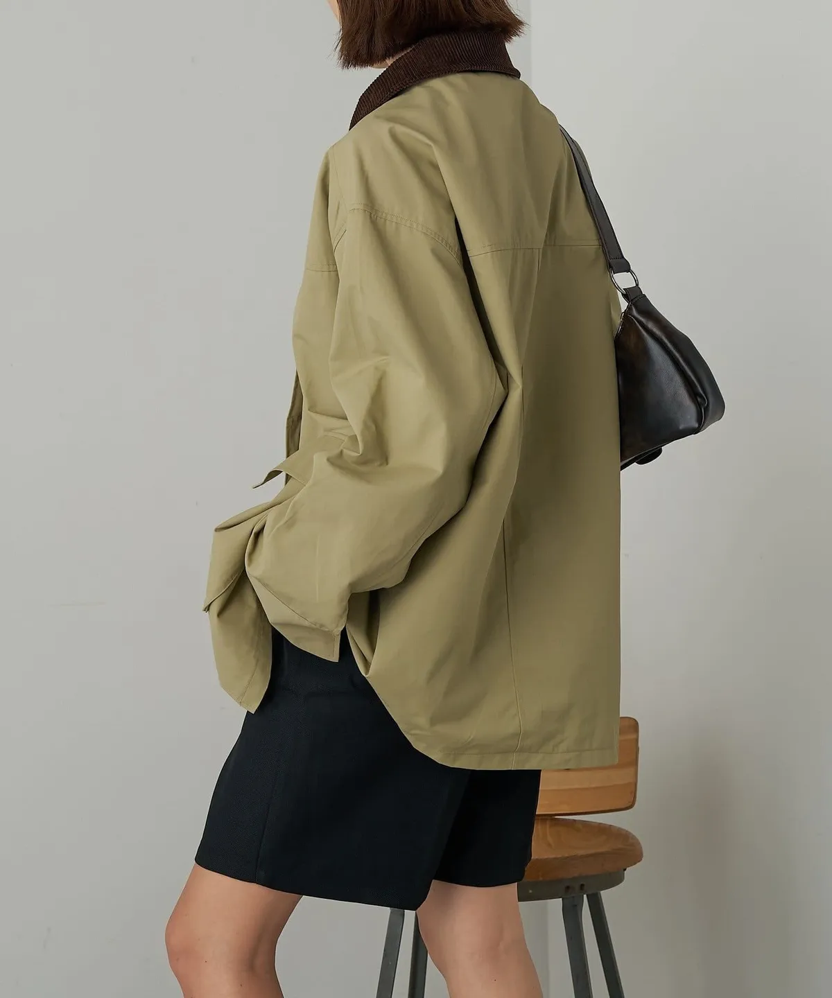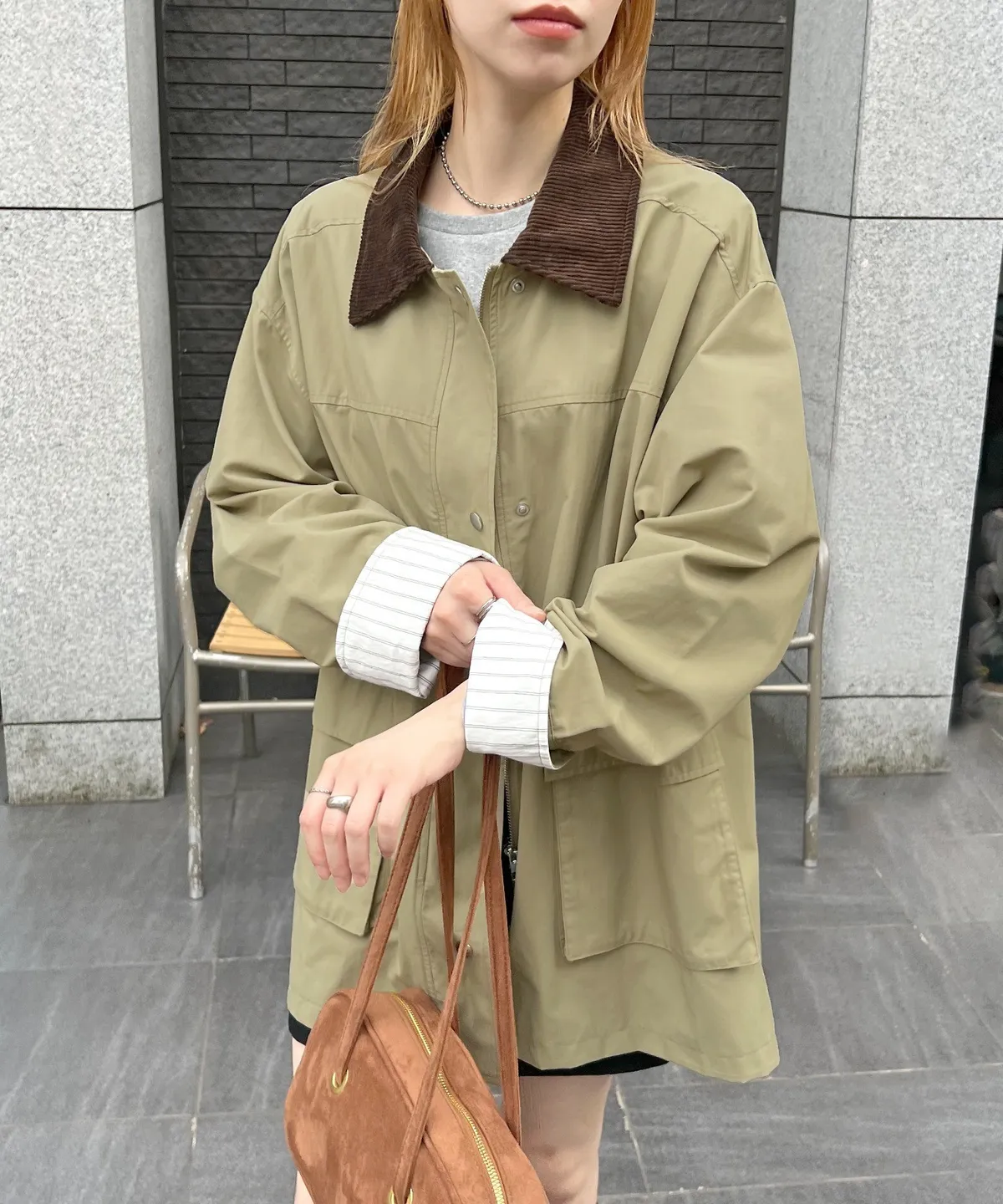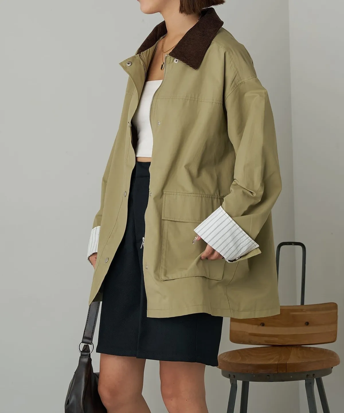 領子拼接季節感燈心絨材質