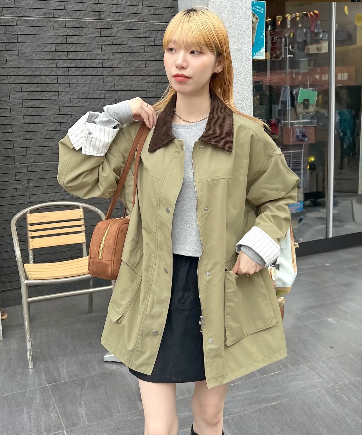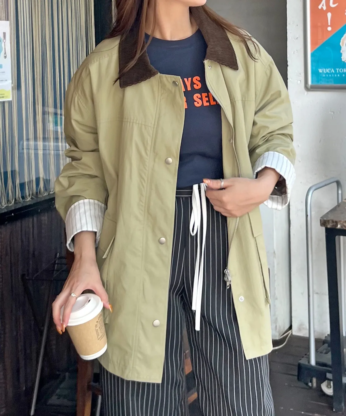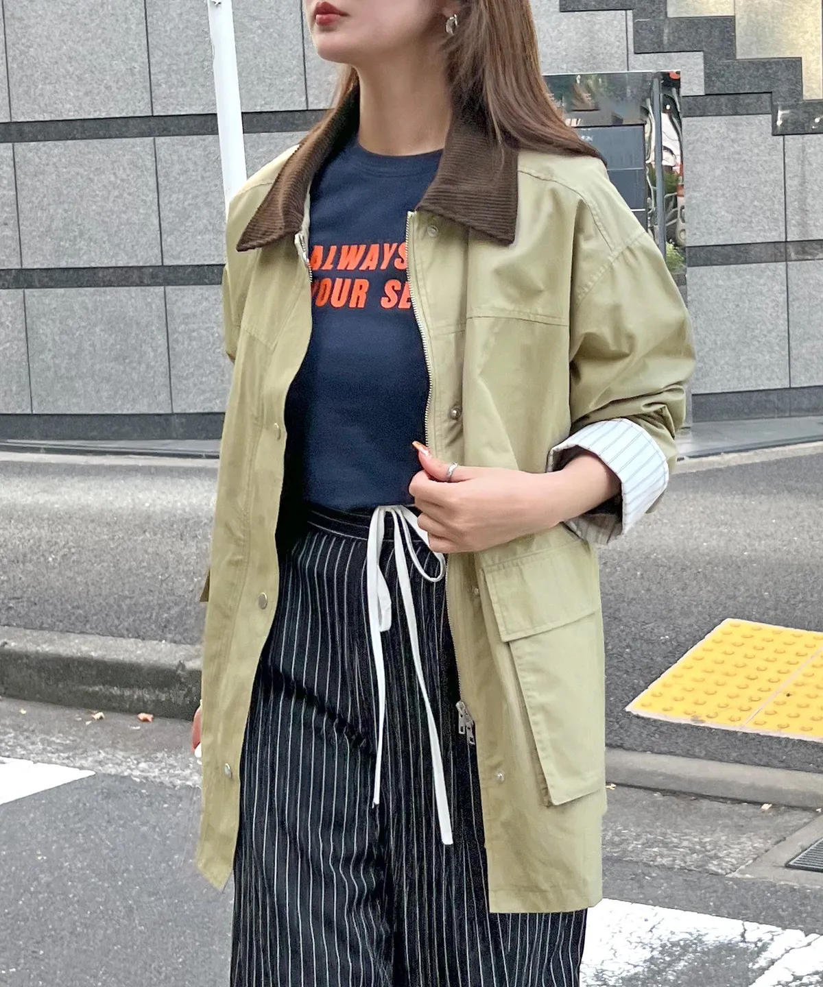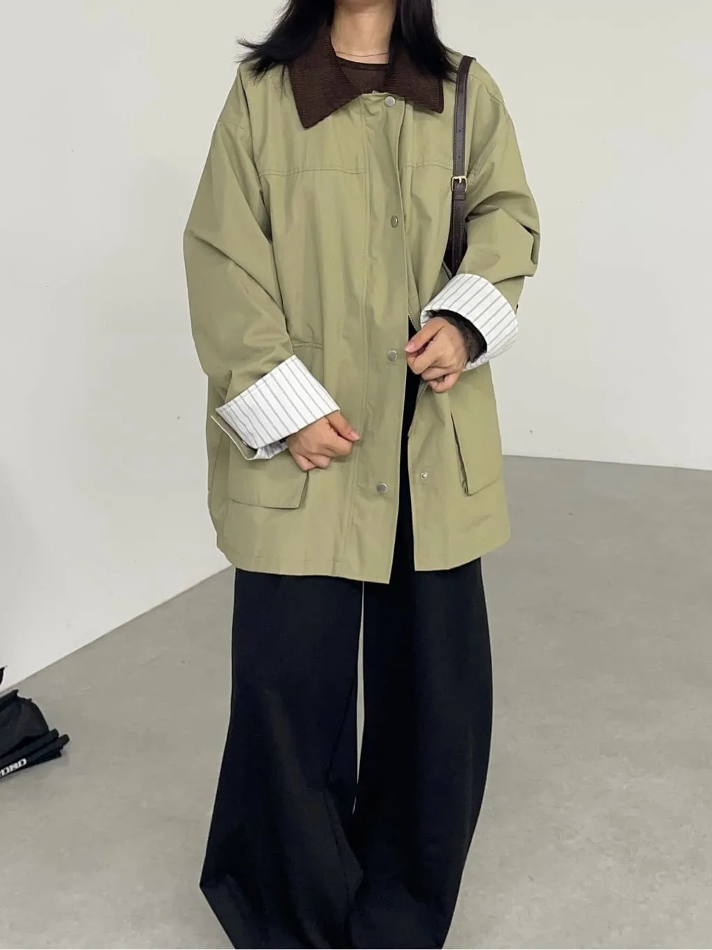領子拼接季節感燈心絨材質