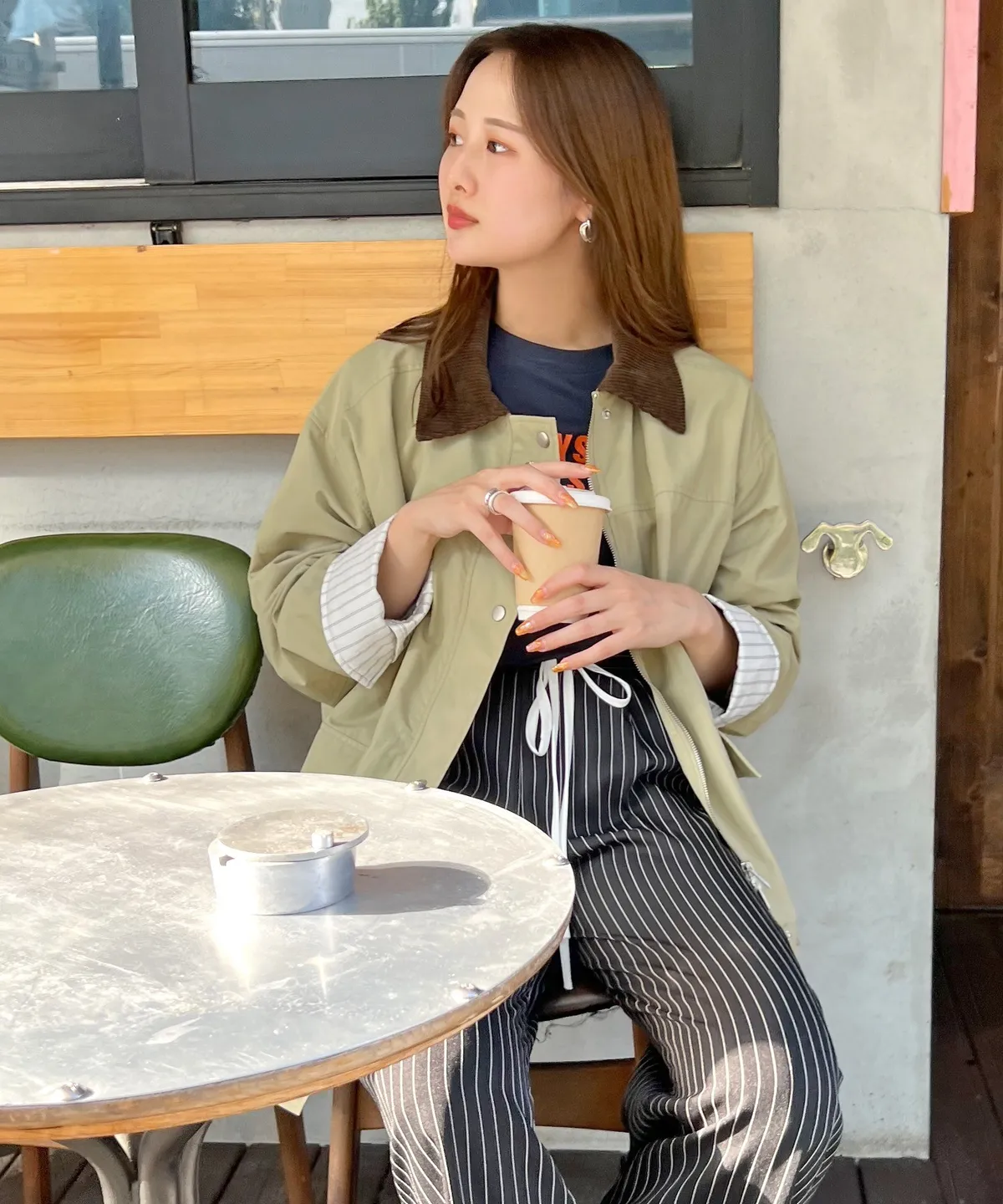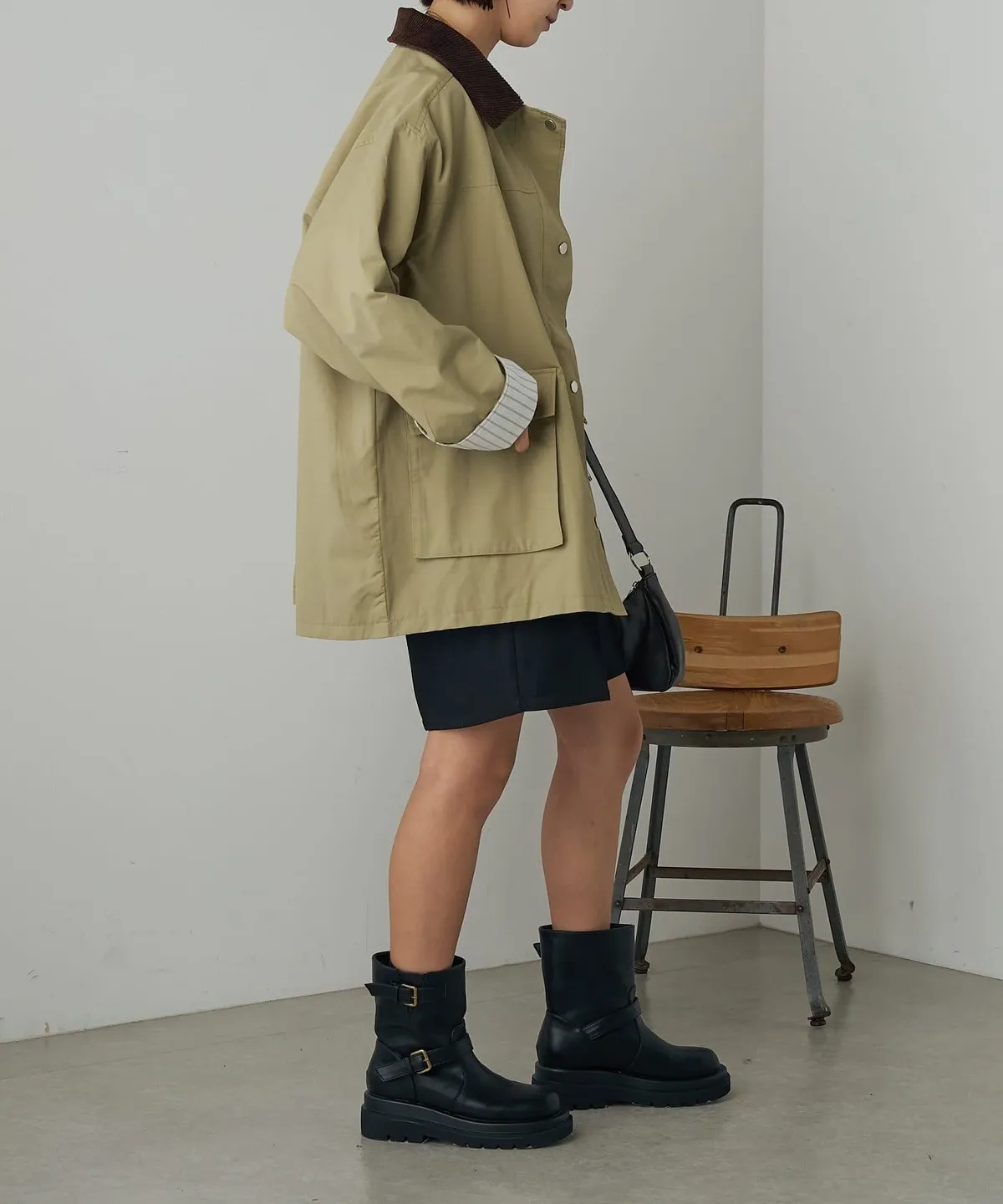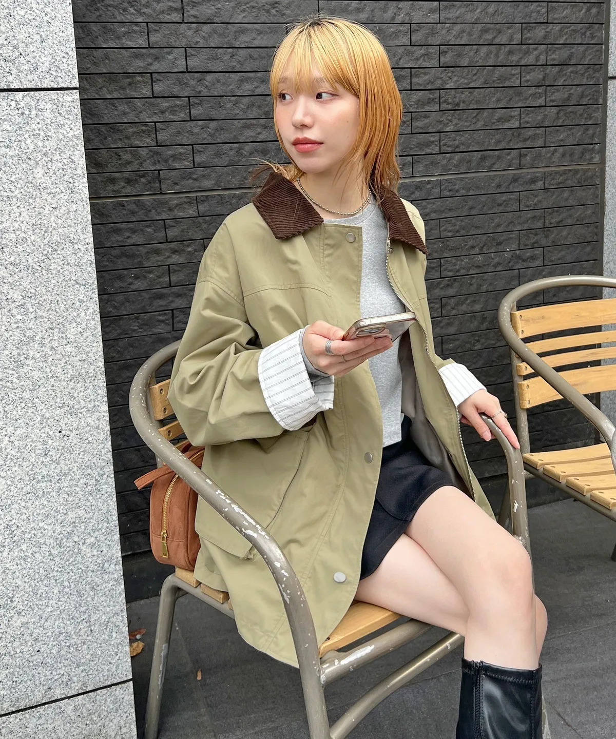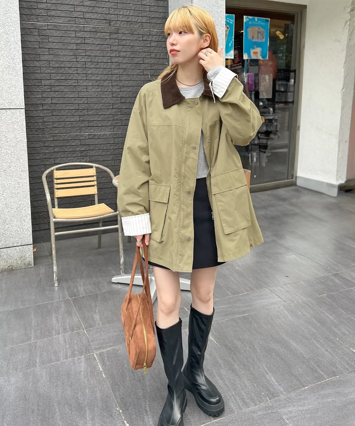 領子拼接季節感燈心絨材質