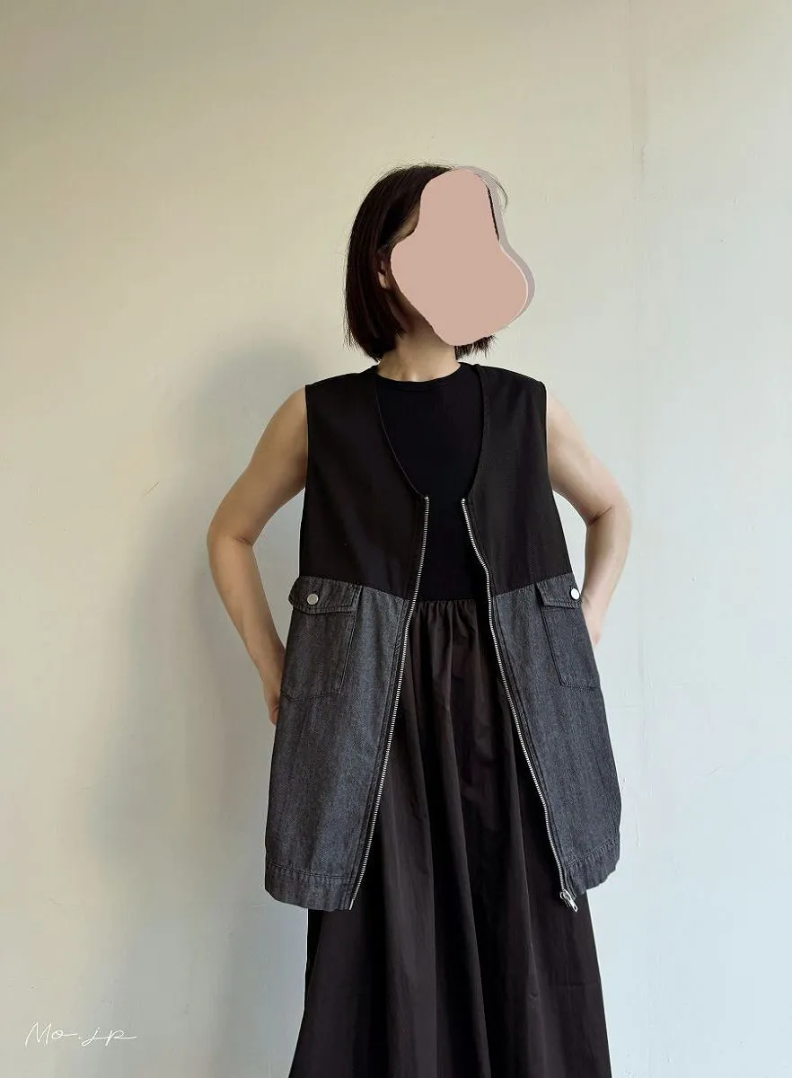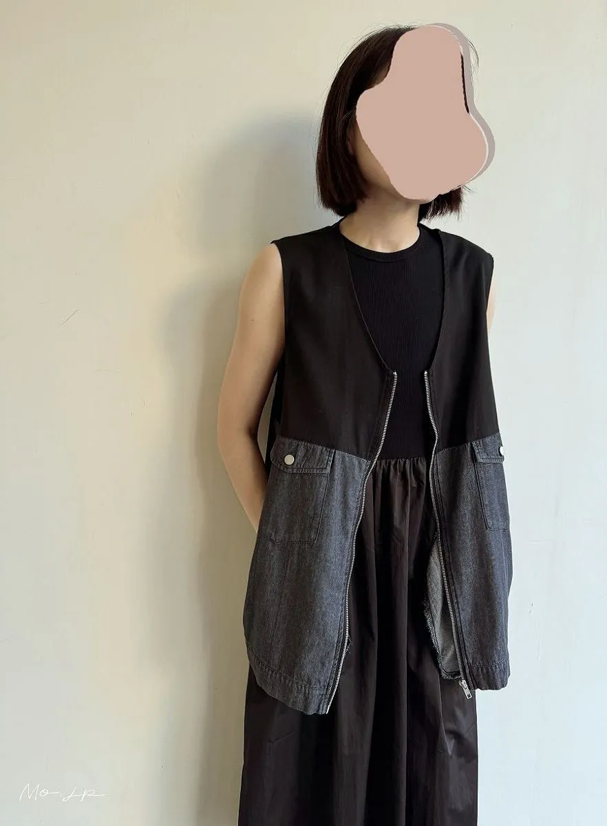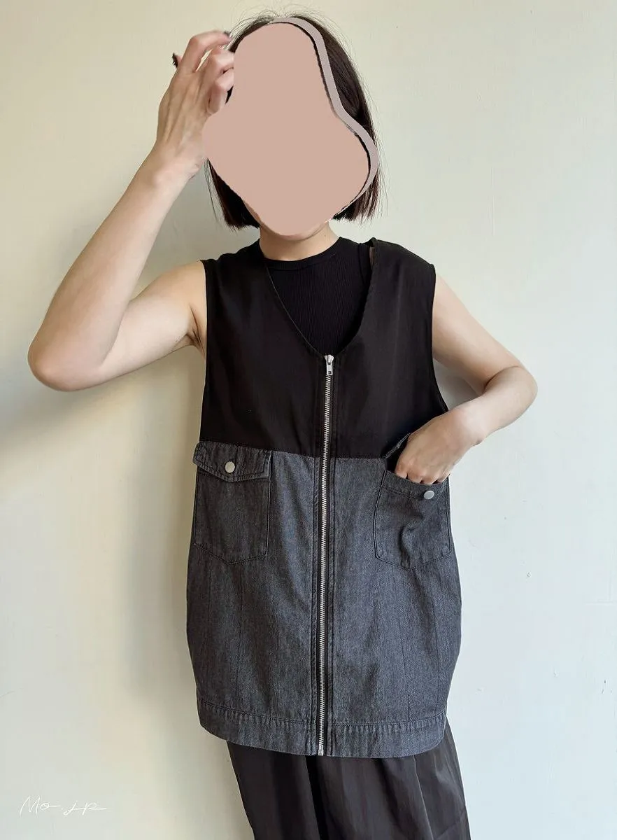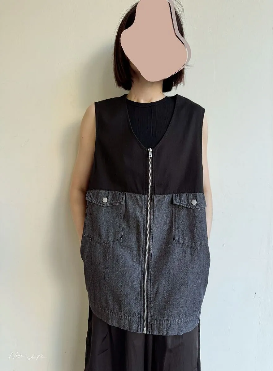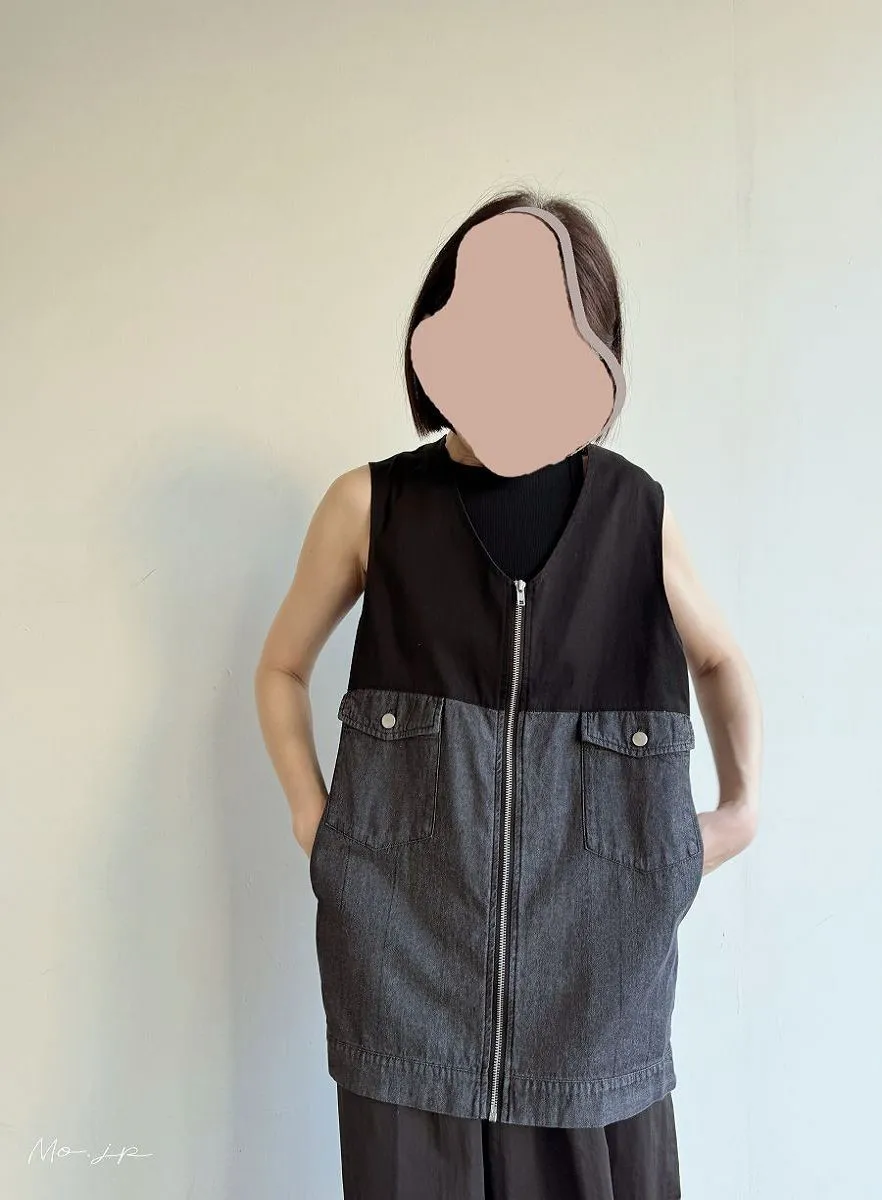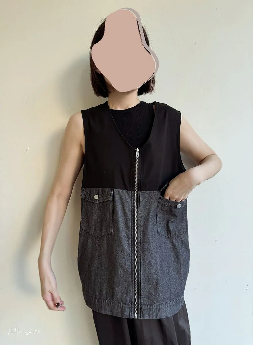 斷貨款~數量限定 異素材拼接單寧牛仔口袋外罩背心