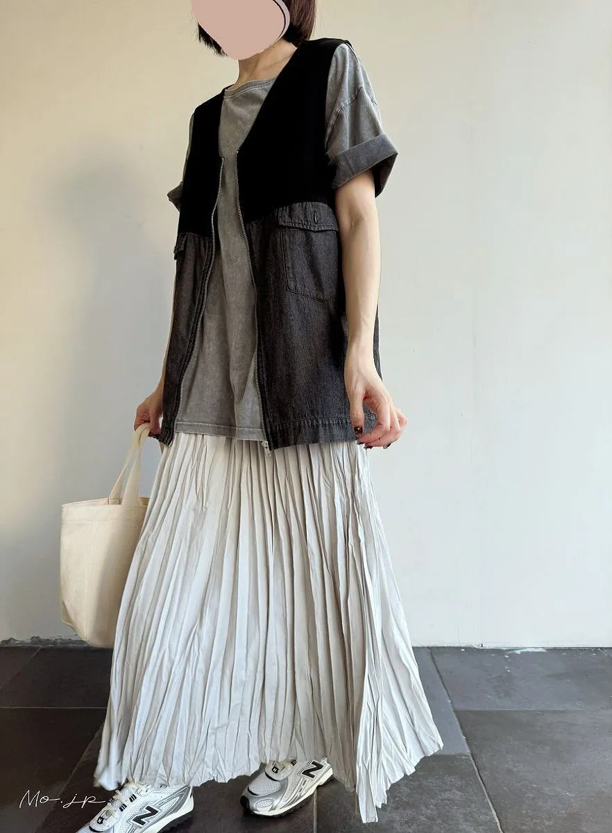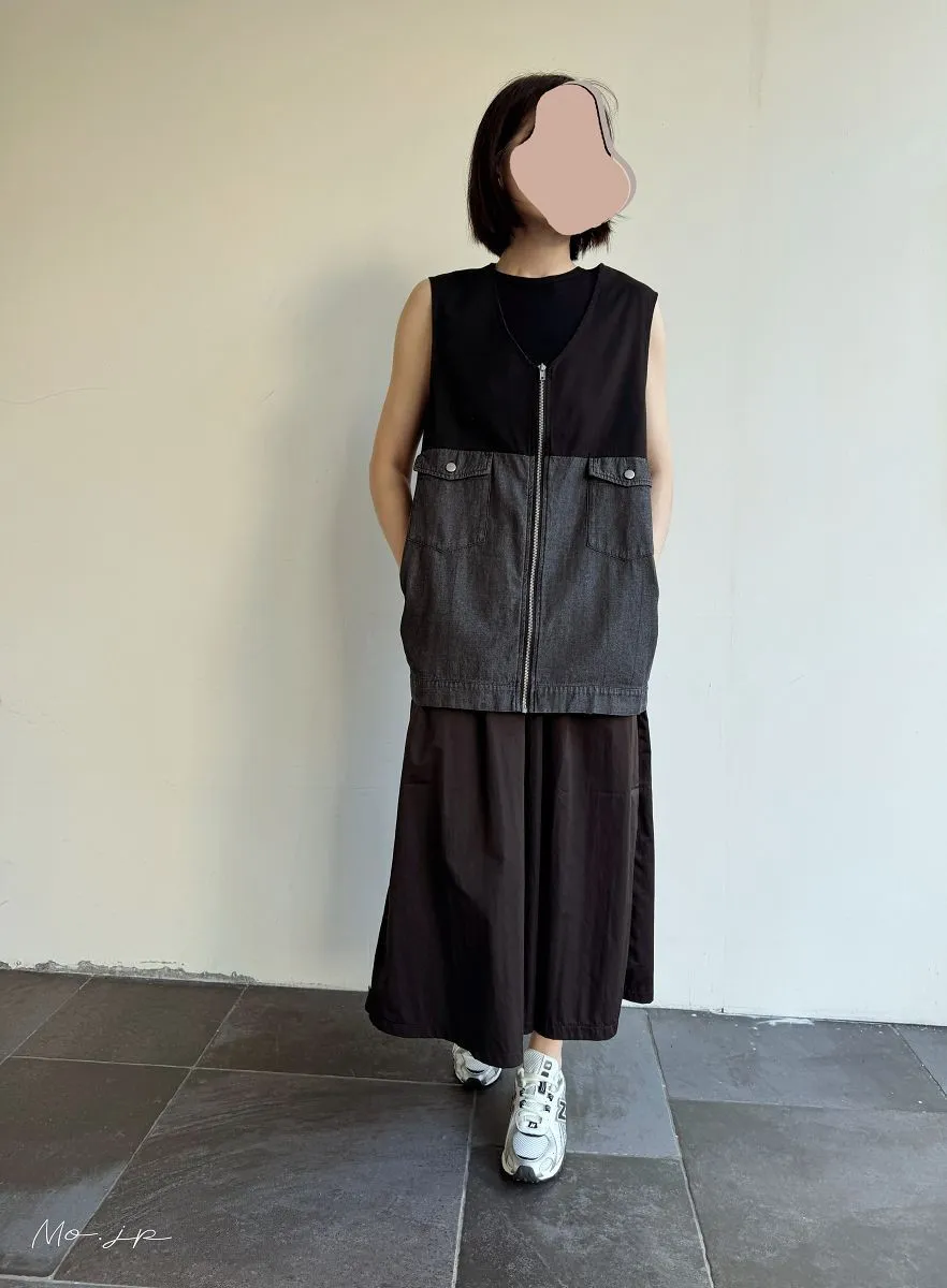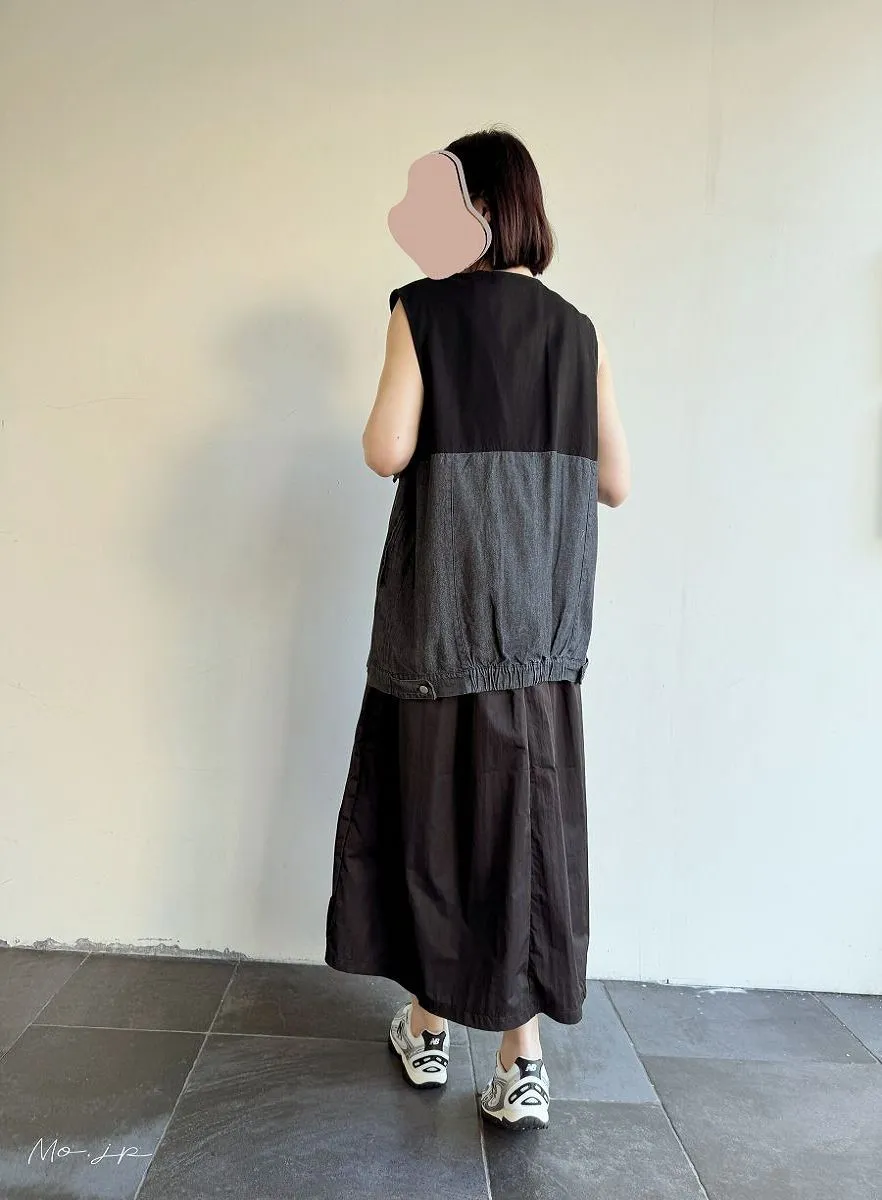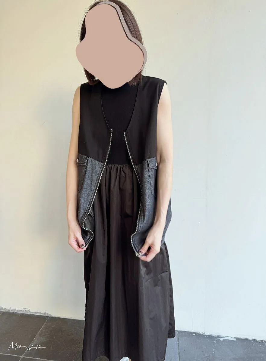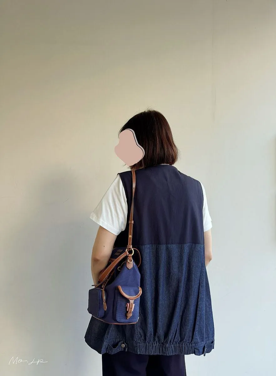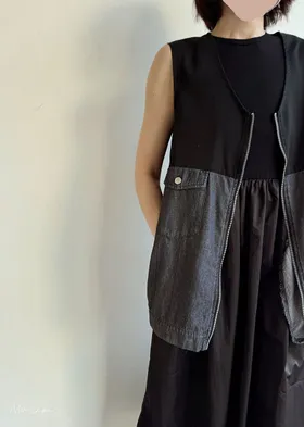 斷貨款~數量限定 異素材拼接單寧牛仔口袋外罩背心
