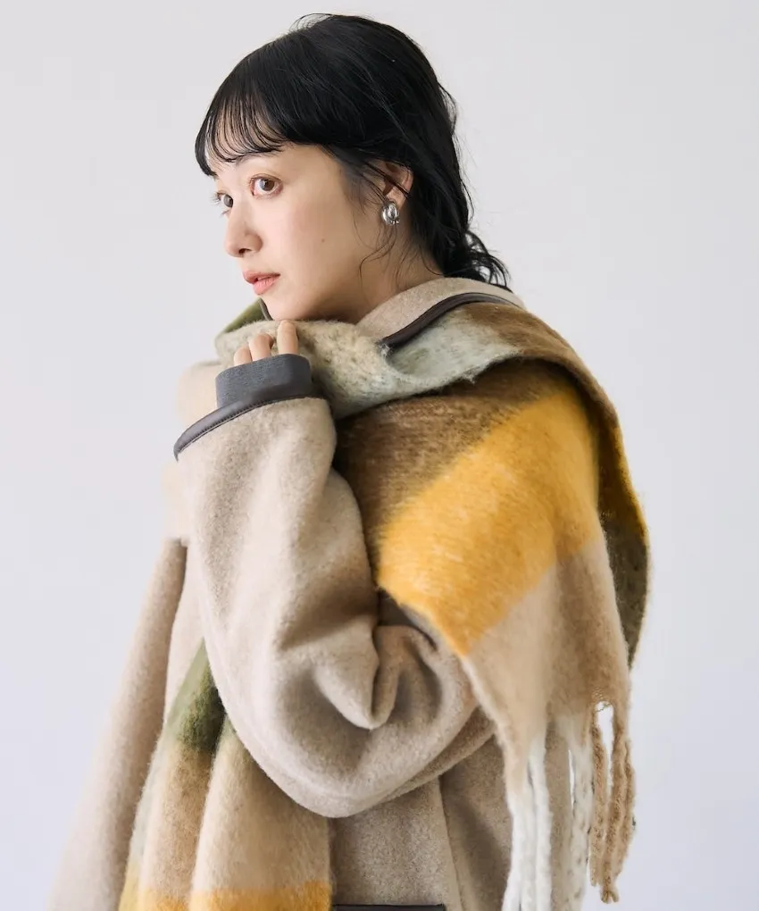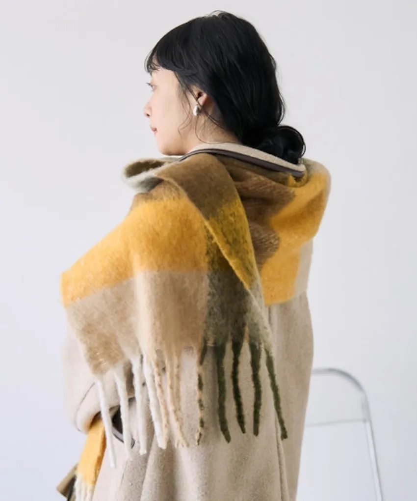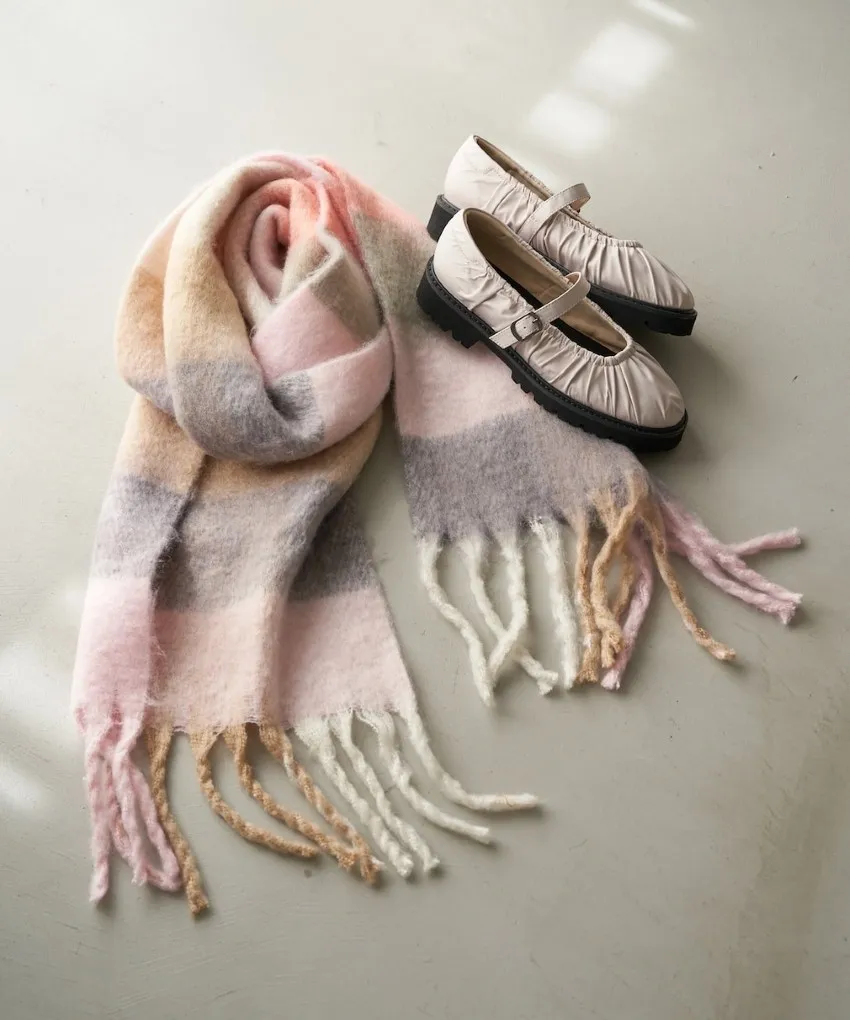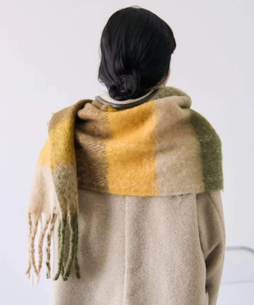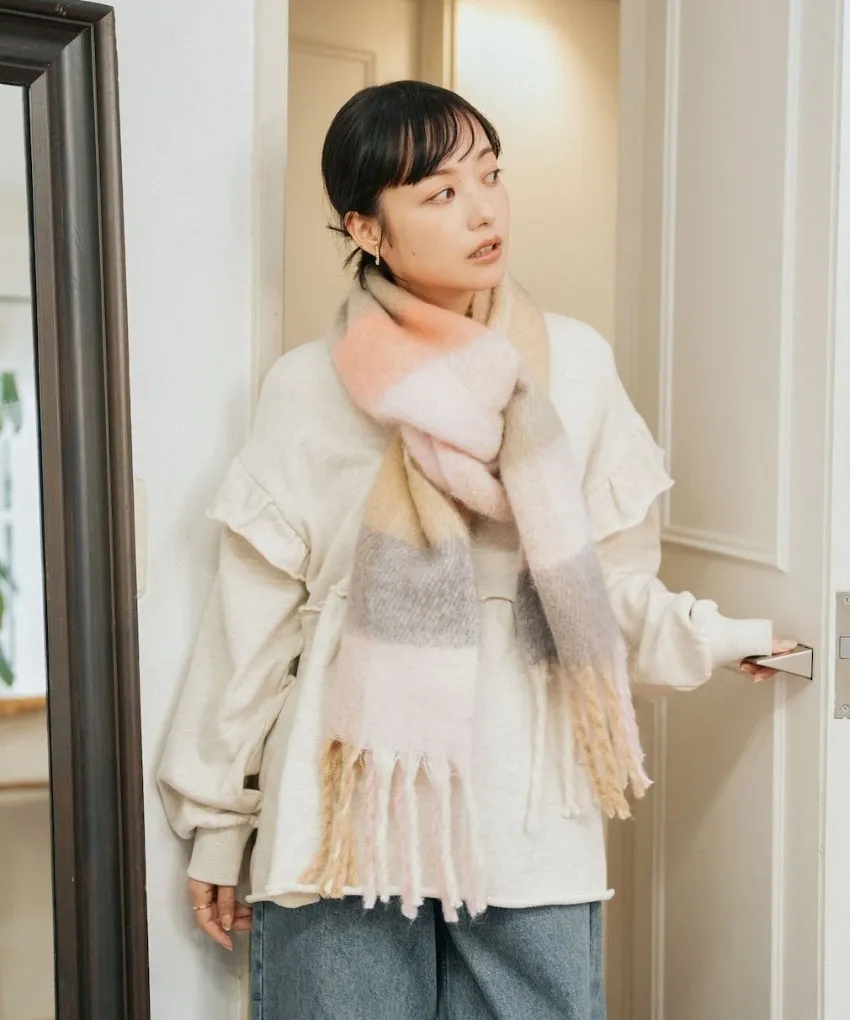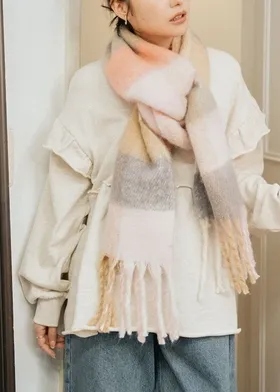 斷貨款 數量限定~品牌雪國配色大格紋毛海圍巾