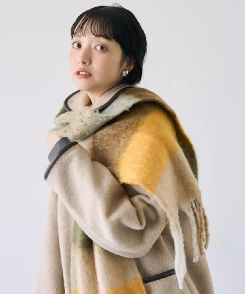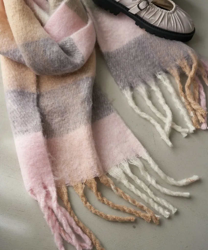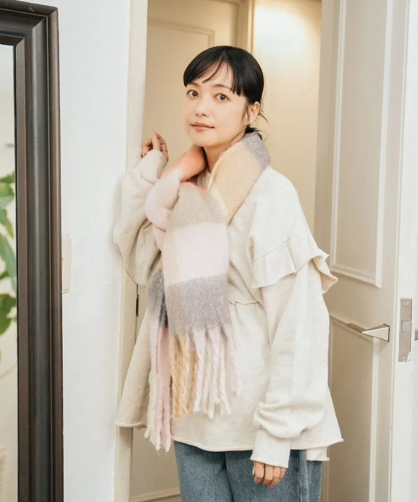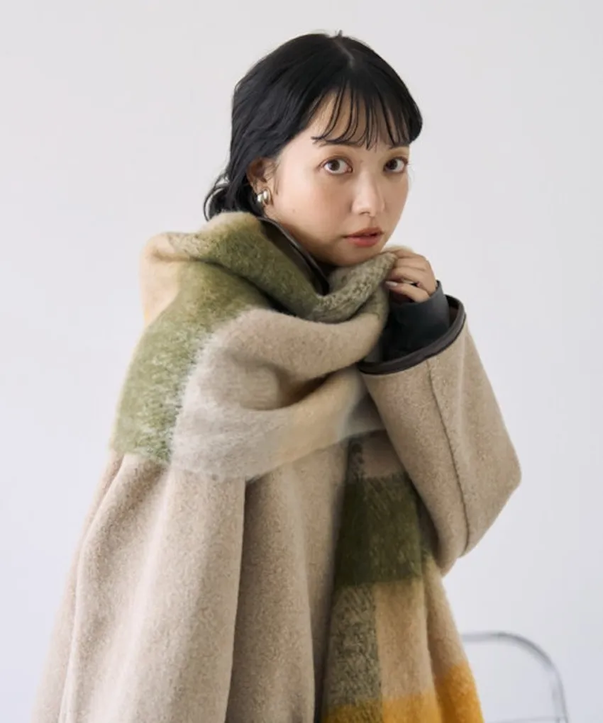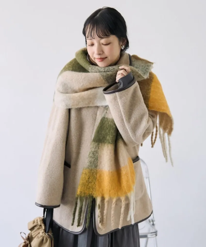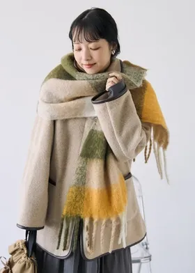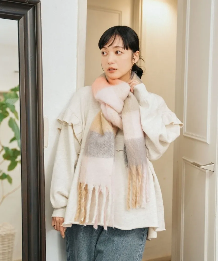 斷貨款 數量限定~品牌雪國配色大格紋毛海圍巾