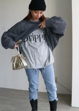 <斷貨現貨>超值!!!2件一組設計感針織毛衣+字母TEE