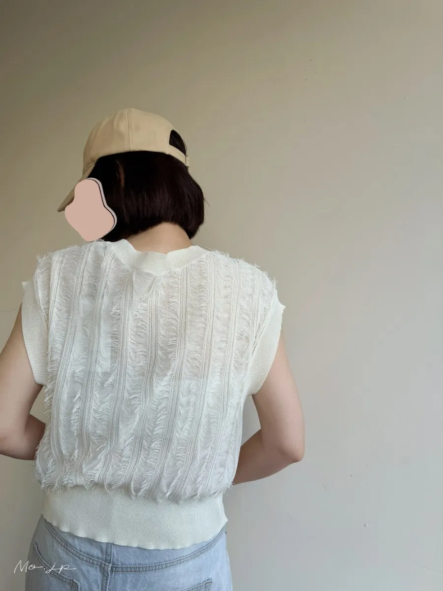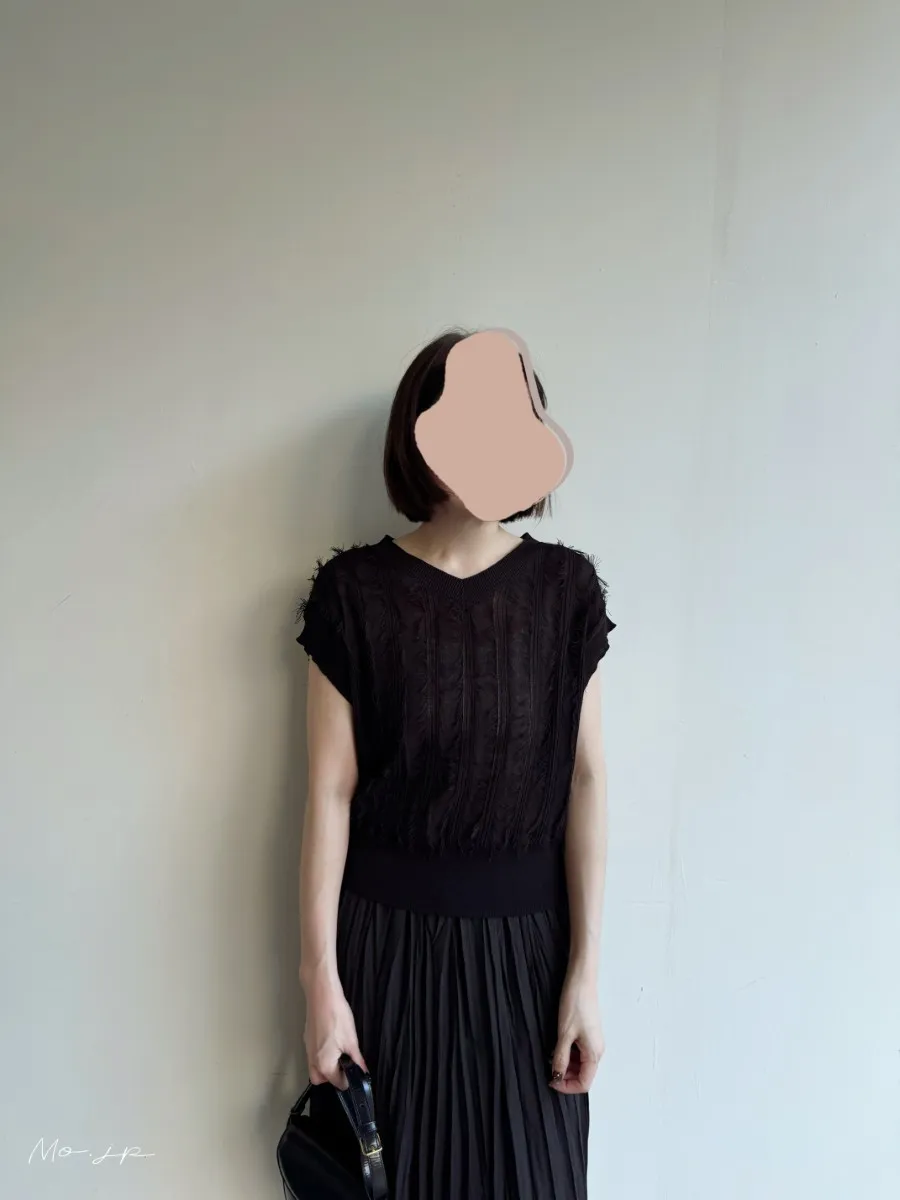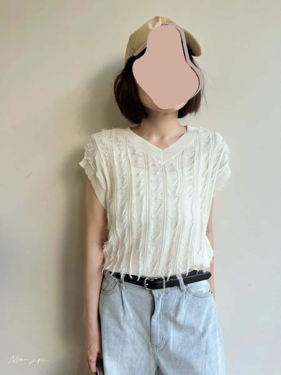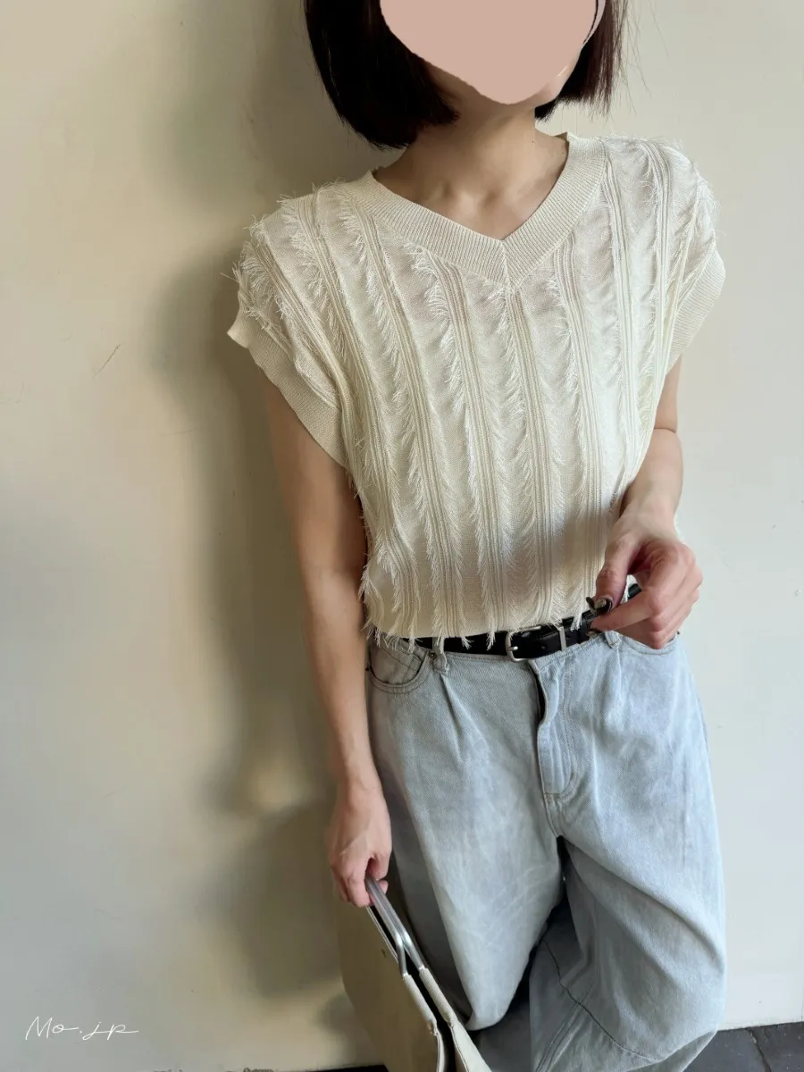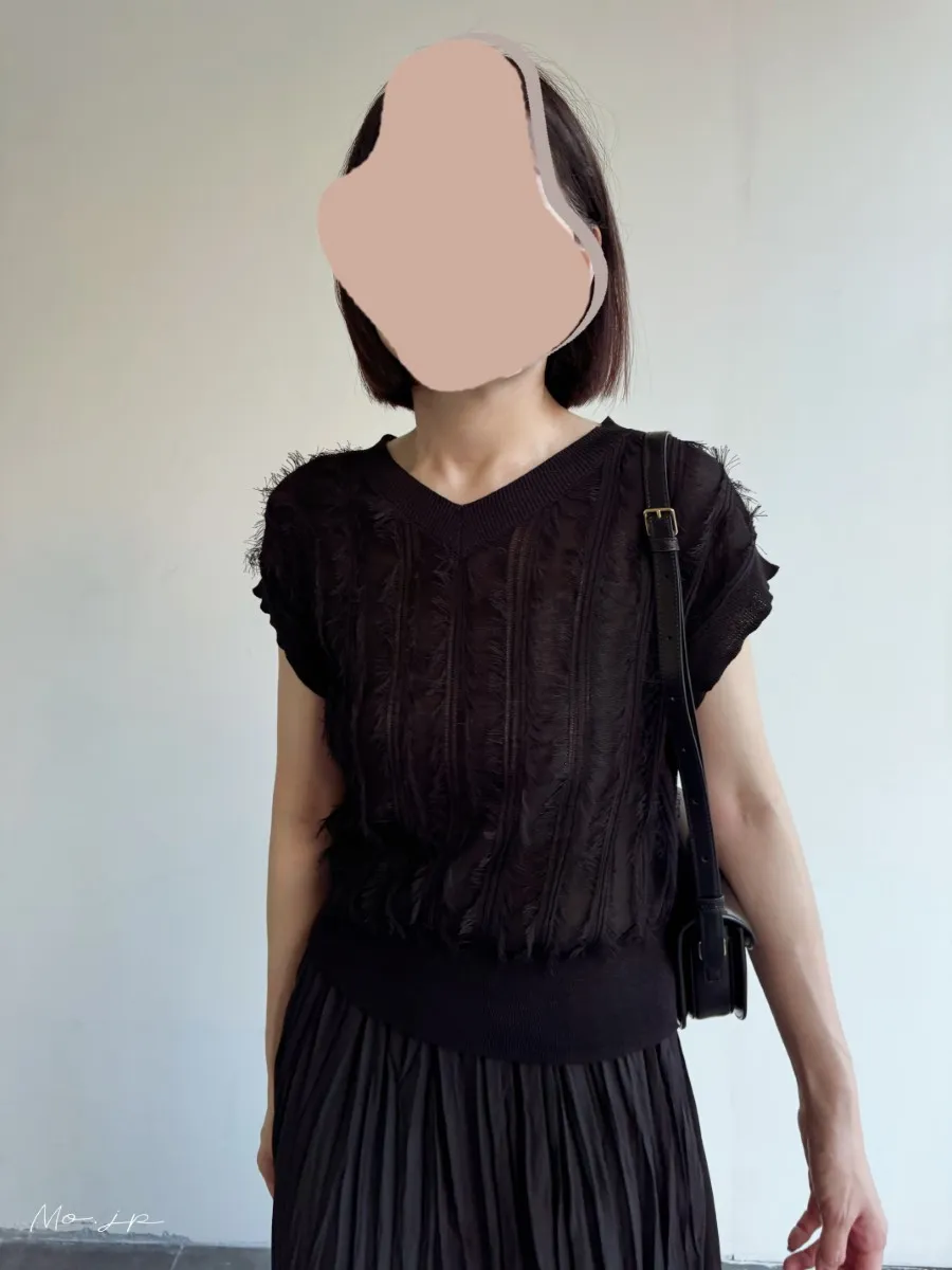 品牌折扣~質感層次羽毛V領微透造型針織上衣