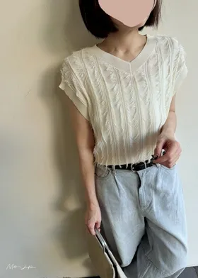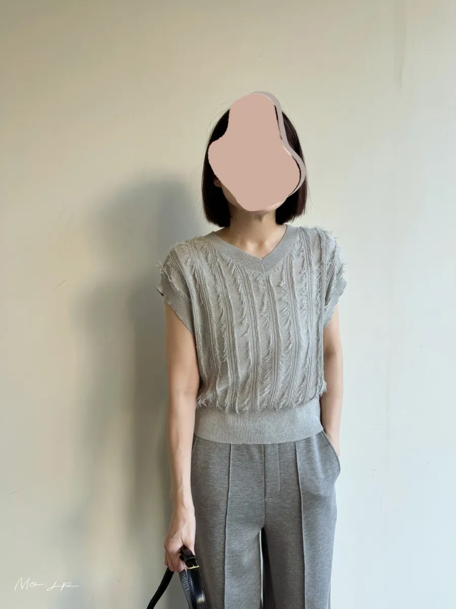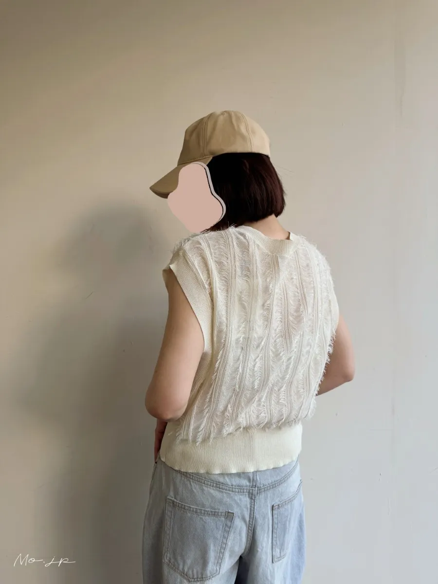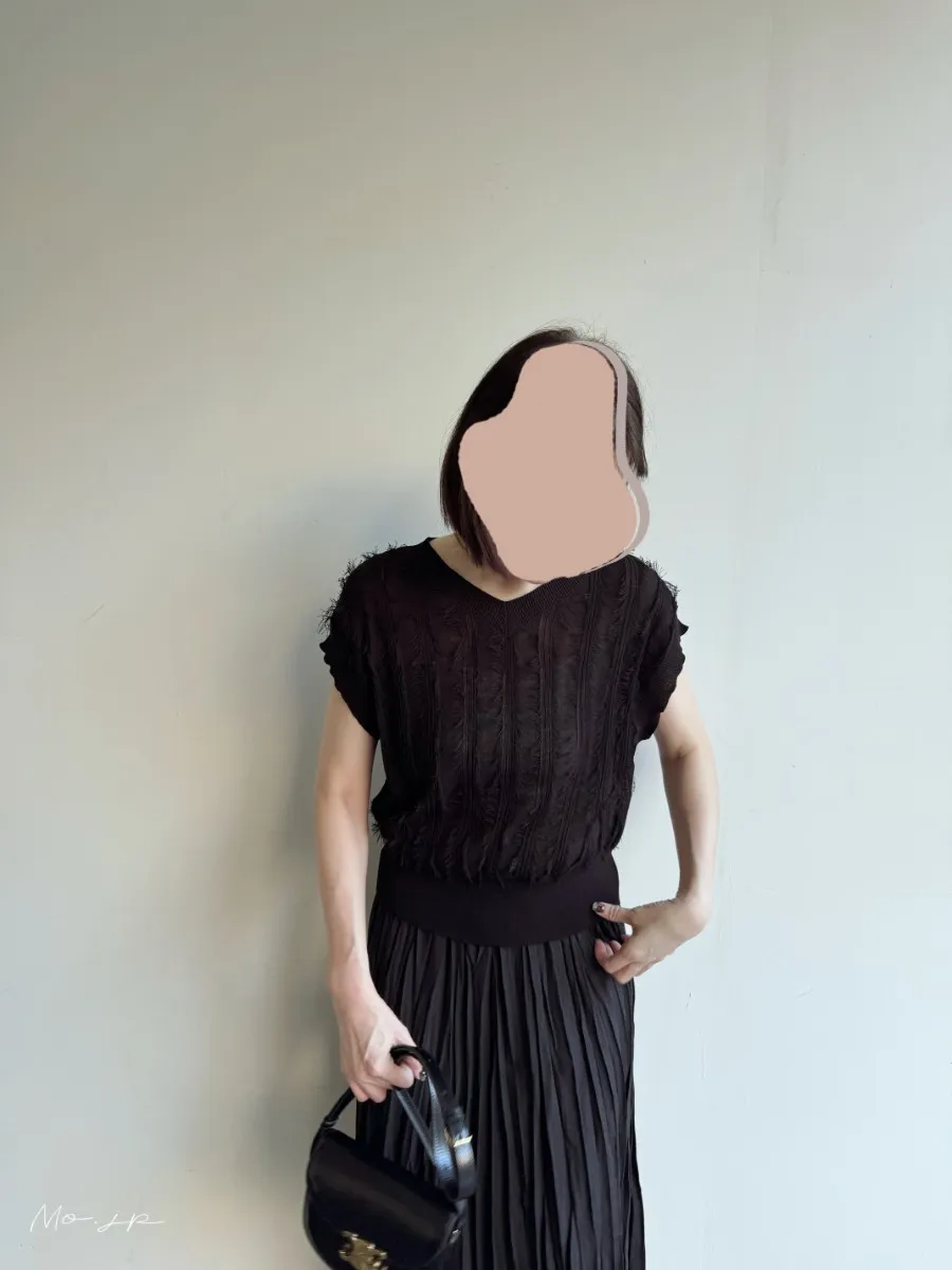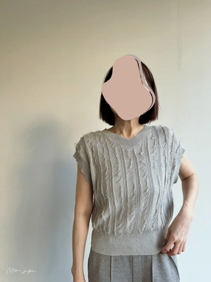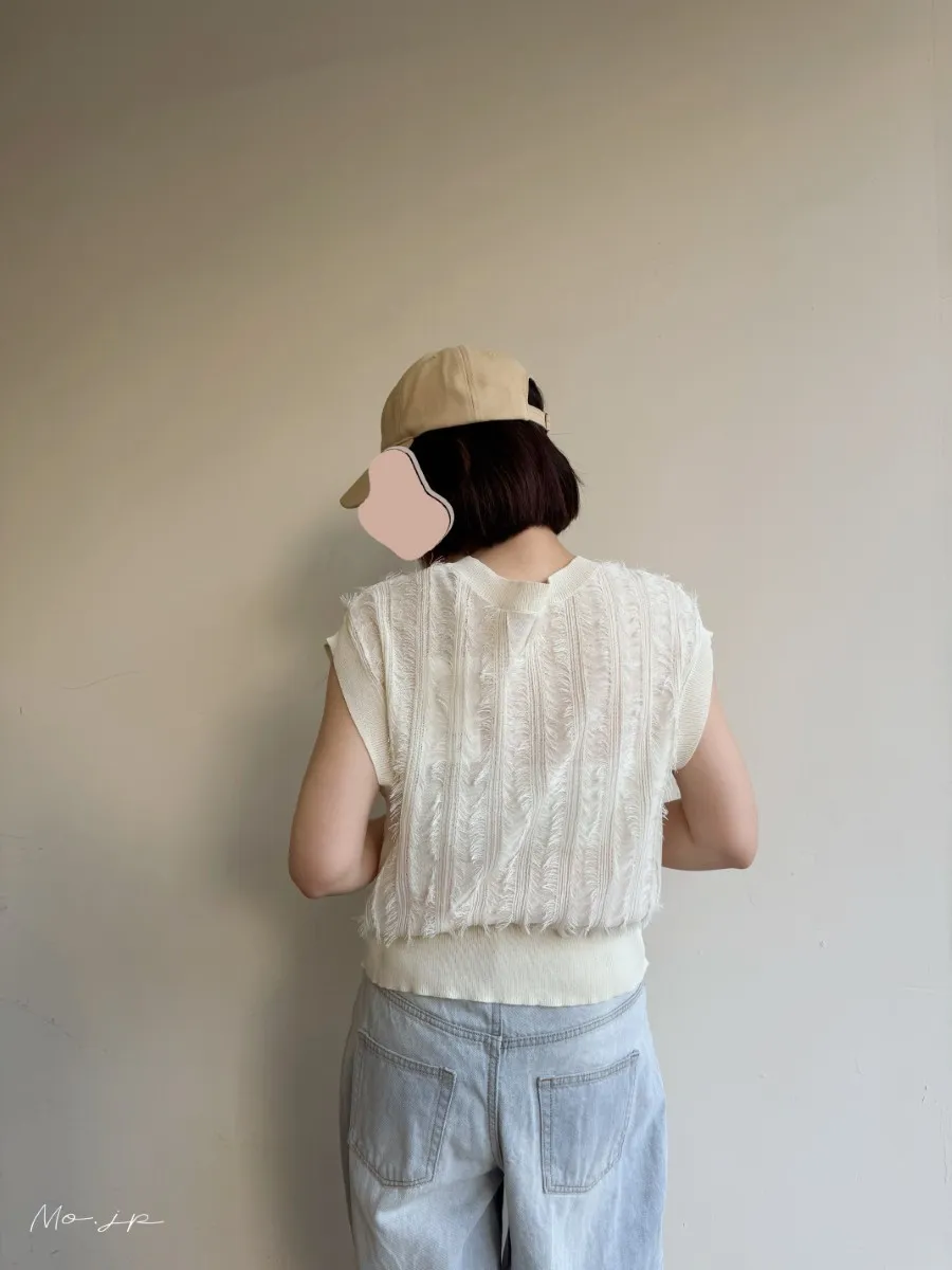 品牌折扣~質感層次羽毛V領微透造型針織上衣