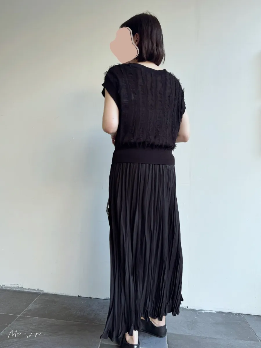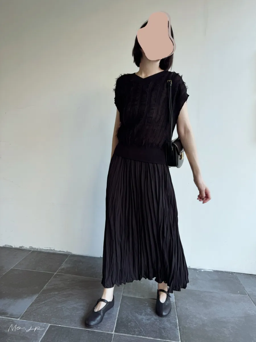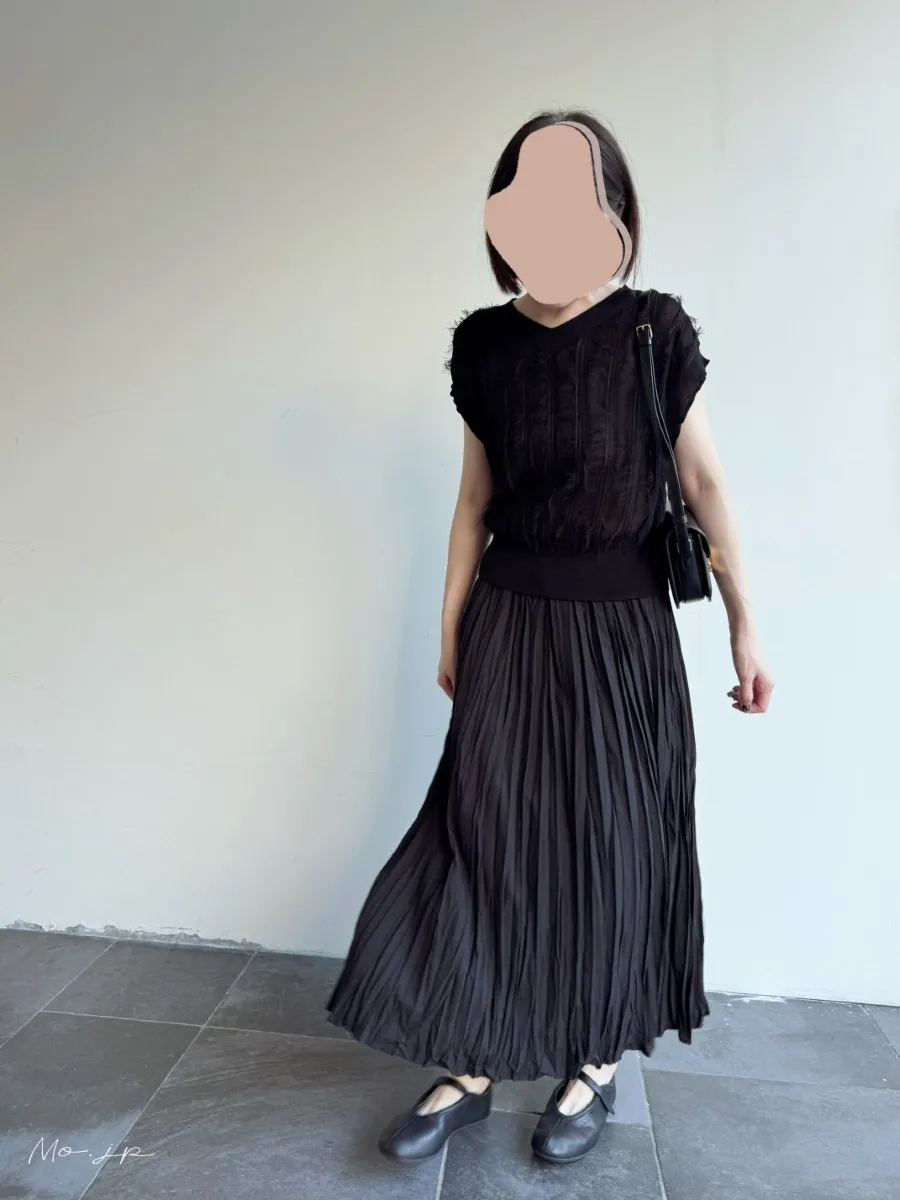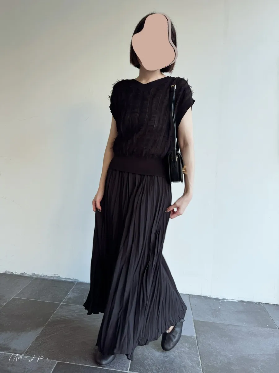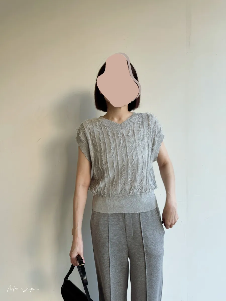 品牌折扣~質感層次羽毛V領微透造型針織上衣
