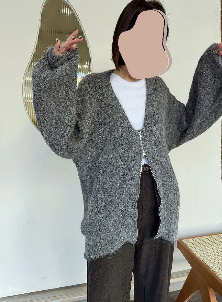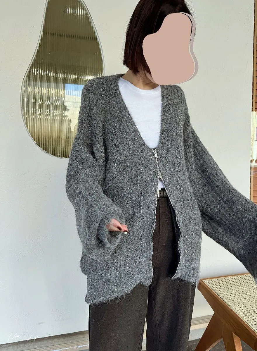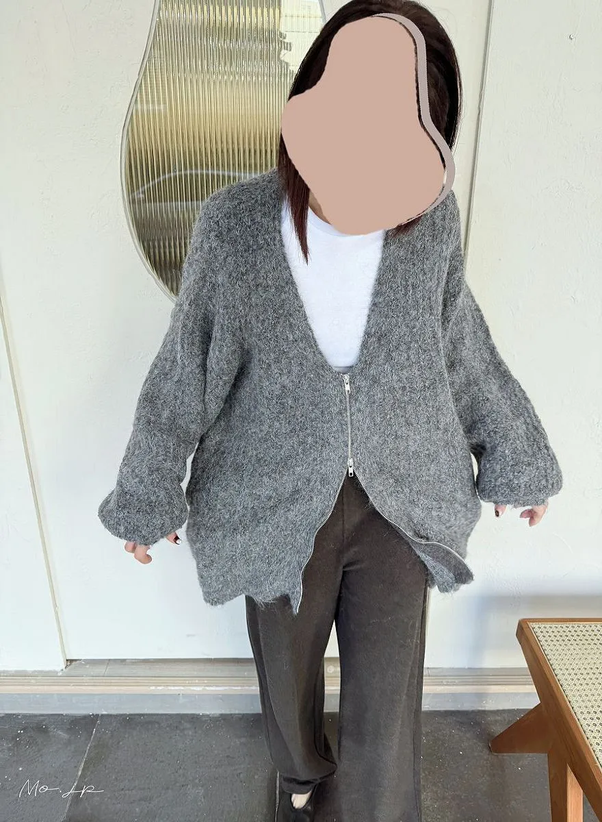 V領寬鬆拉鍊開襟外套