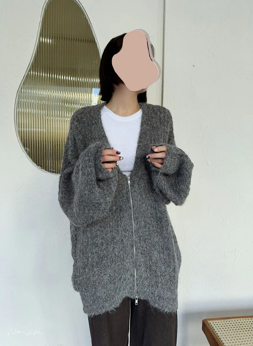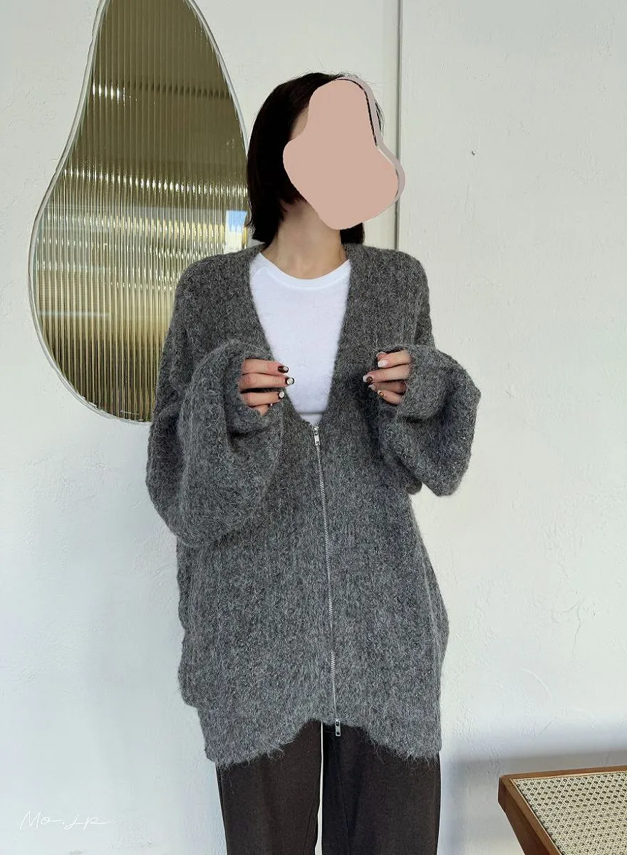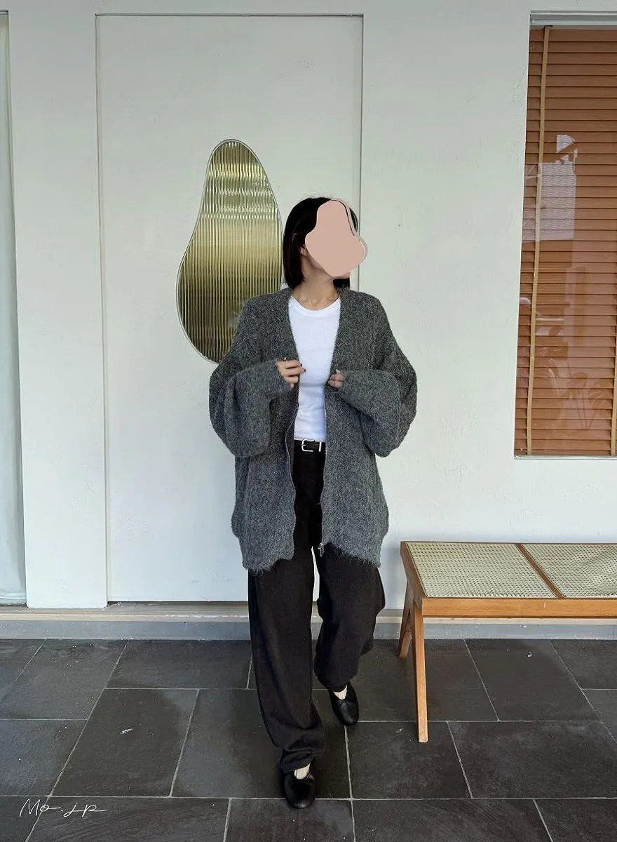 V領寬鬆拉鍊開襟外套