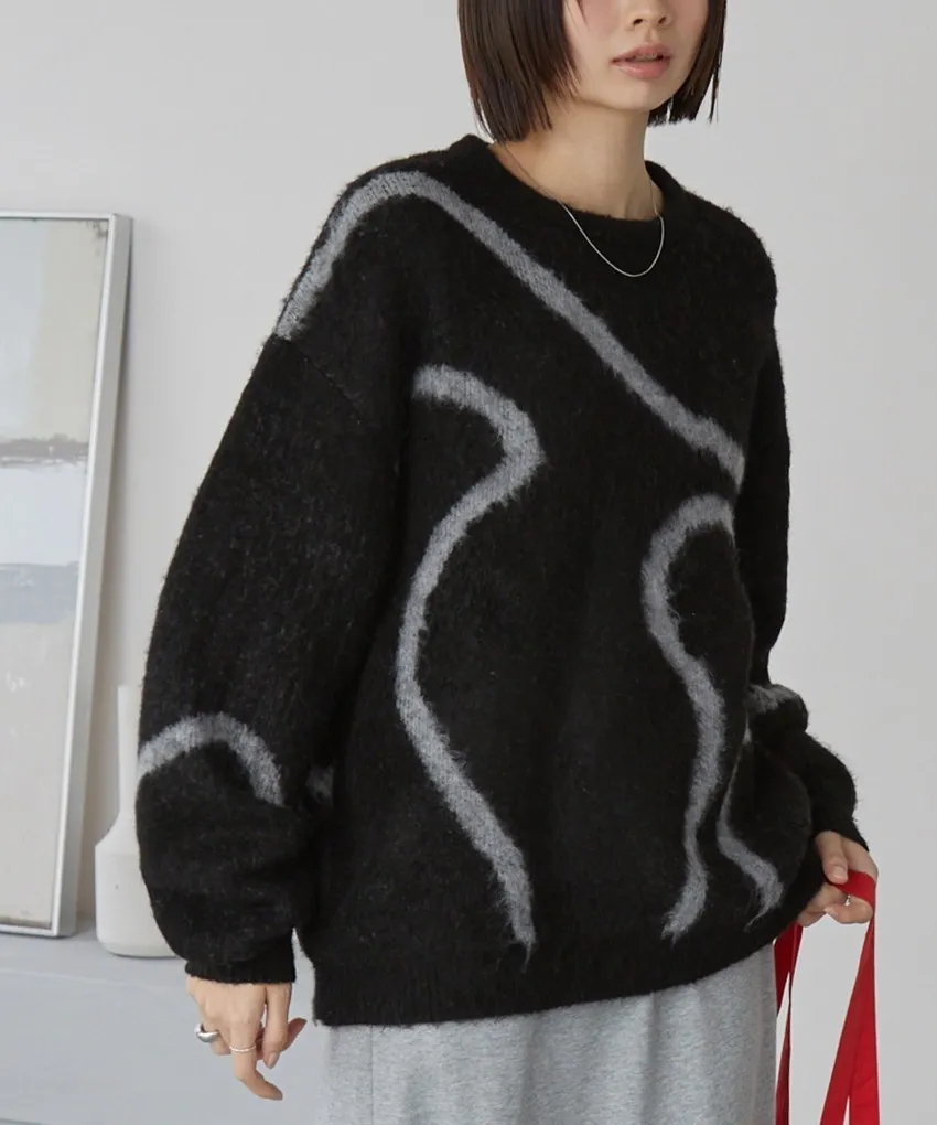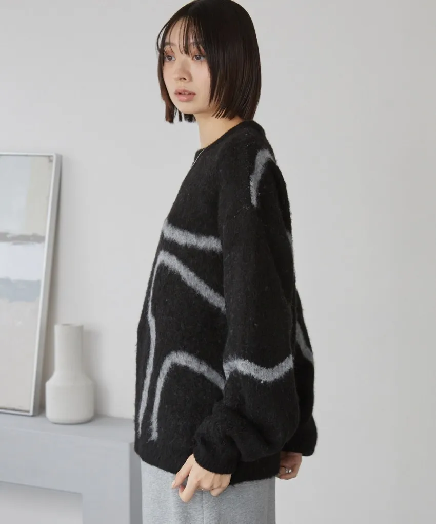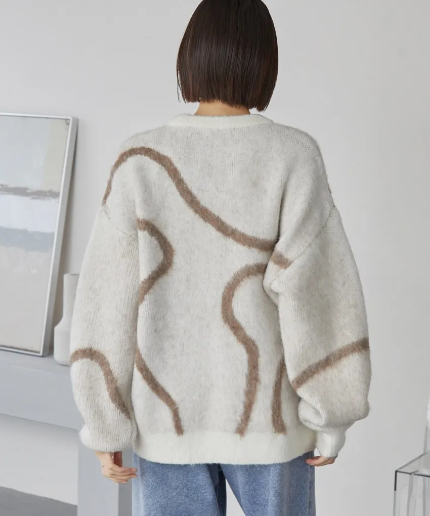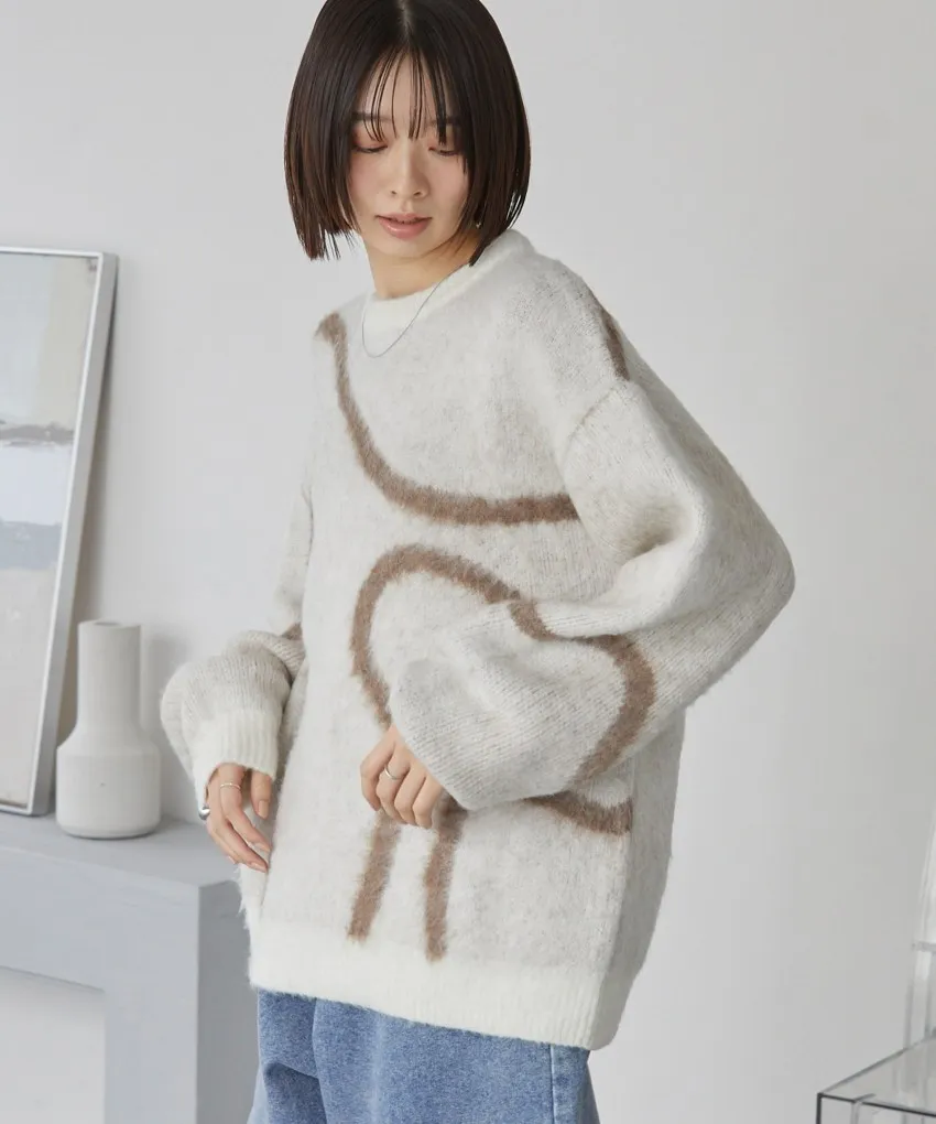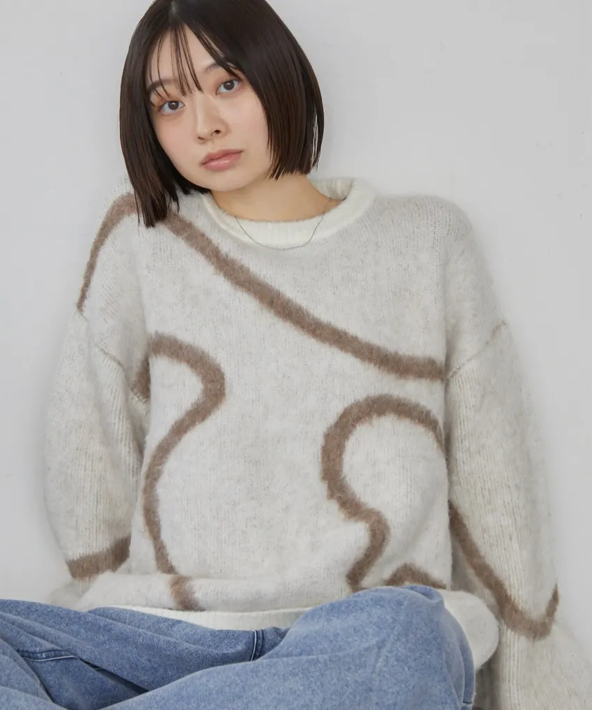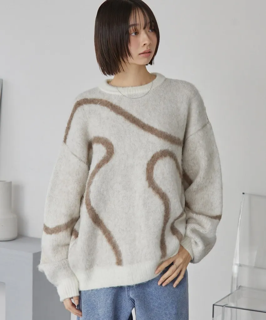 1212~限定特價~品牌緞帶波浪感造型柔軟毛海寬鬆毛衣
