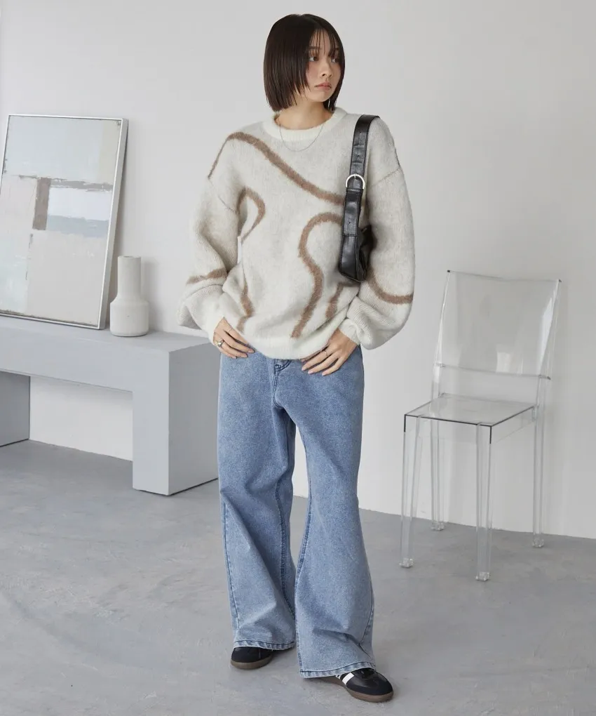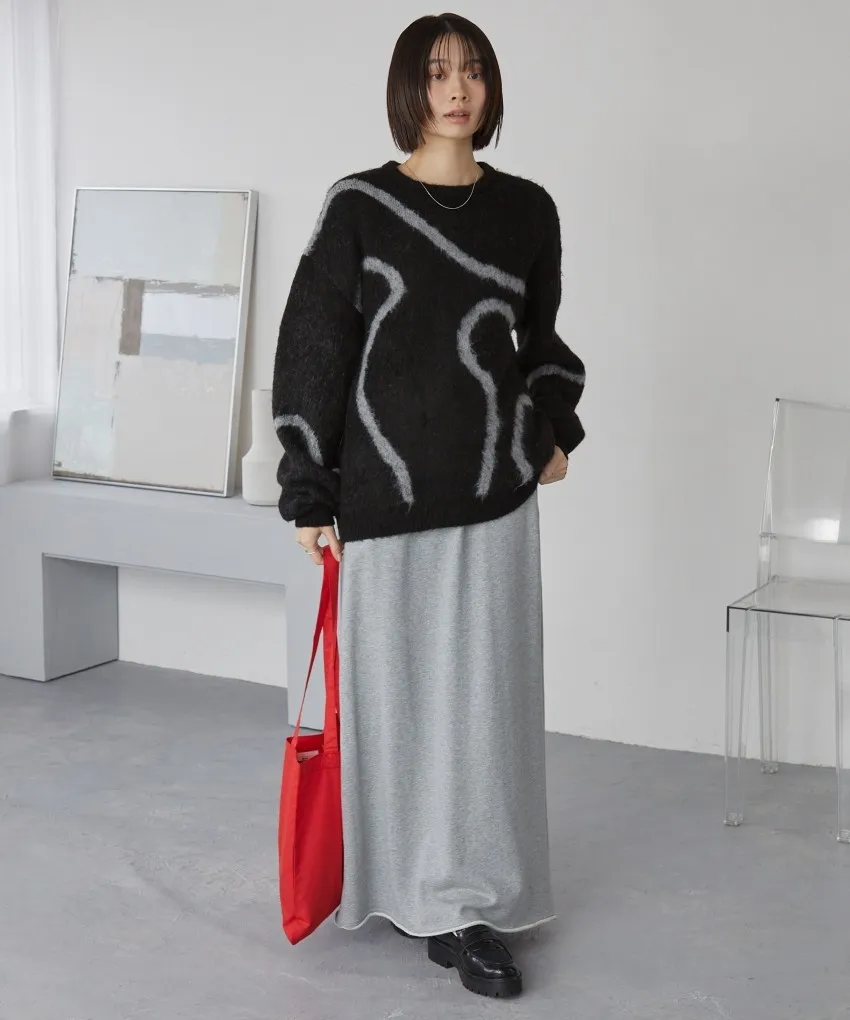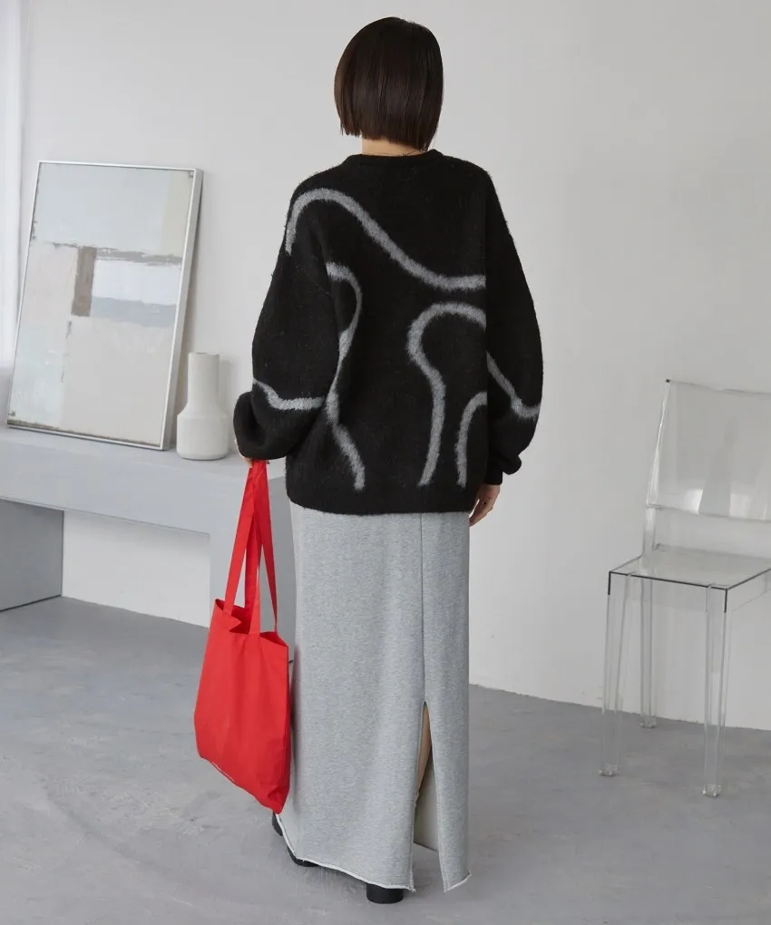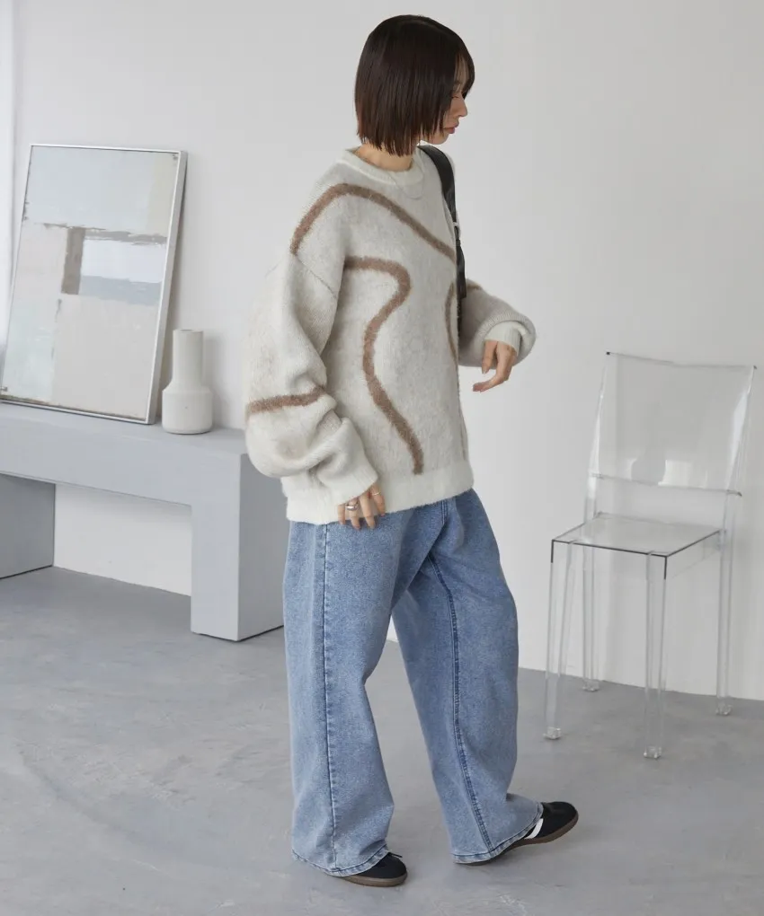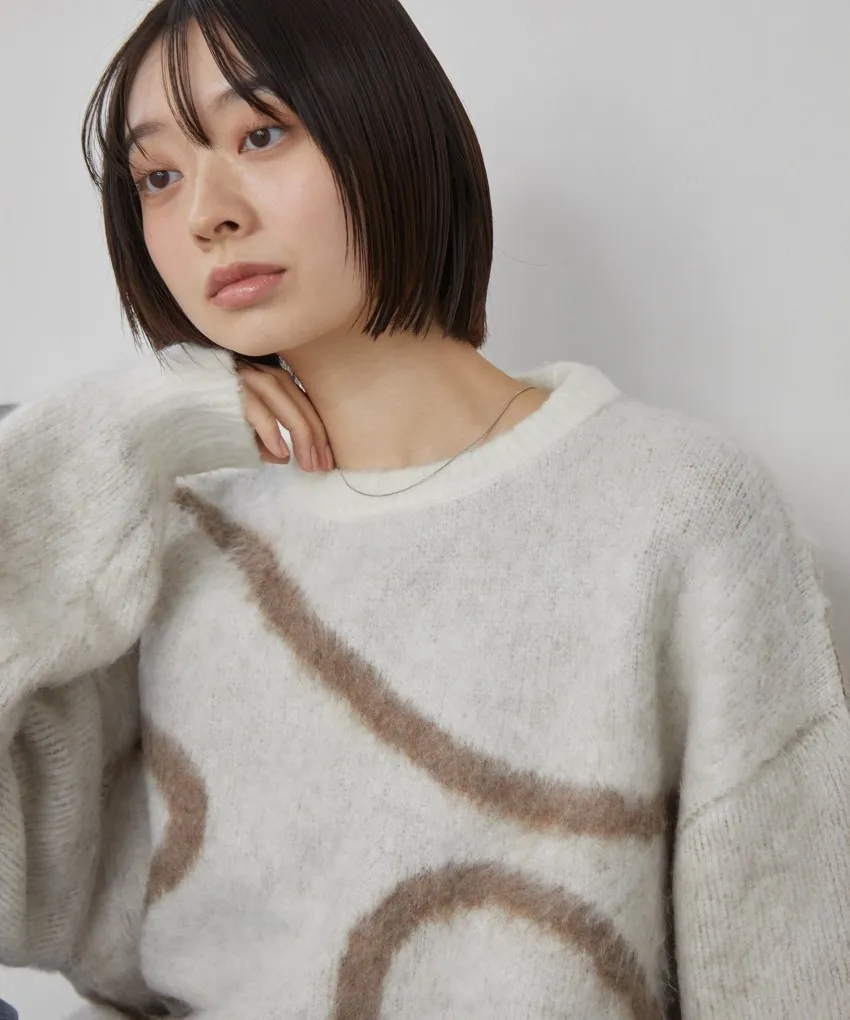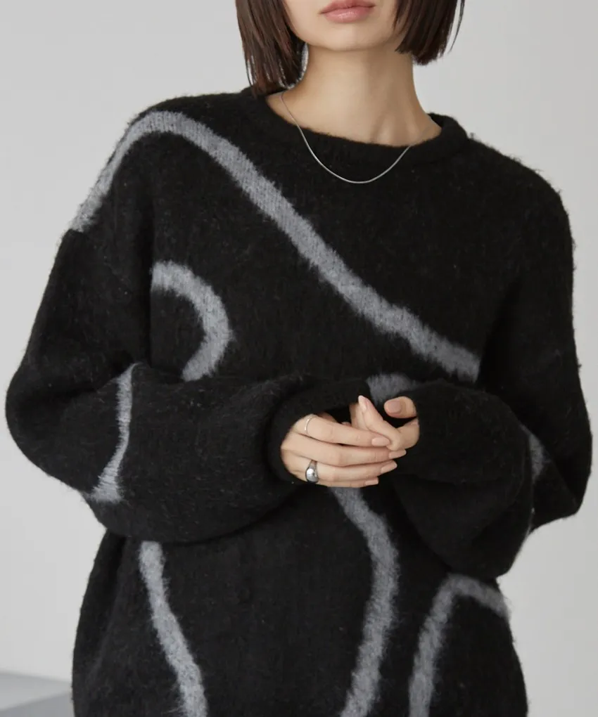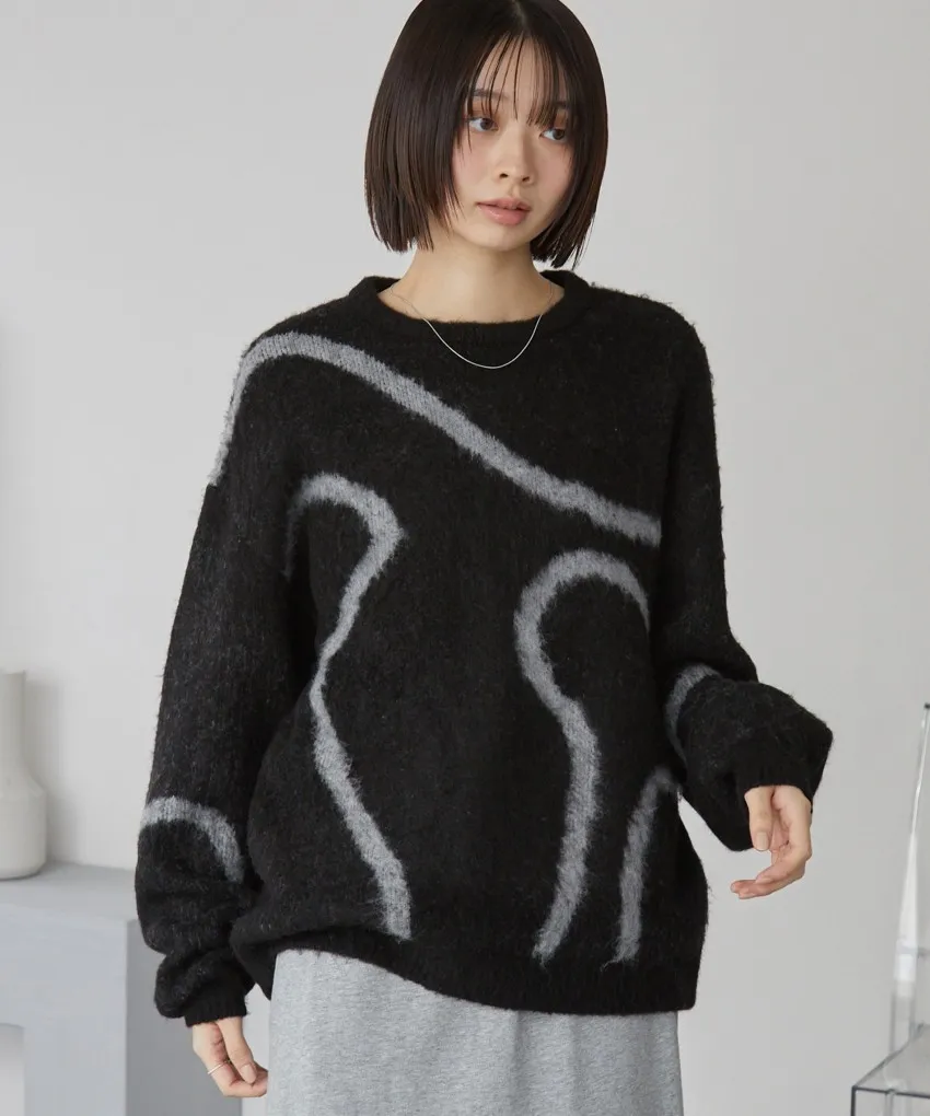 1212~限定特價~品牌緞帶波浪感造型柔軟毛海寬鬆毛衣