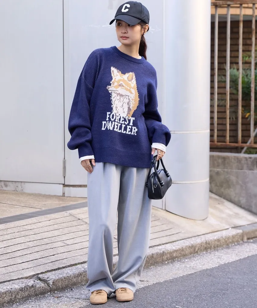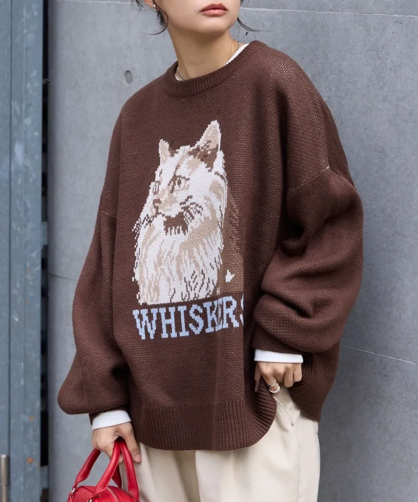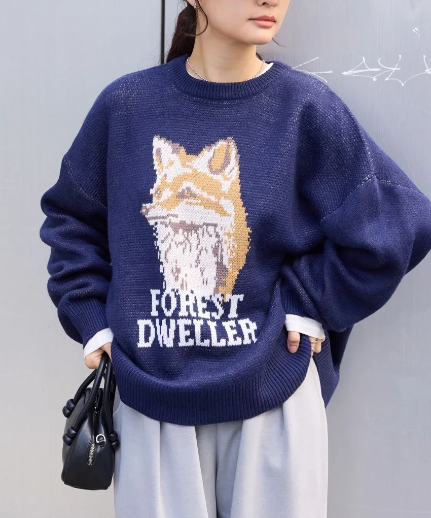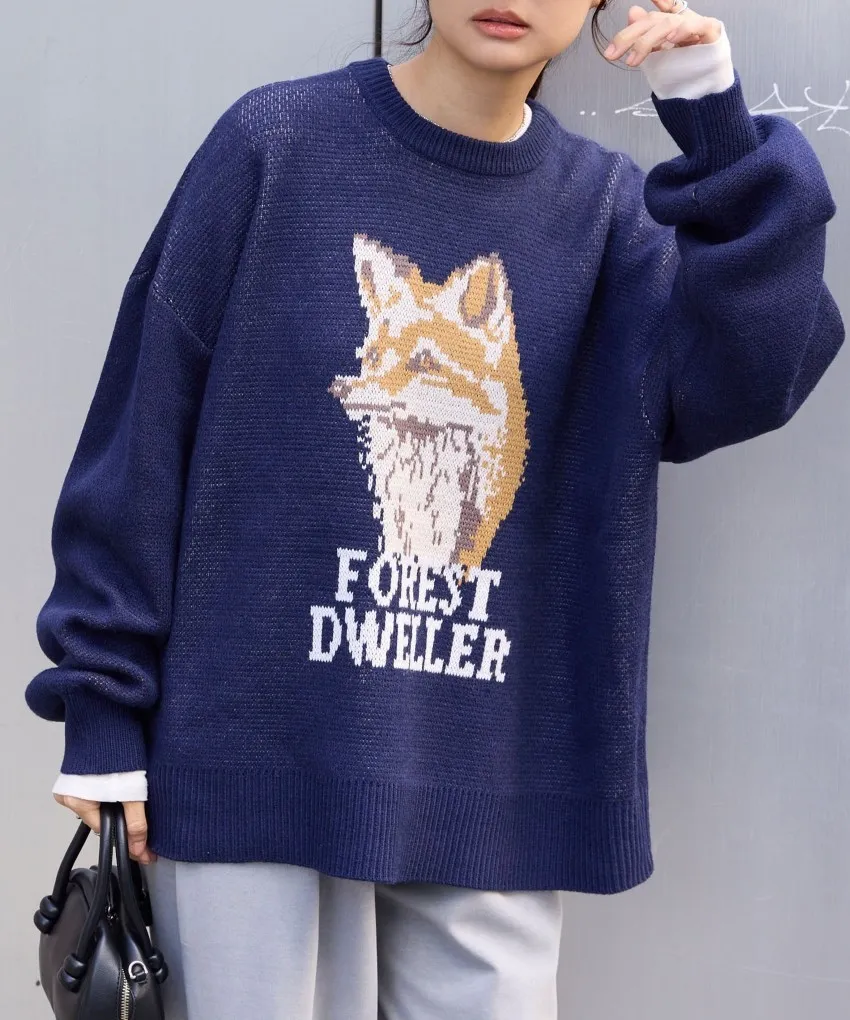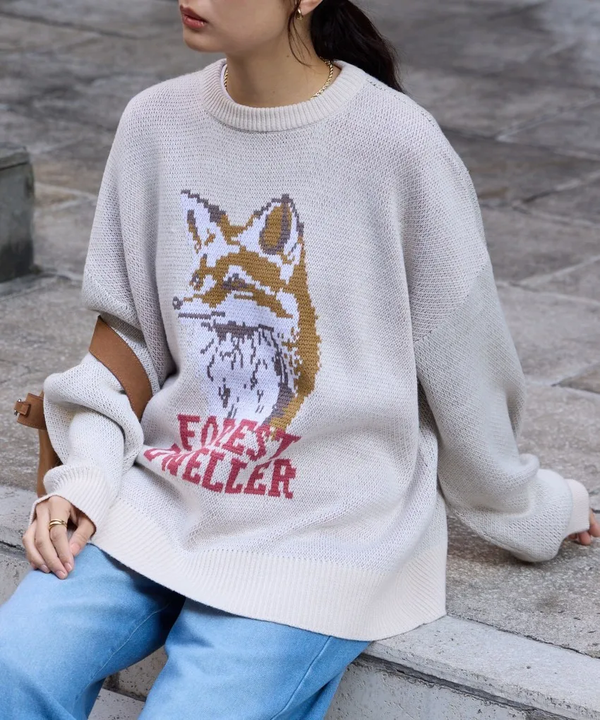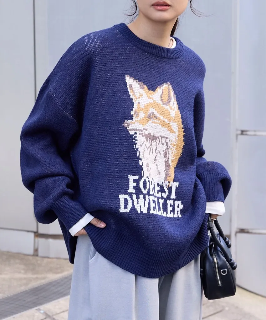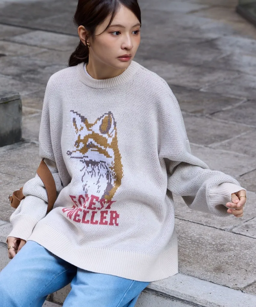 1212~限定特價~品牌三款圖案貓咪/狐狸/花朵造型密實毛衣